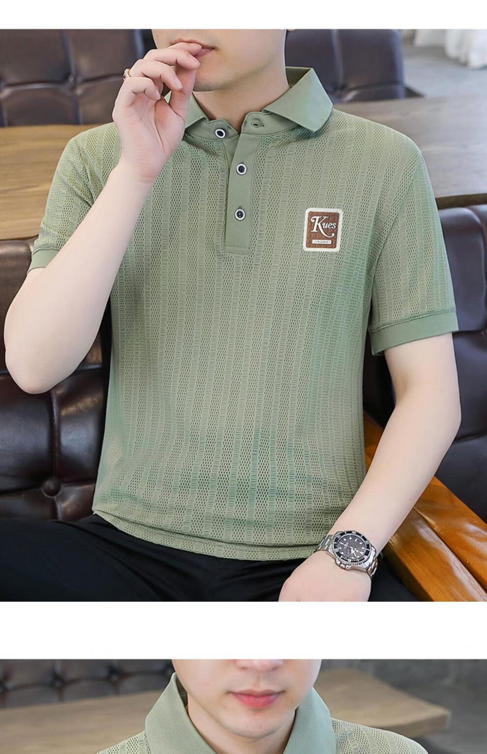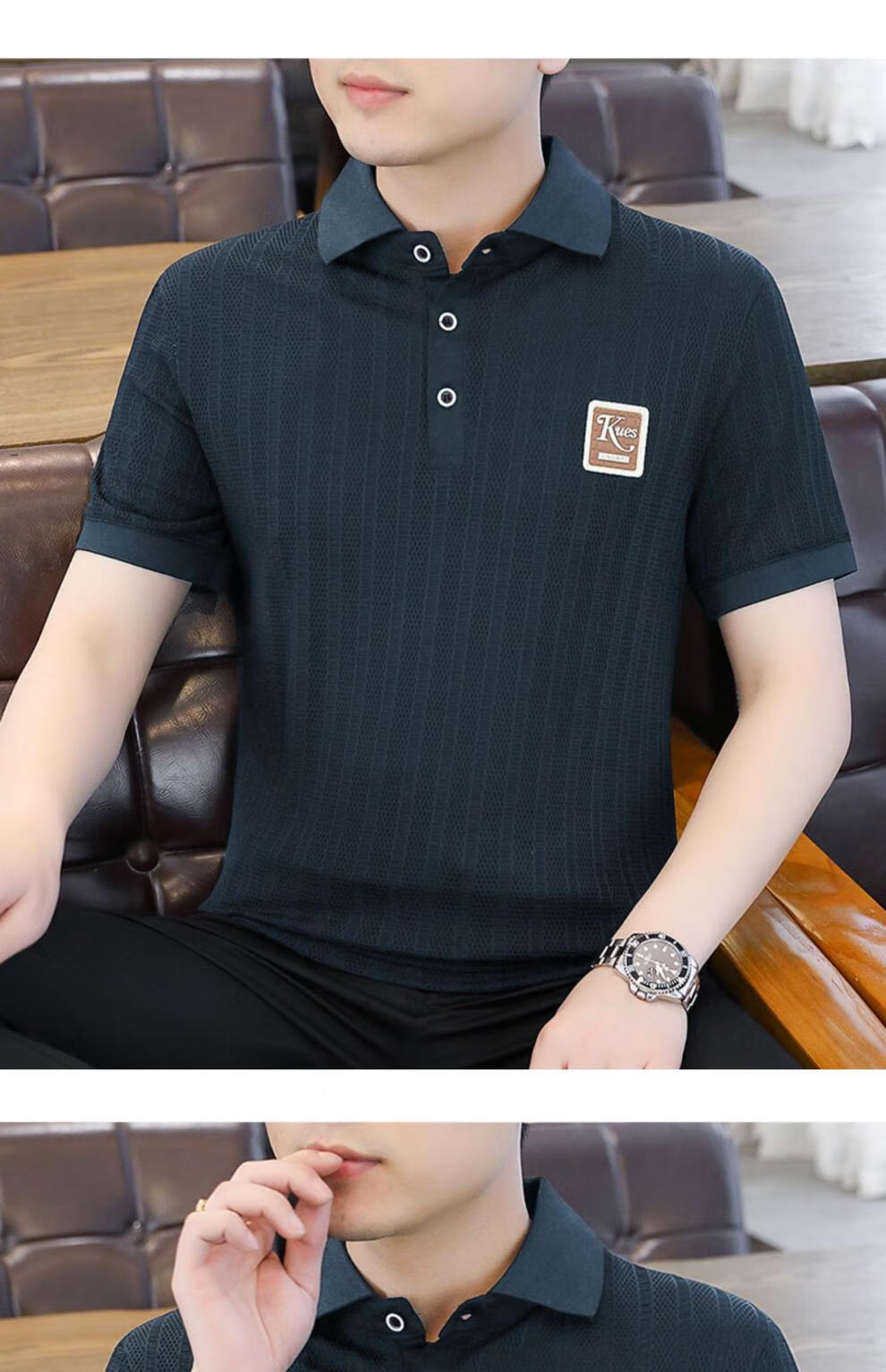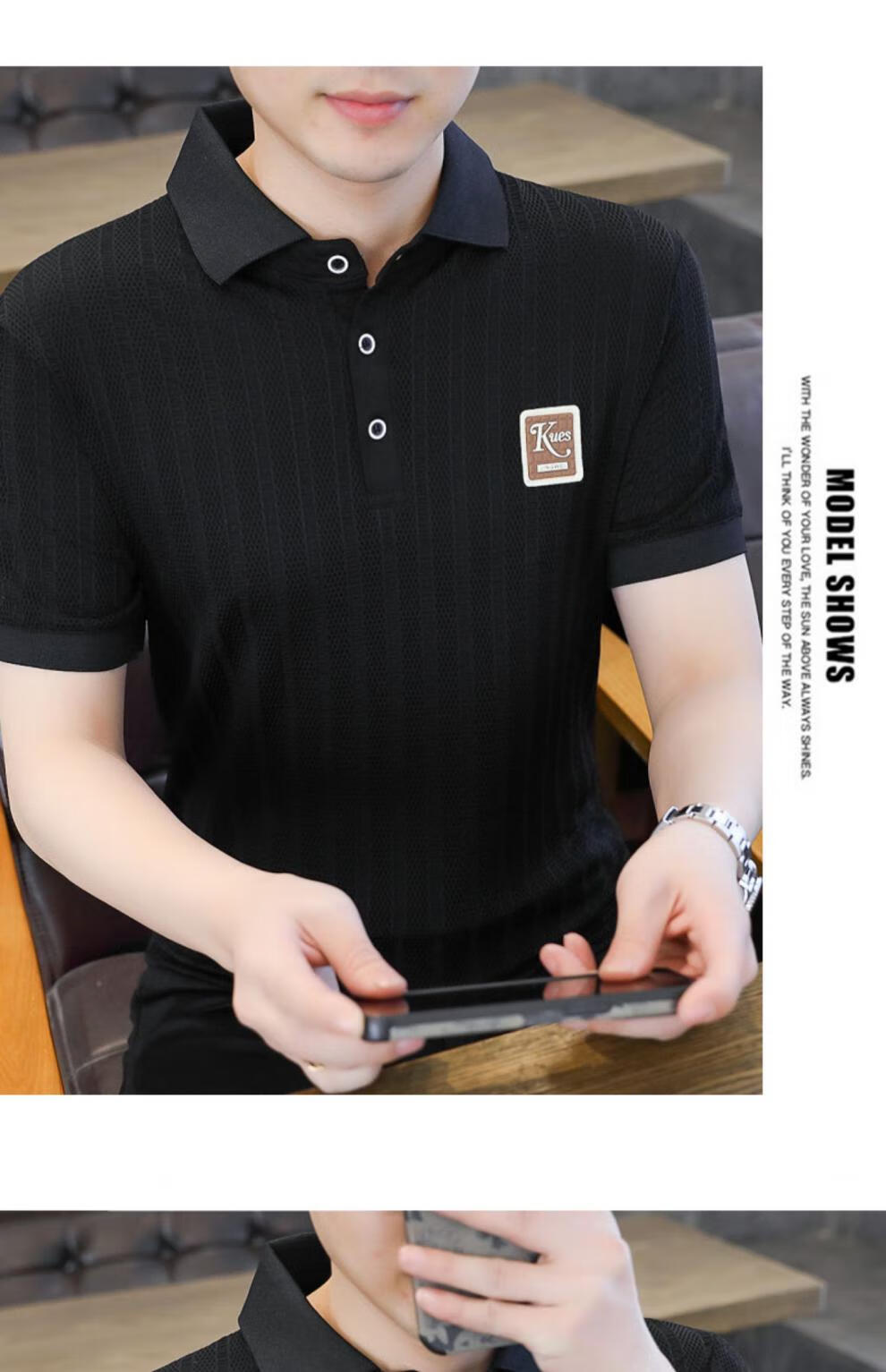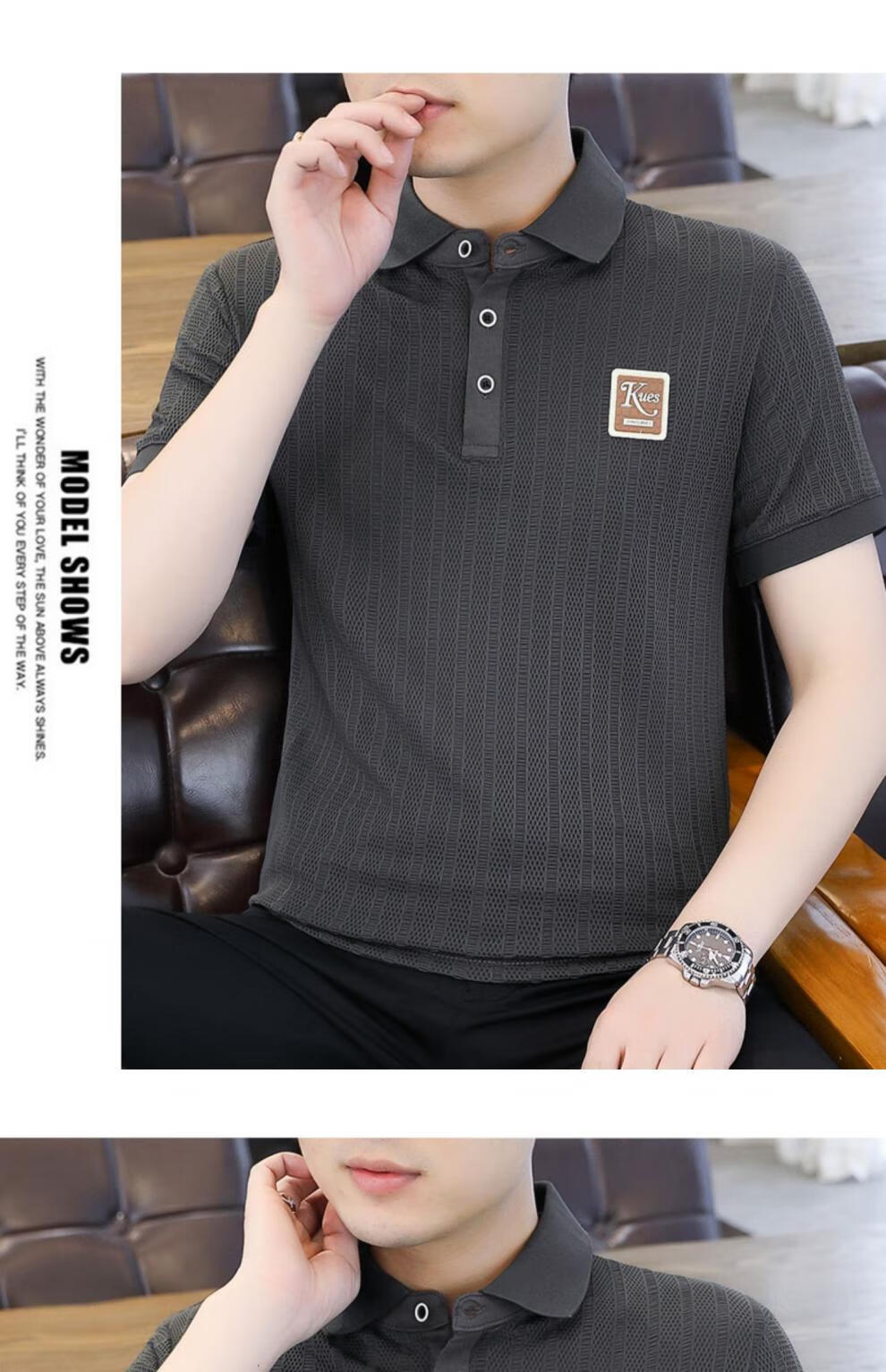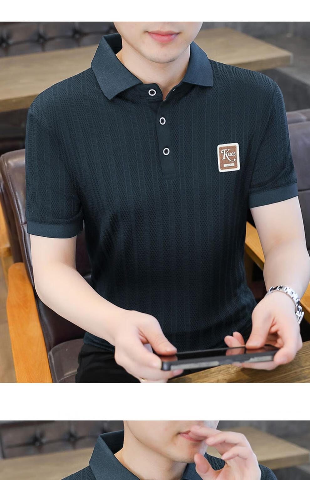 罗蒙(ROMON)冰丝短袖polo.衫男夏季薄款网眼镂空透气T恤2024新款纯色带领体恤 9923白色 L