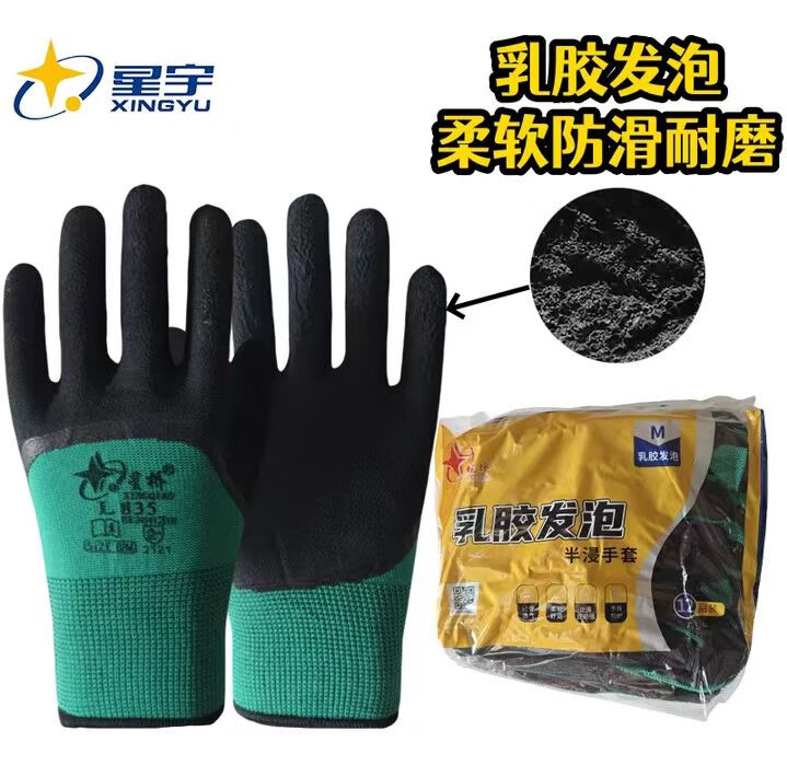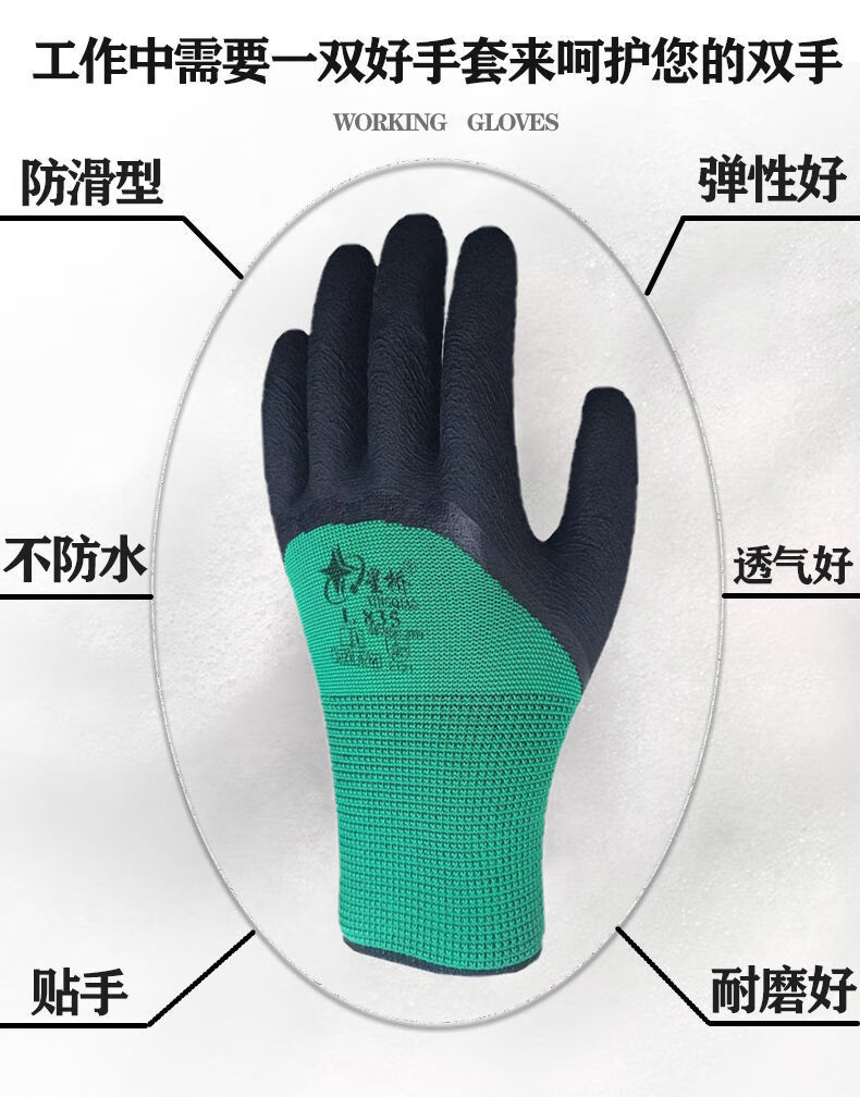 鲁晋缘L835新款专用劳保手套耐磨耐用不捂手保暖工地干活手套 星宇星桥L835绿沙黑 24双