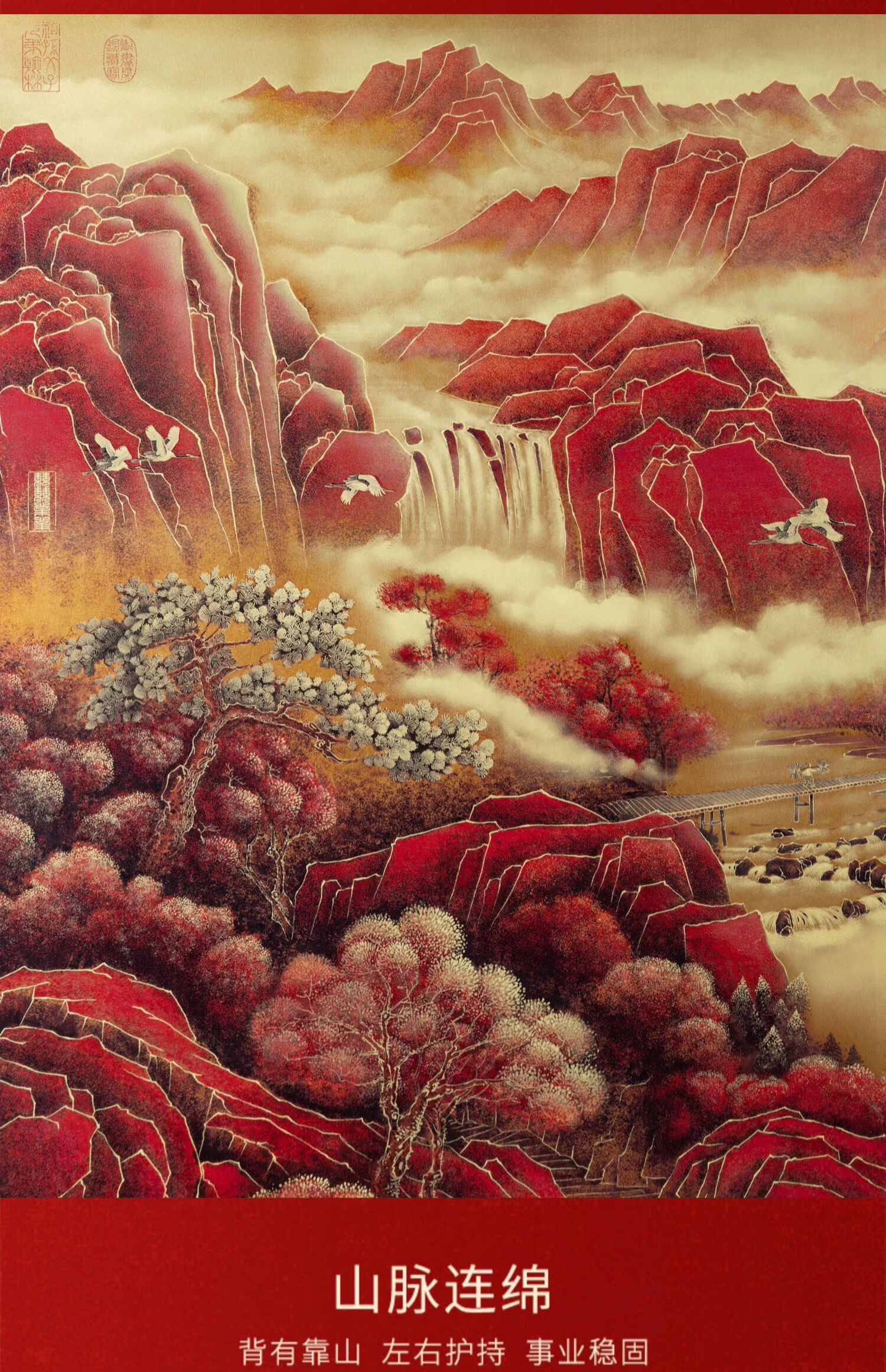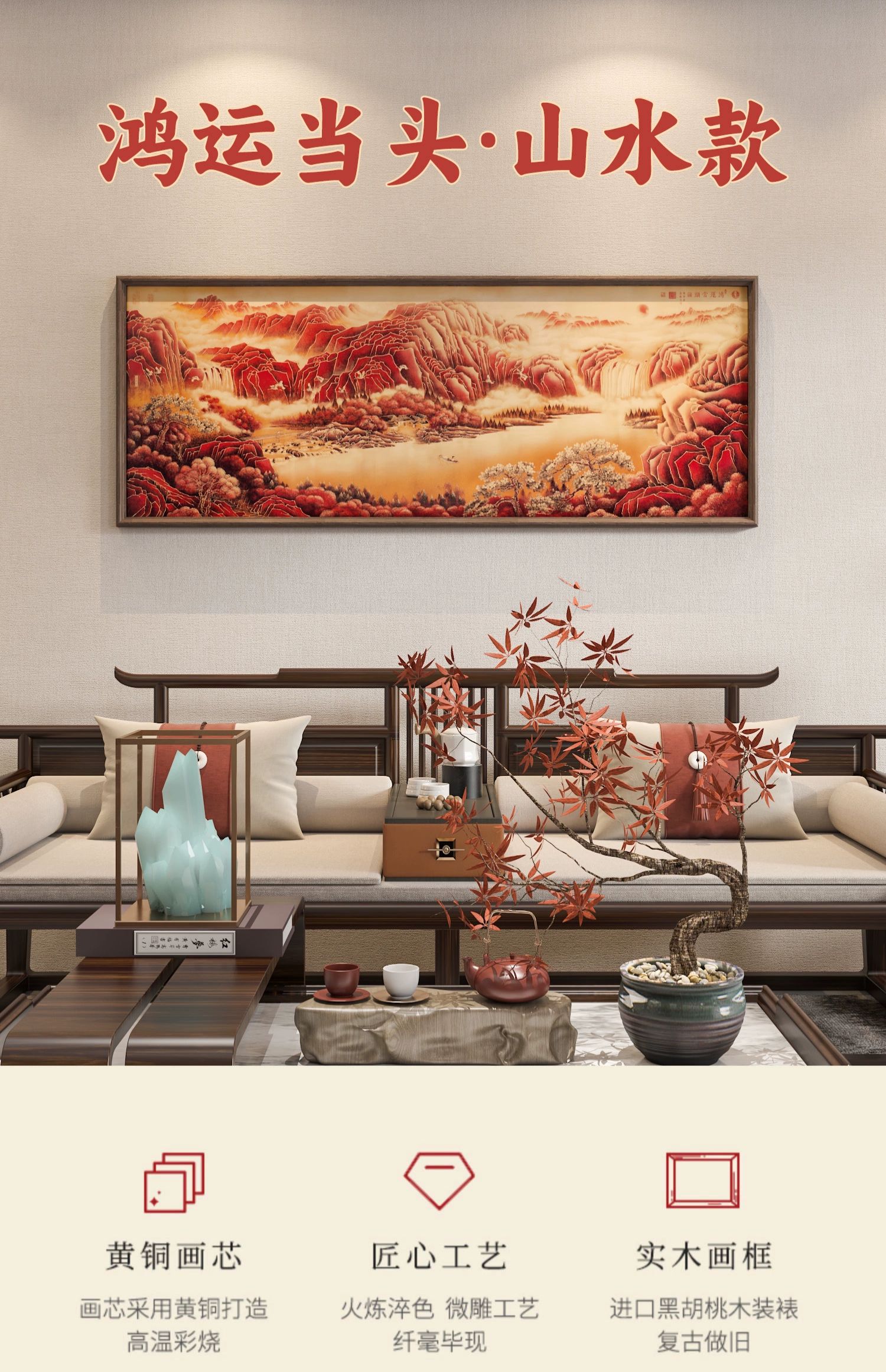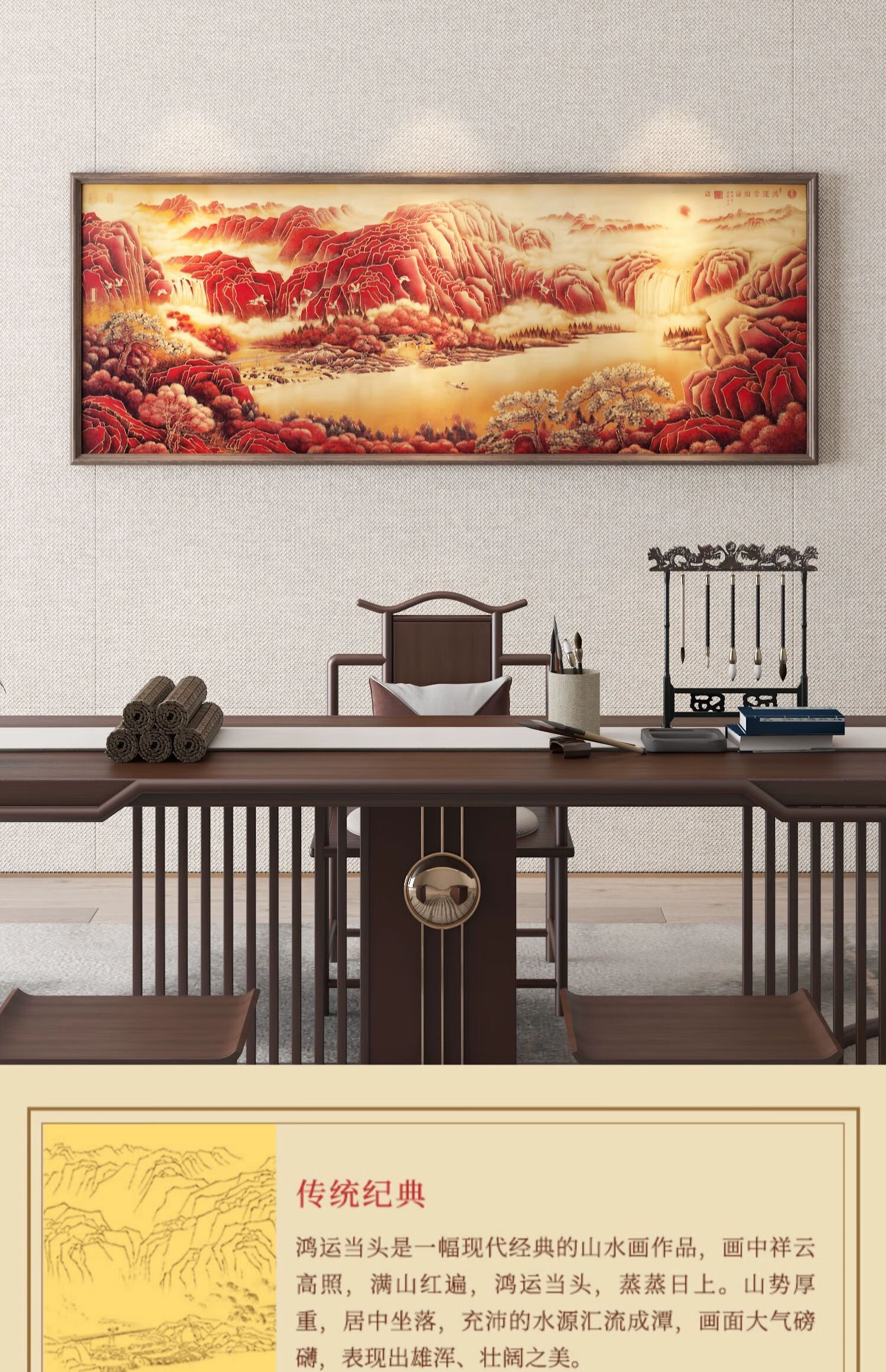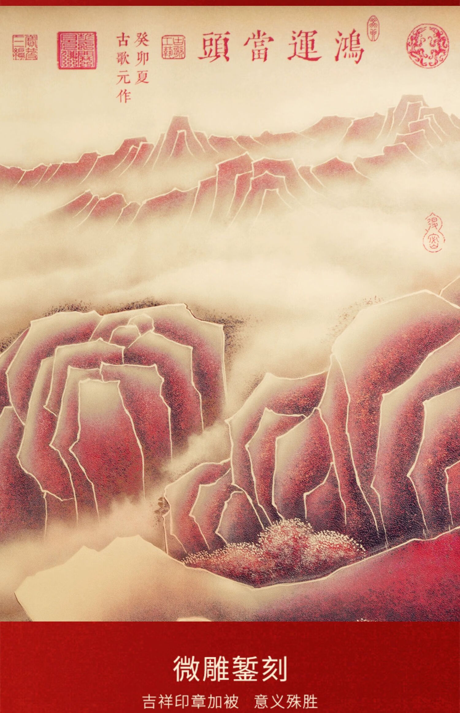 Yaji Lan Hongyun Cabeza Pintura De Paisaje Nuevo Estilo Chino Pintura Colgante Fondo De Sofá Decoración De Pared Pintura De Pared Paisaje De Oficina Impresión De Oricalco Estilo De Paisaje De Cabeza Hong Yun 2000*728mm