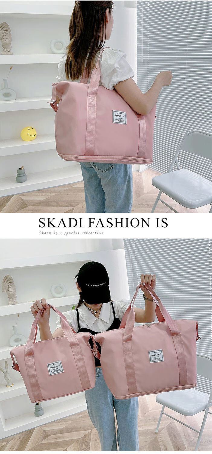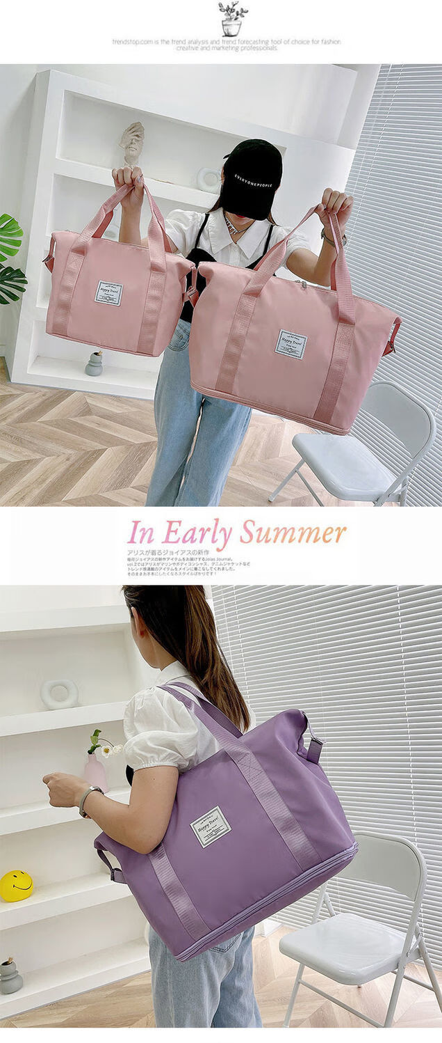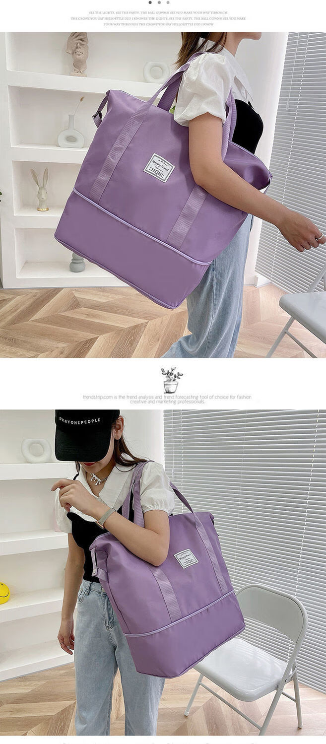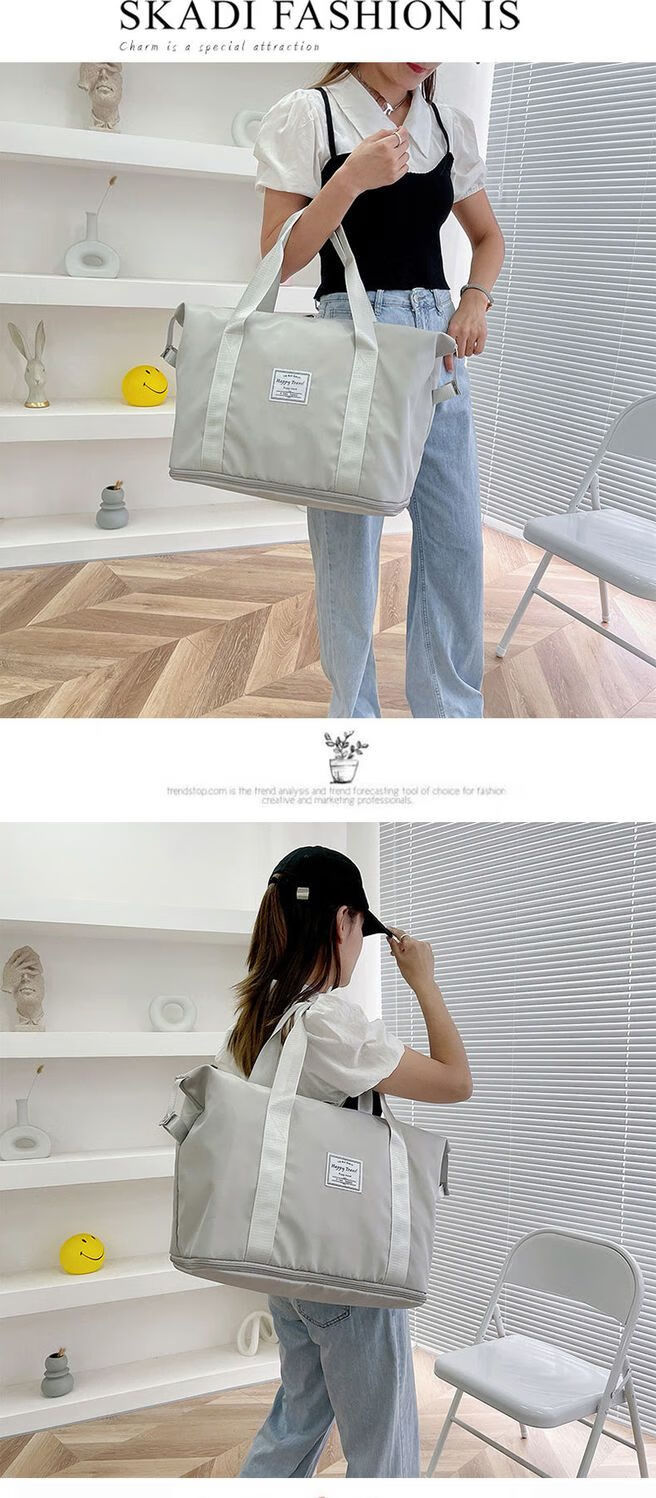 Reisetasche für Damen, Kurzstrecken-Gepäcktasche, große Kapazität, tragbare Reisetasche, leicht, wasserdicht, Umstandstasche, tragbare Aufbewahrungstasche für Reisen, großes blaues Modell, erweiterbar + Nass- und Trockentrennung