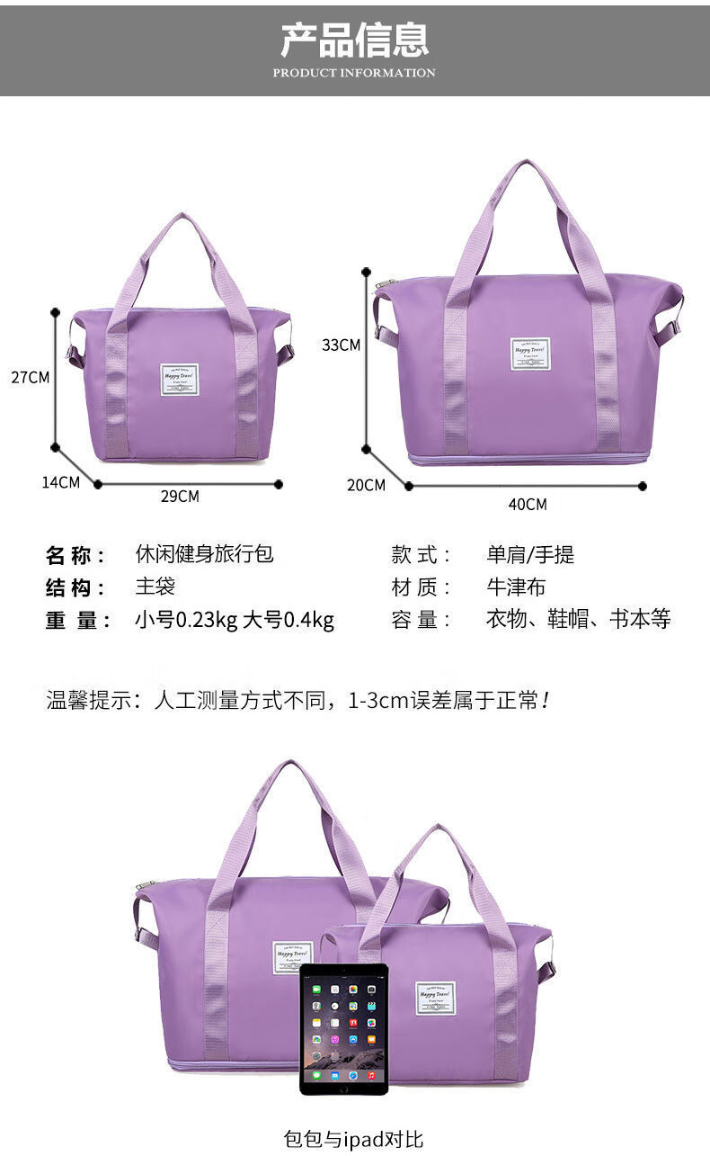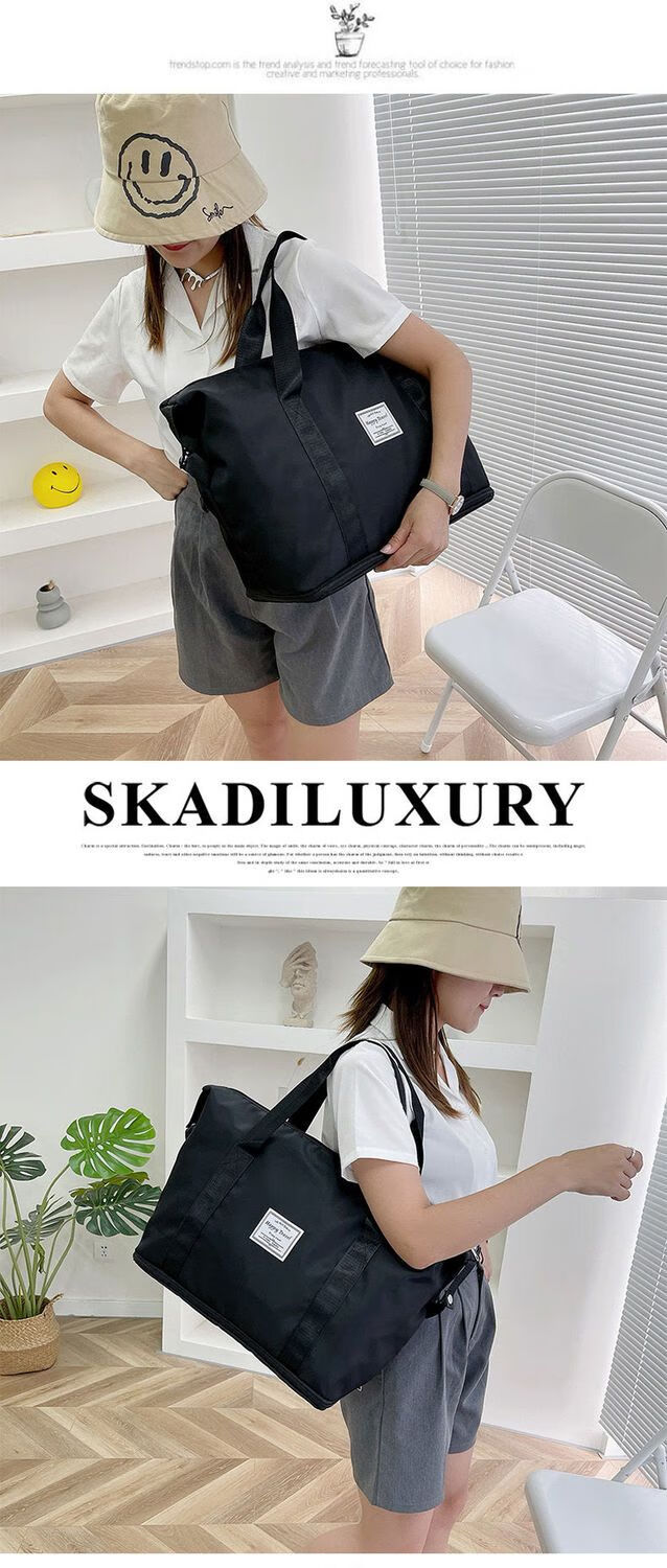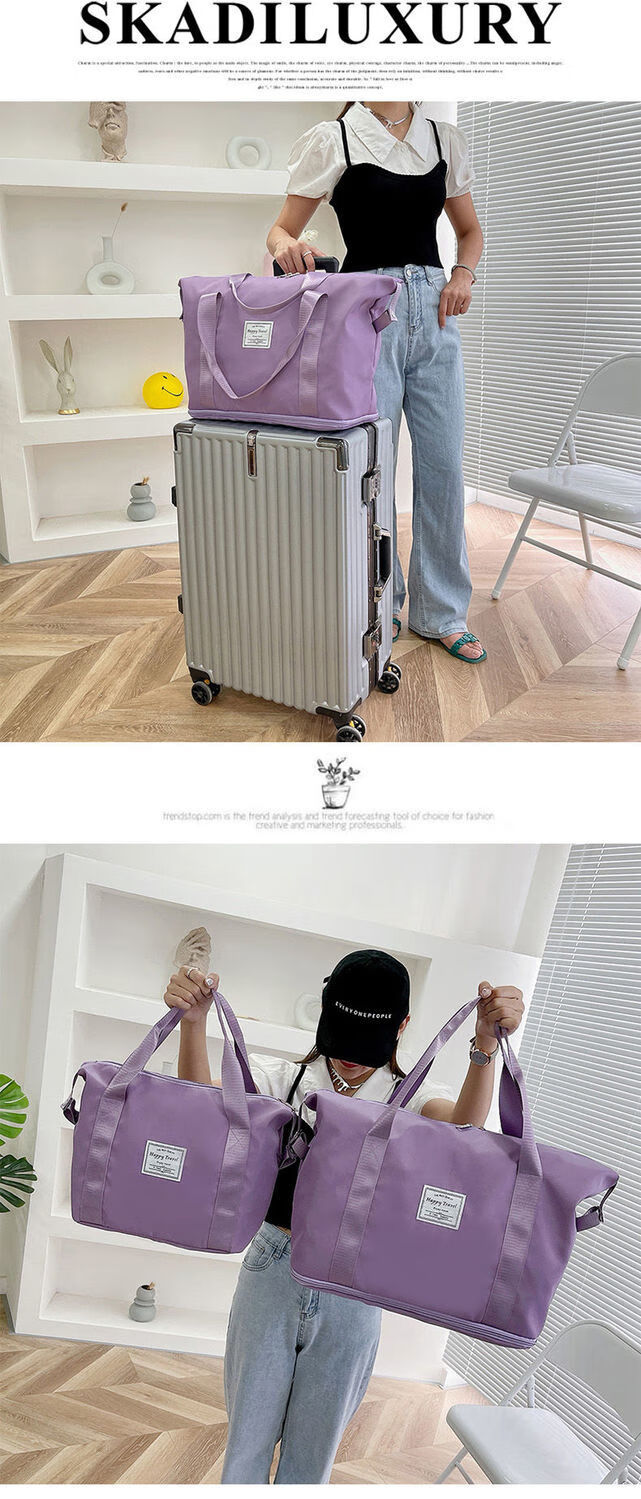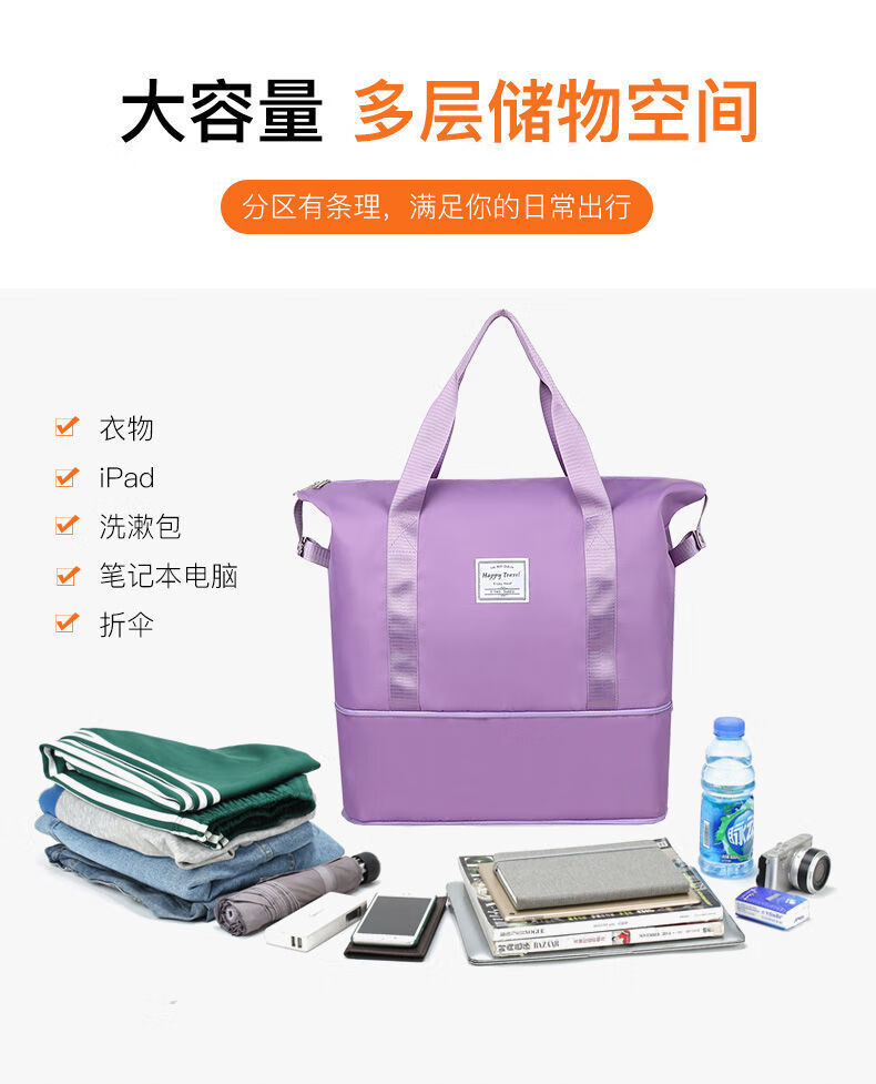 Reisetasche für Damen, Kurzstrecken-Gepäcktasche, große Kapazität, tragbare Reisetasche, leicht, wasserdicht, Umstandstasche, tragbare Aufbewahrungstasche für Reisen, großes blaues Modell, erweiterbar + Nass- und Trockentrennung