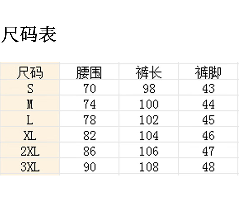Outseam (cm) 99 cm 101.5 cm 104 cm 106.5 cm 109 cm