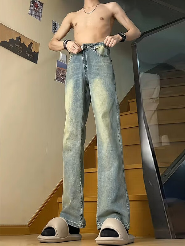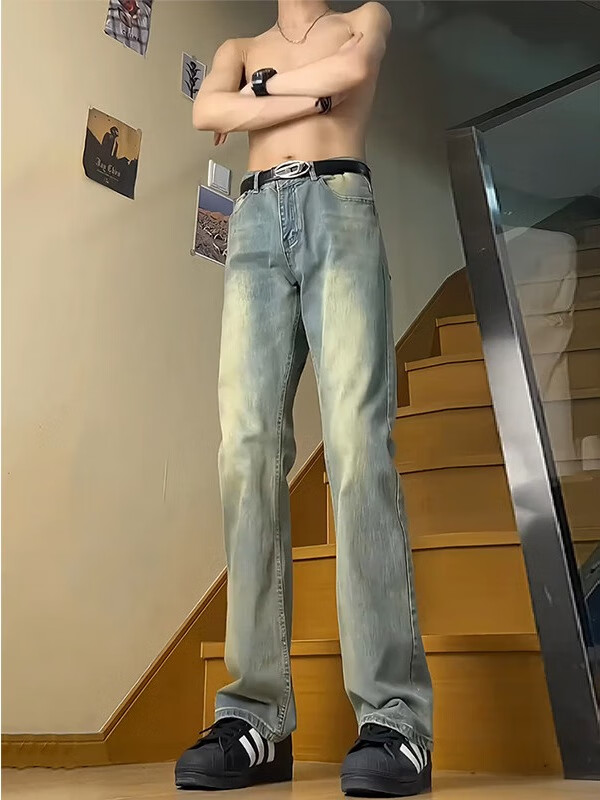 迪伽达美式高街cleanfit复古蓝牛仔裤男秋冬季直筒修身vibe裤子高腰微喇 GY-3026蓝色 XL
