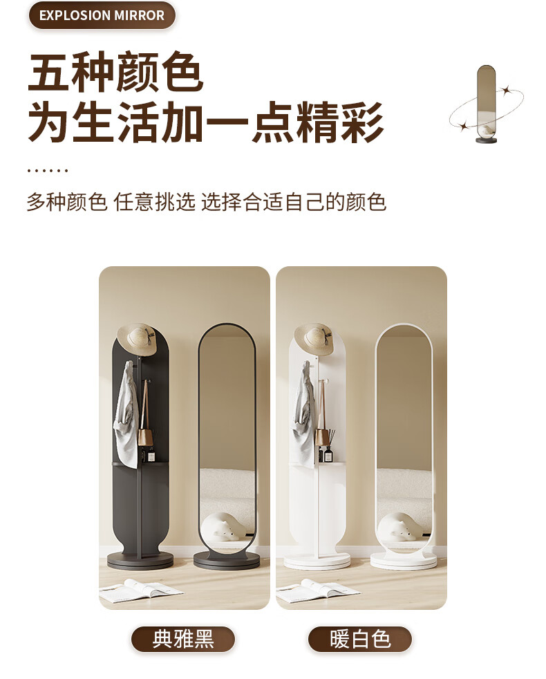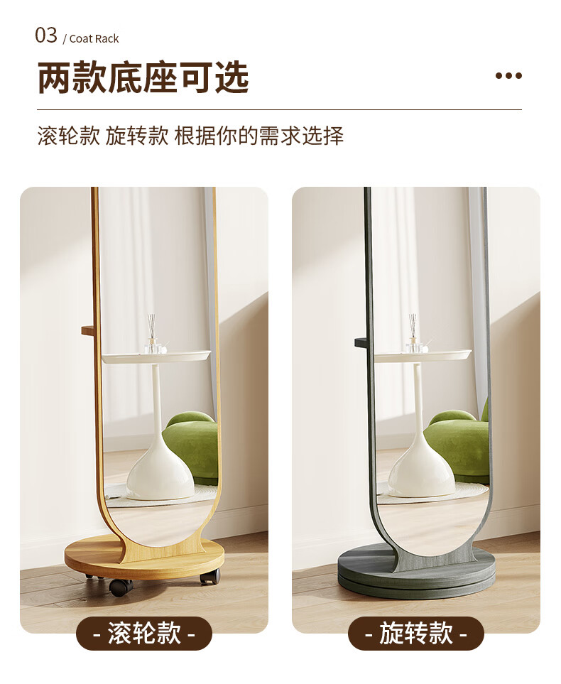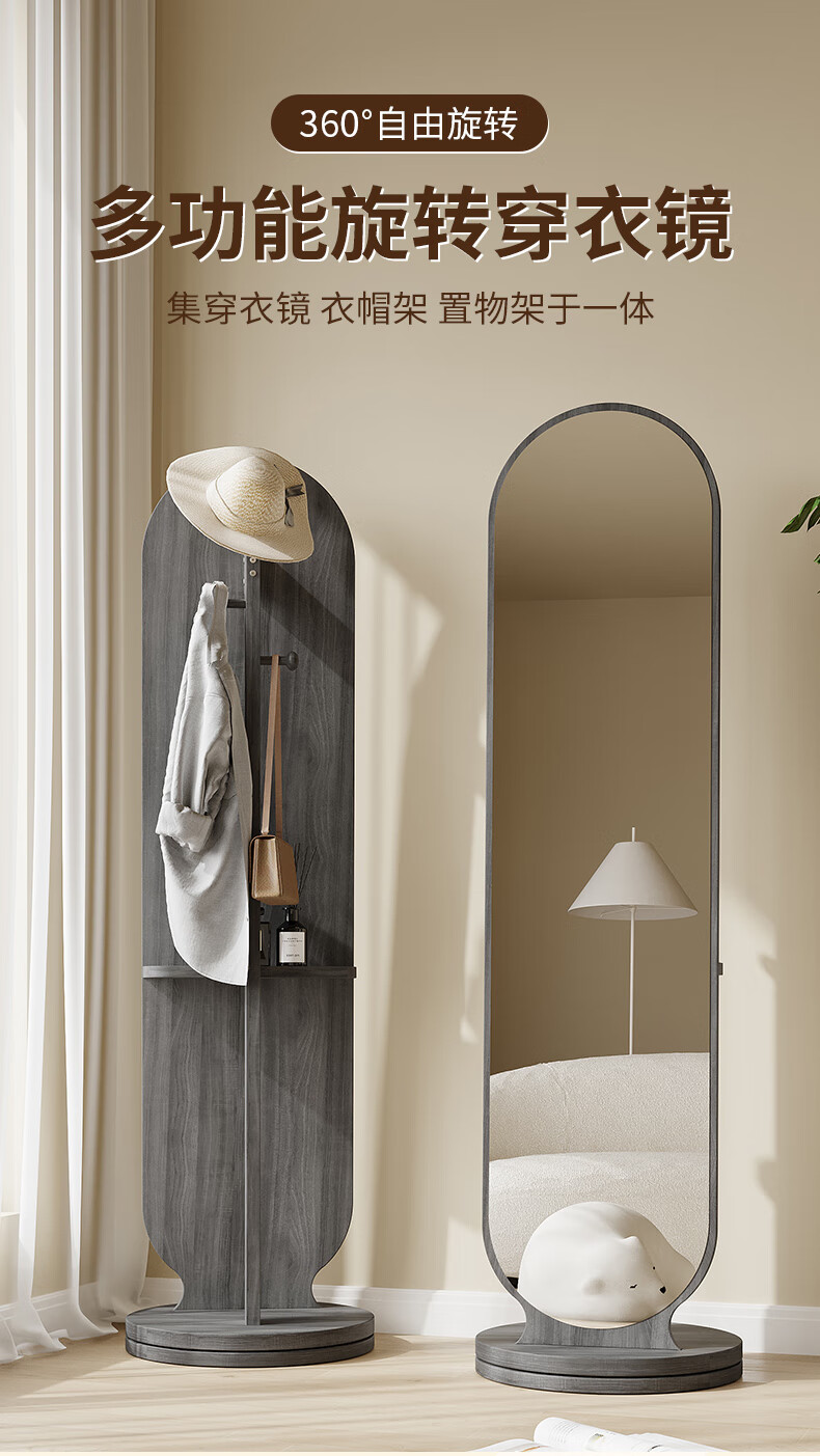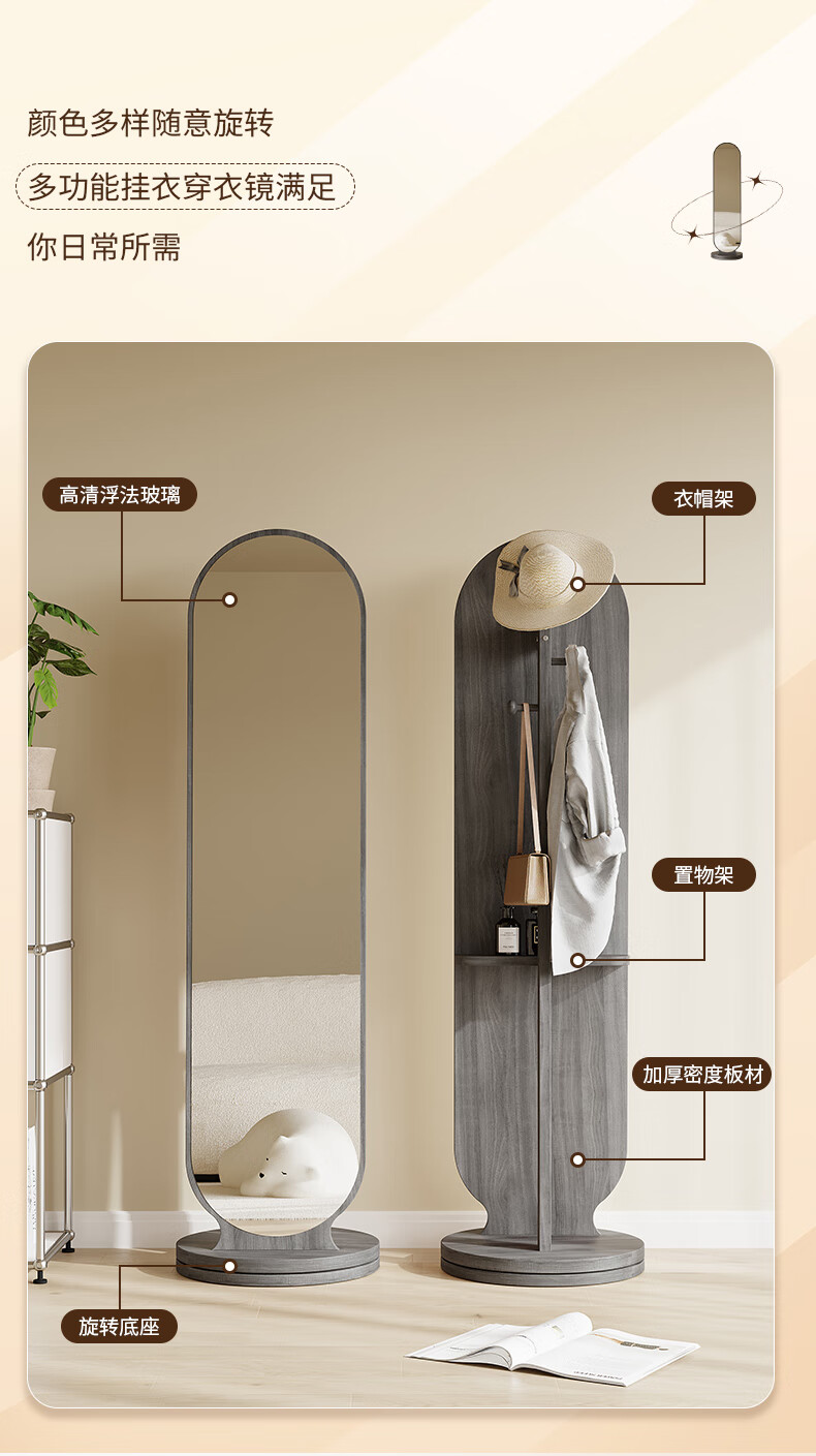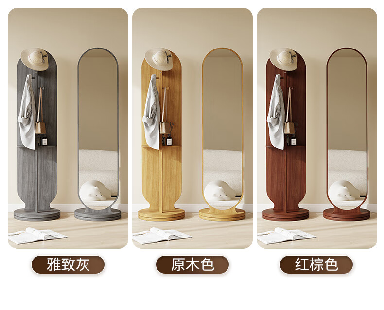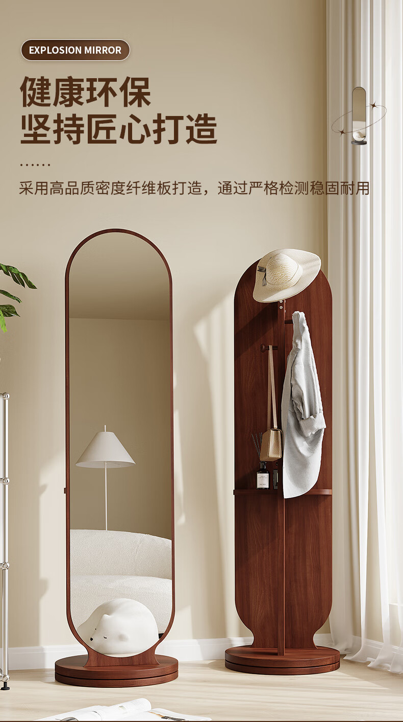 德旭简约穿衣镜全身落地镜家用卧室旋转可移动女生试衣镜客厅立体镜子 红棕色36*168【旋转+储物+挂衣】 【双圆跑道款】高清成像