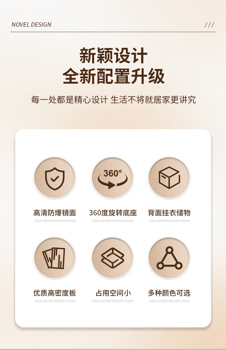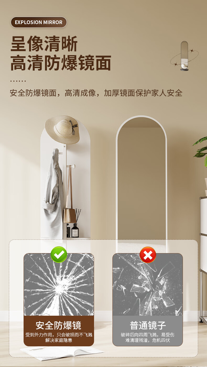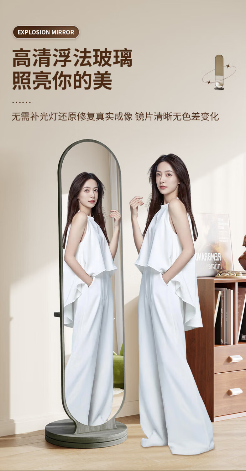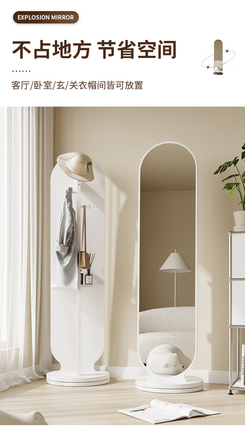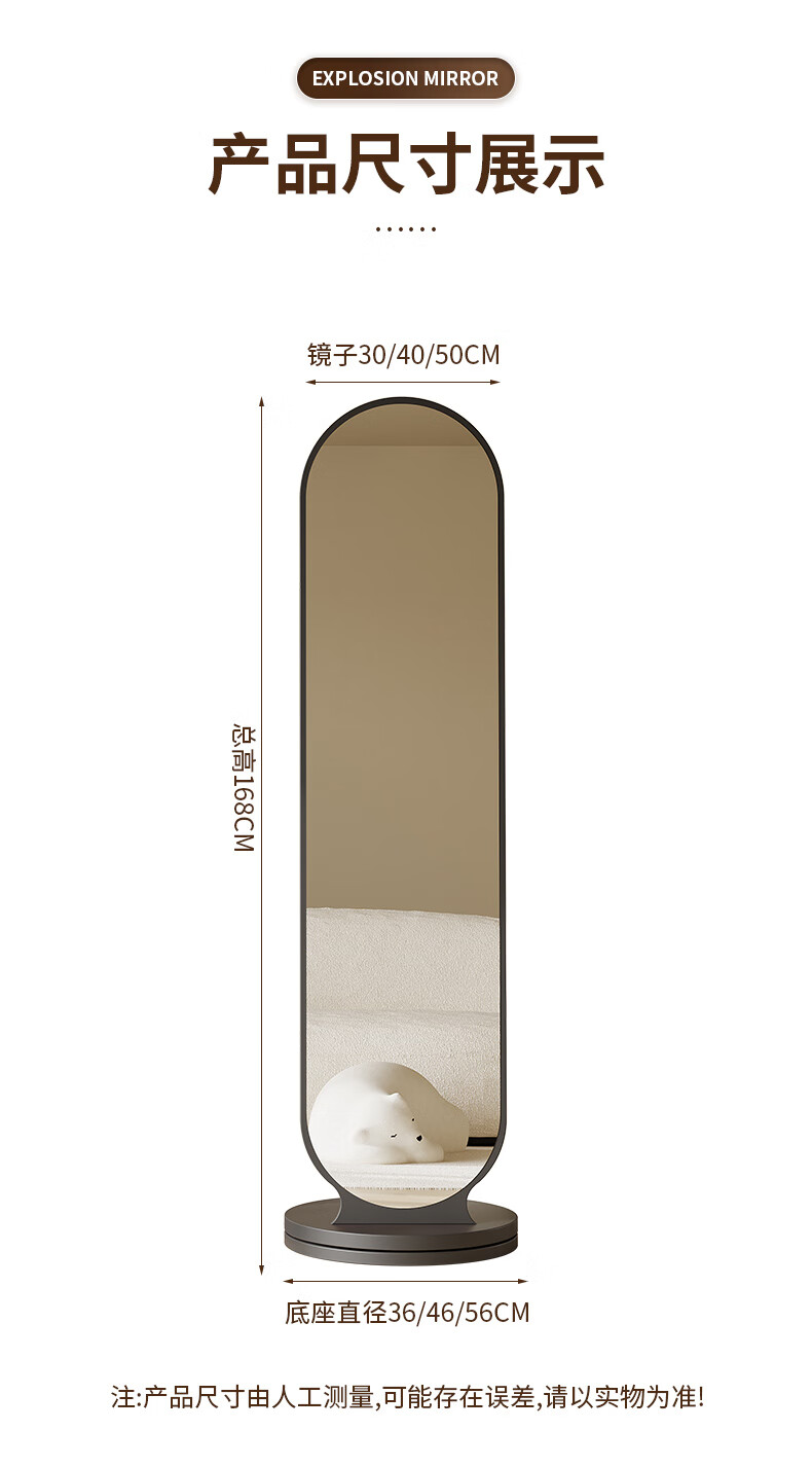 德旭简约穿衣镜全身落地镜家用卧室旋转可移动女生试衣镜客厅立体镜子 红棕色36*168【旋转+储物+挂衣】 【双圆跑道款】高清成像