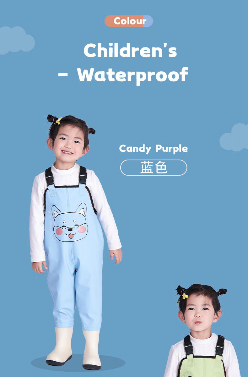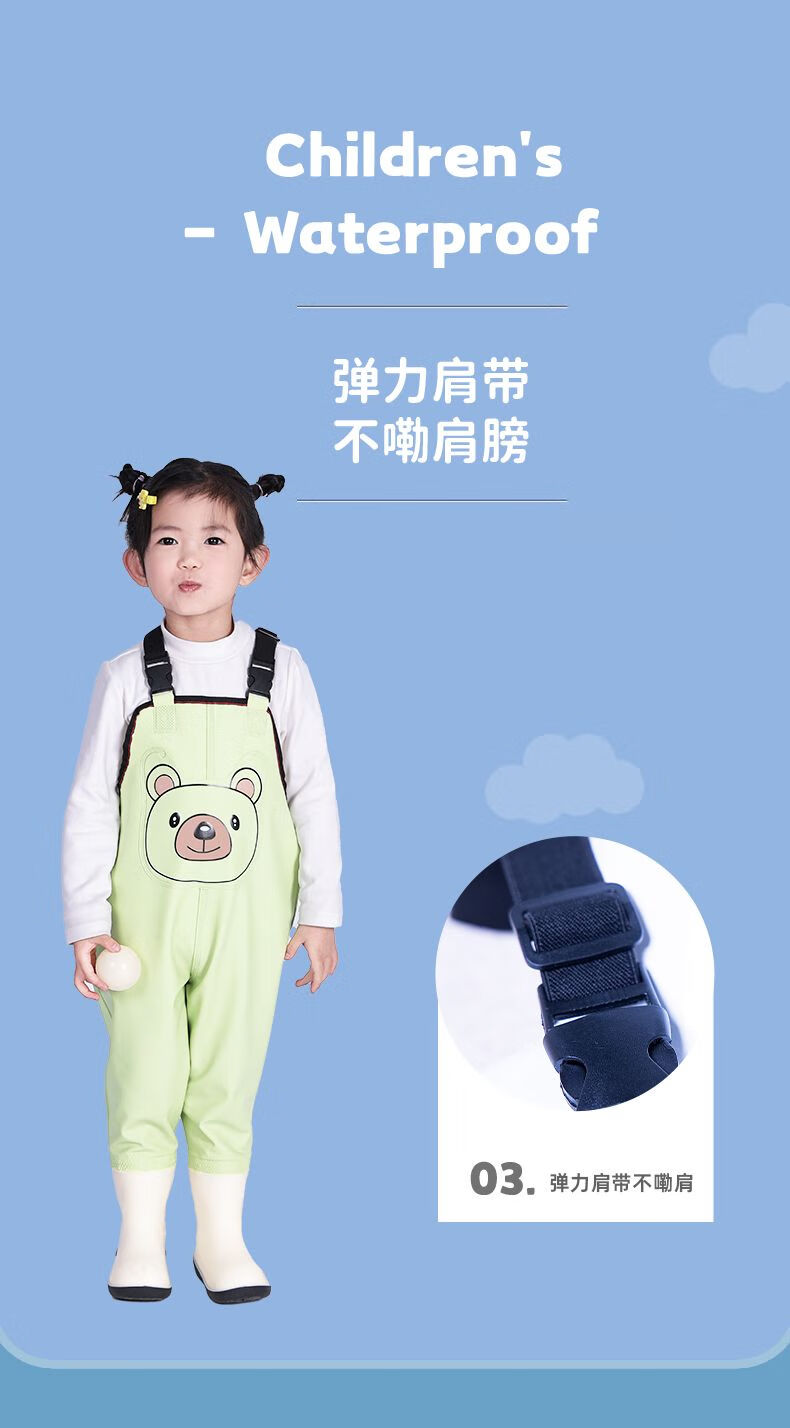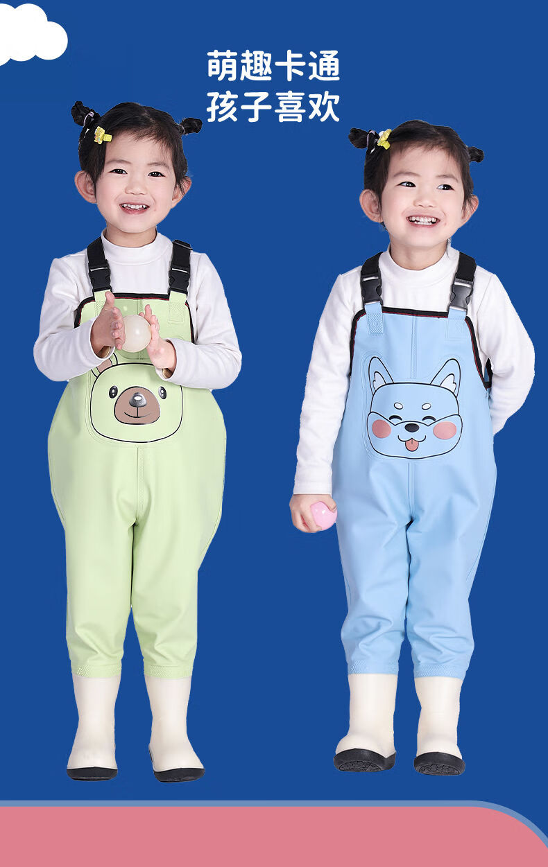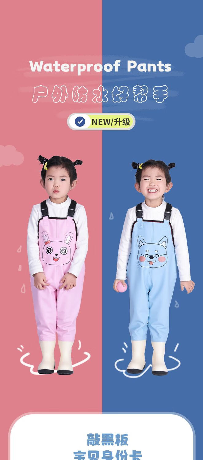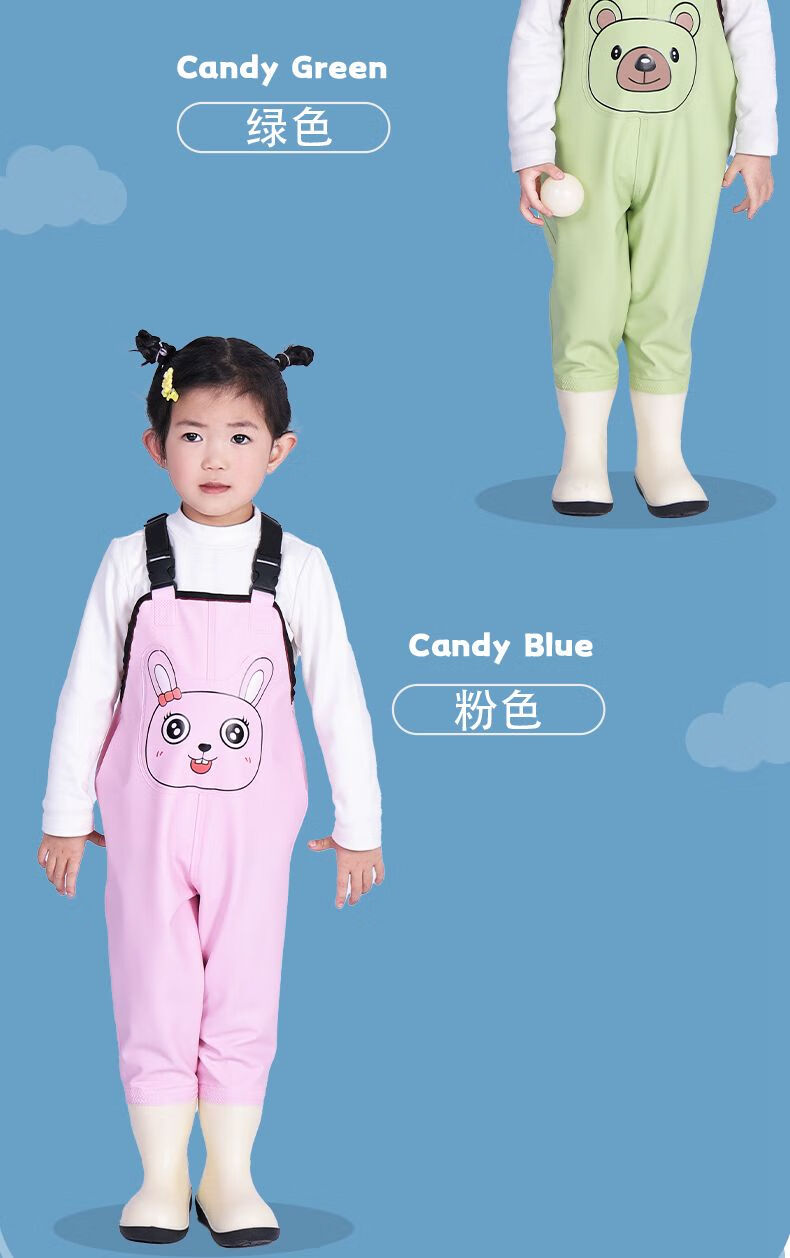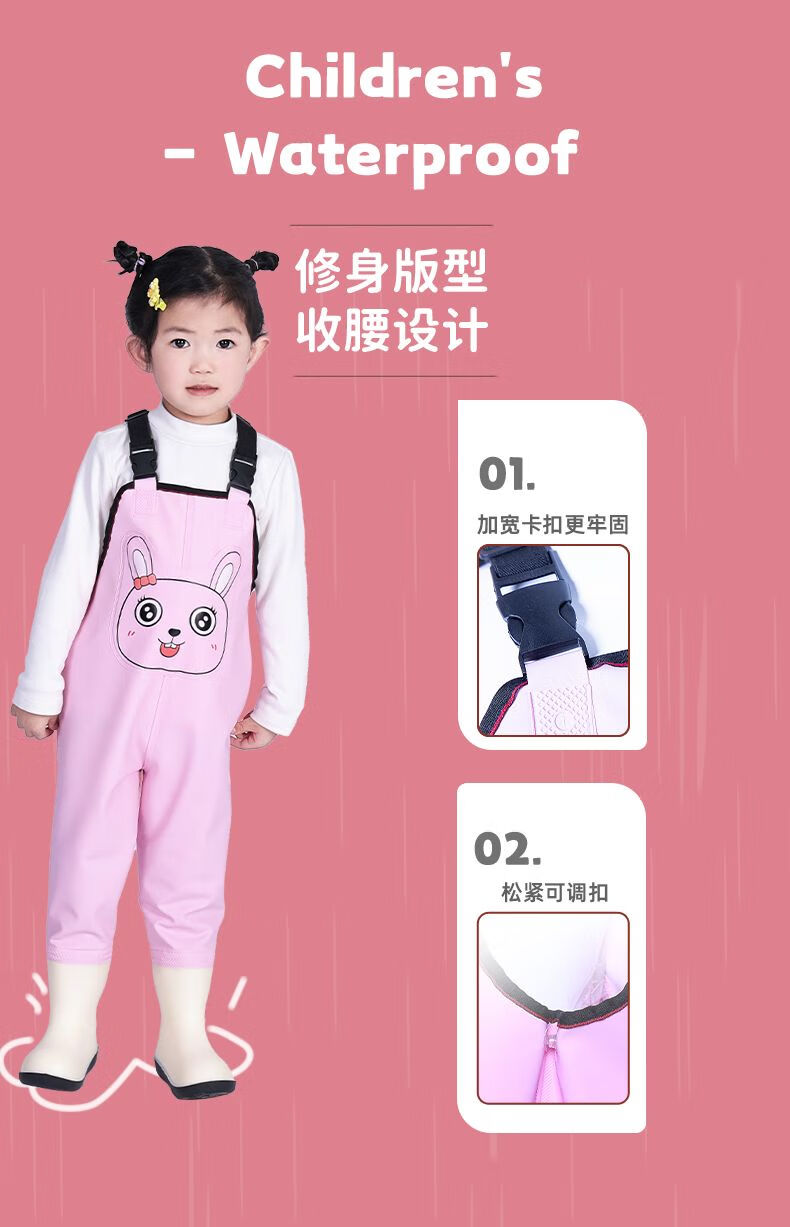 OLOEY one-piece waders for children to play in the water, kindergarten waterproof clothes for catching the sea, equipment for baby to catch fish, wading rain pants for the beach, Maca powder - bunny pocket - children's overalls 24 - shoe inner length 15cm