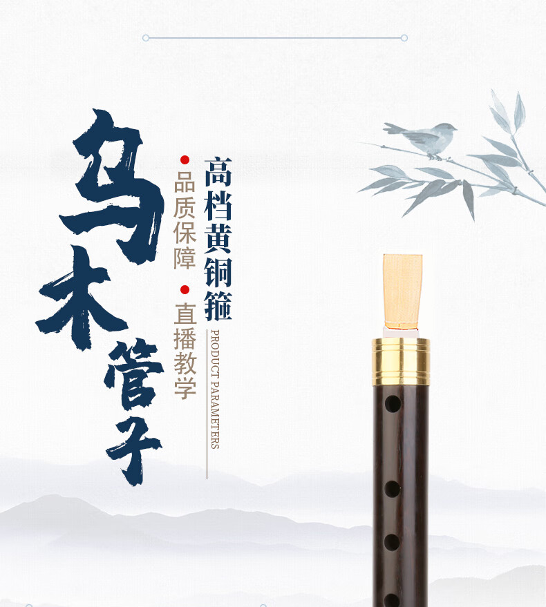 王家彪乌木催泪管子乐器初学者成人笛子管乐民族乐笛演奏民间 降B调 镀金箍管子+6