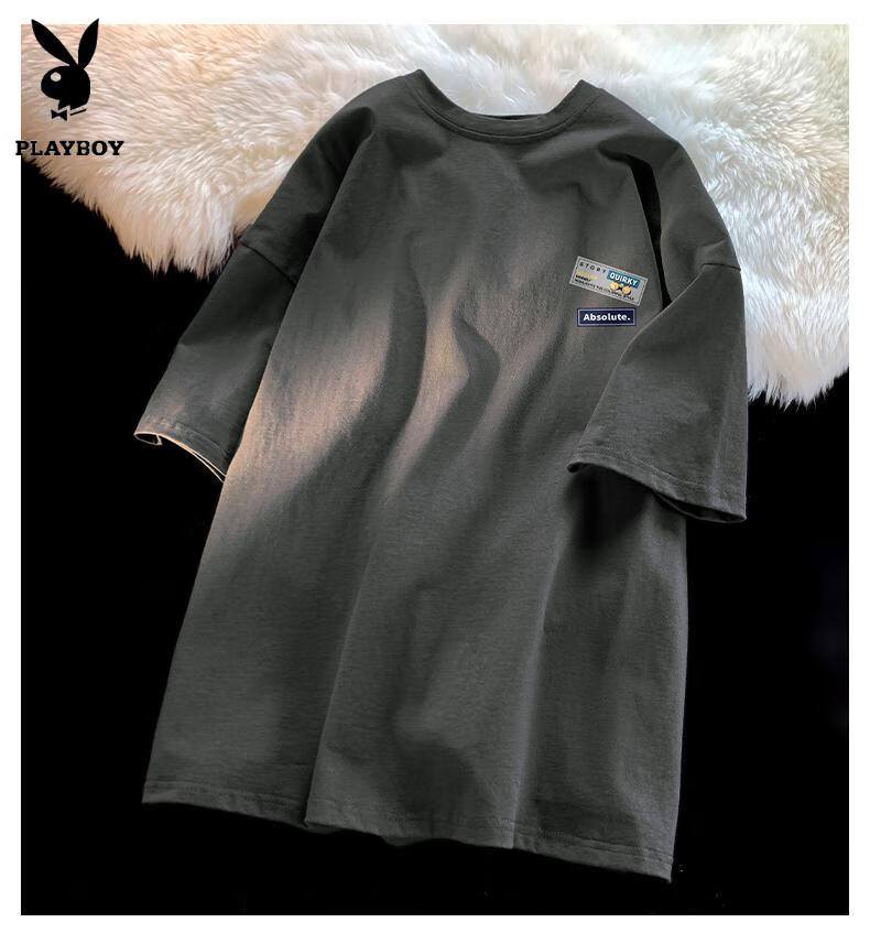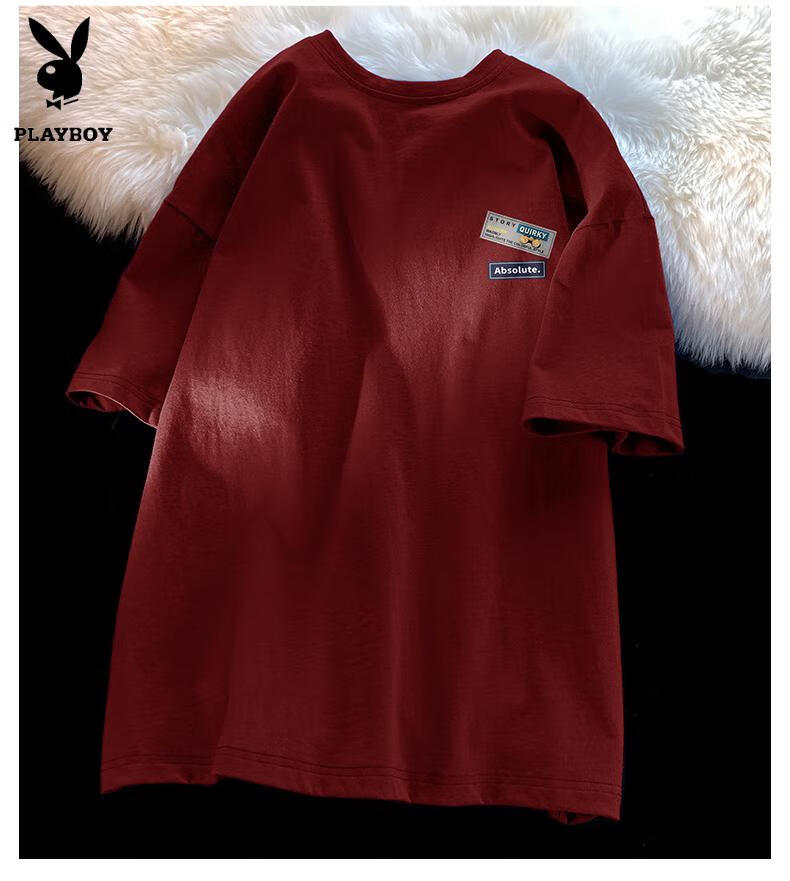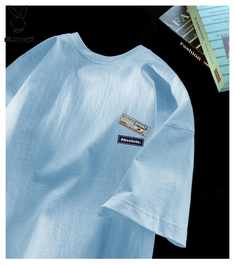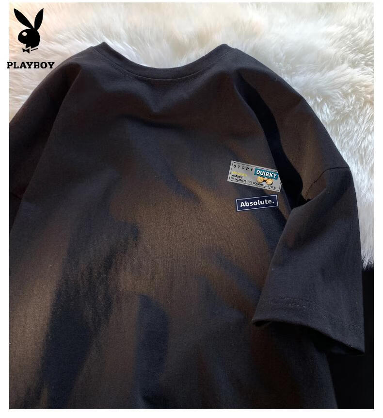 花花公子(PLAYBOY)纯棉短袖t恤男士夏季新款宽松圆领重磅高街男生半袖休闲上衣潮牌 白色 XL