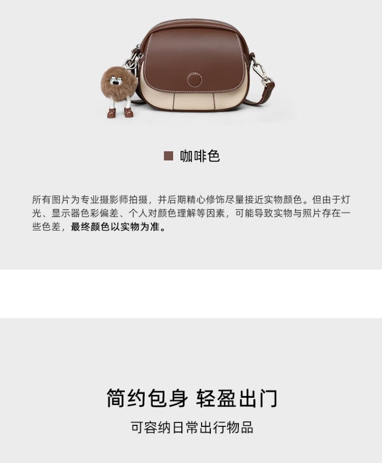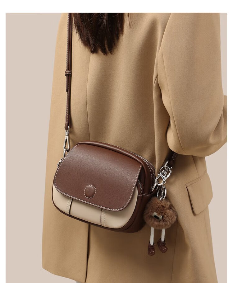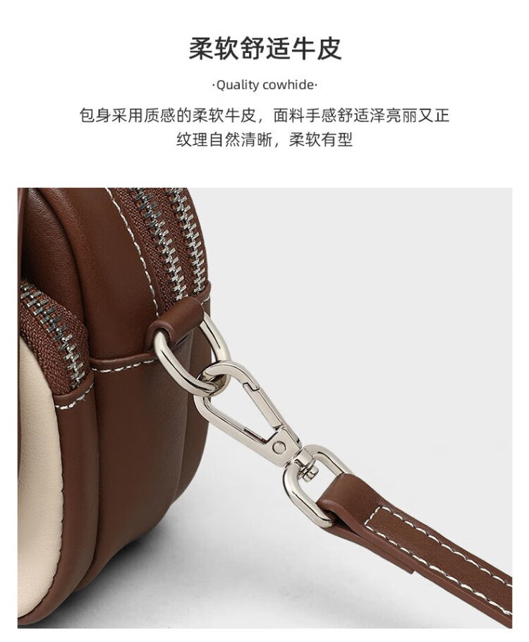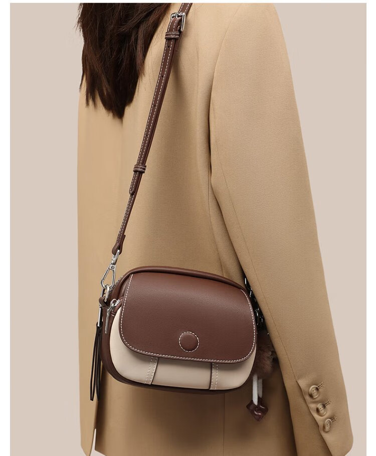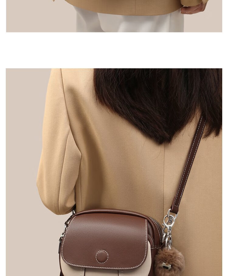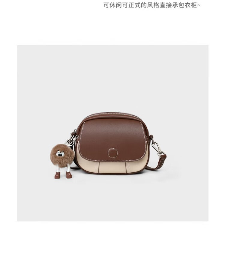 CALWAN KEODH包包女包2025新款秋冬牛皮斜挎包小圆包小众生日元旦礼物送女友 【咖啡色】轻奢时尚百搭撞色包实用走心女生闺蜜