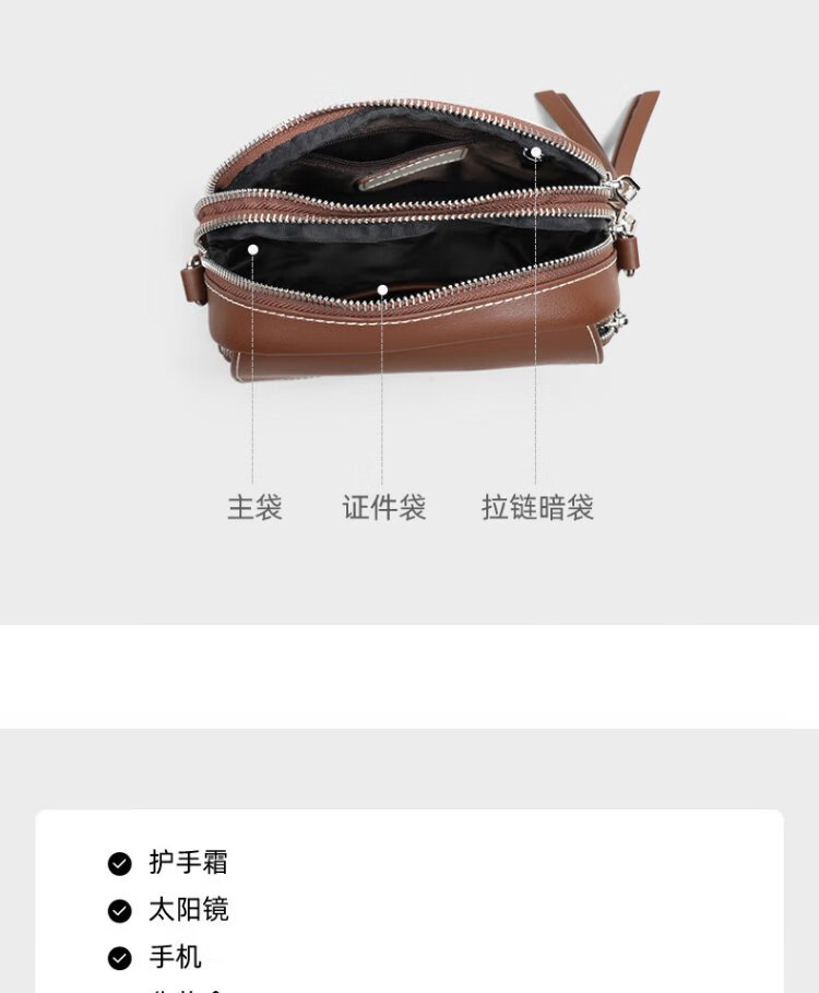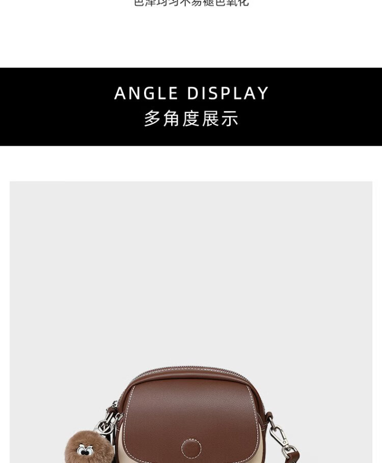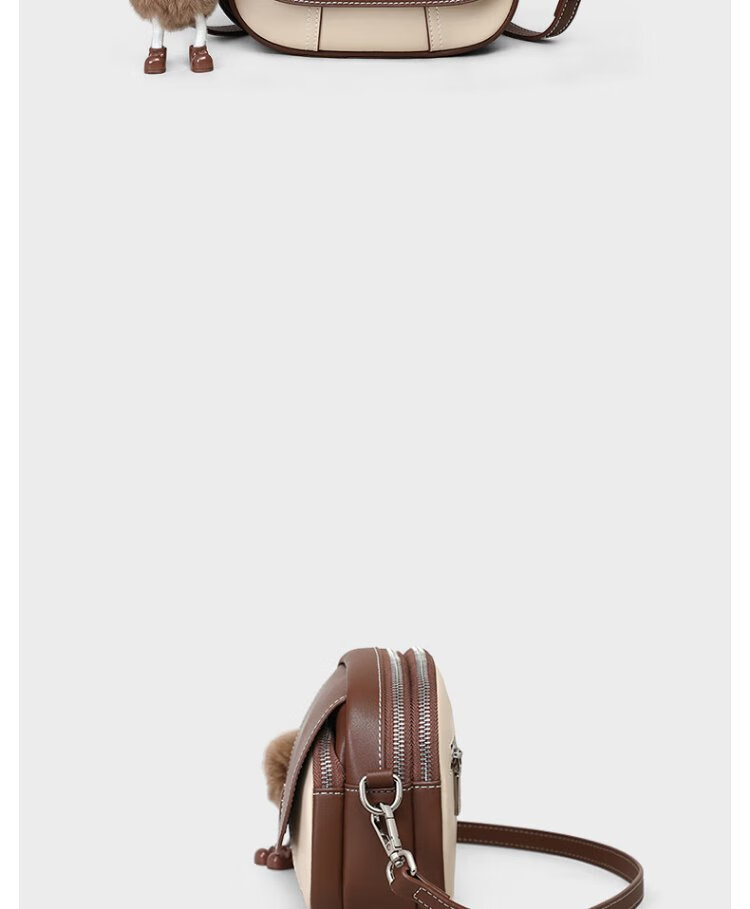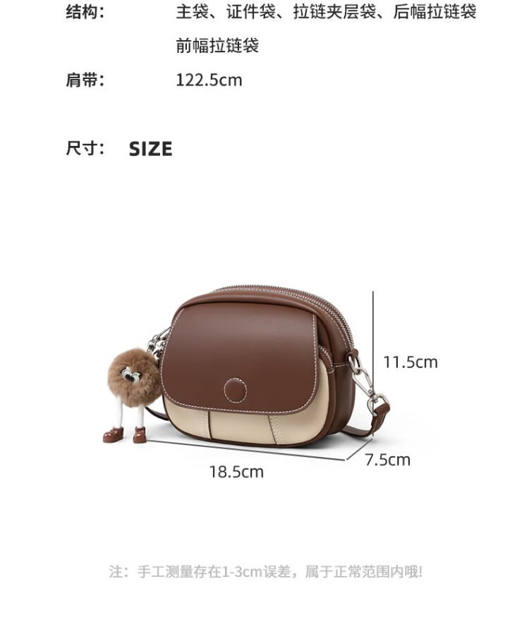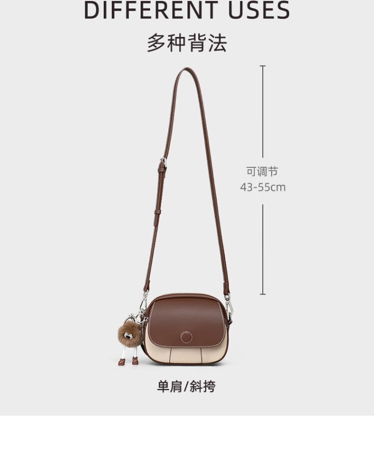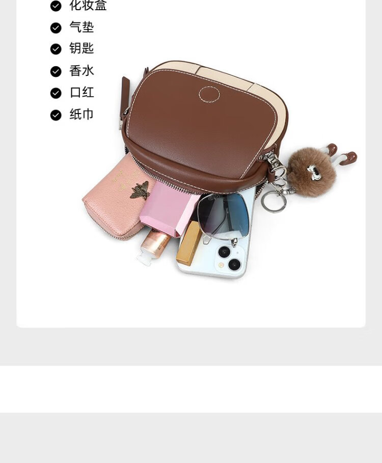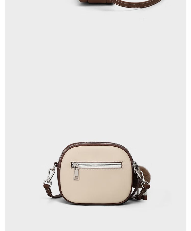 CALWAN KEODH包包女包2025新款秋冬牛皮斜挎包小圆包小众生日元旦礼物送女友 【咖啡色】轻奢时尚百搭撞色包实用走心女生闺蜜