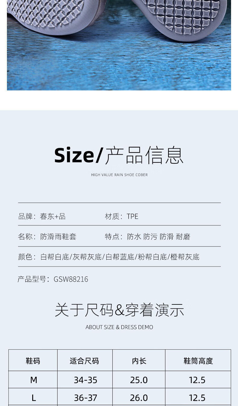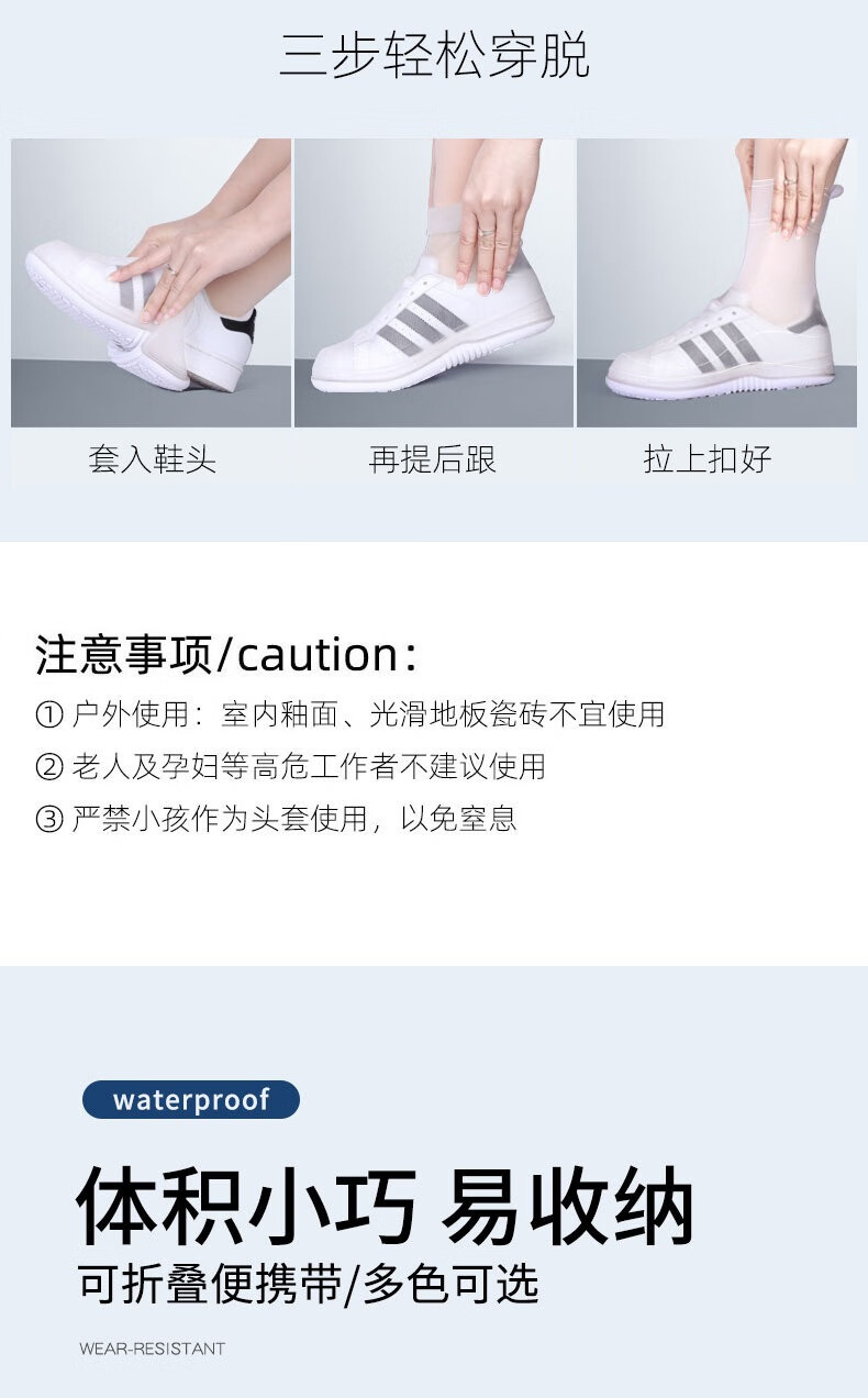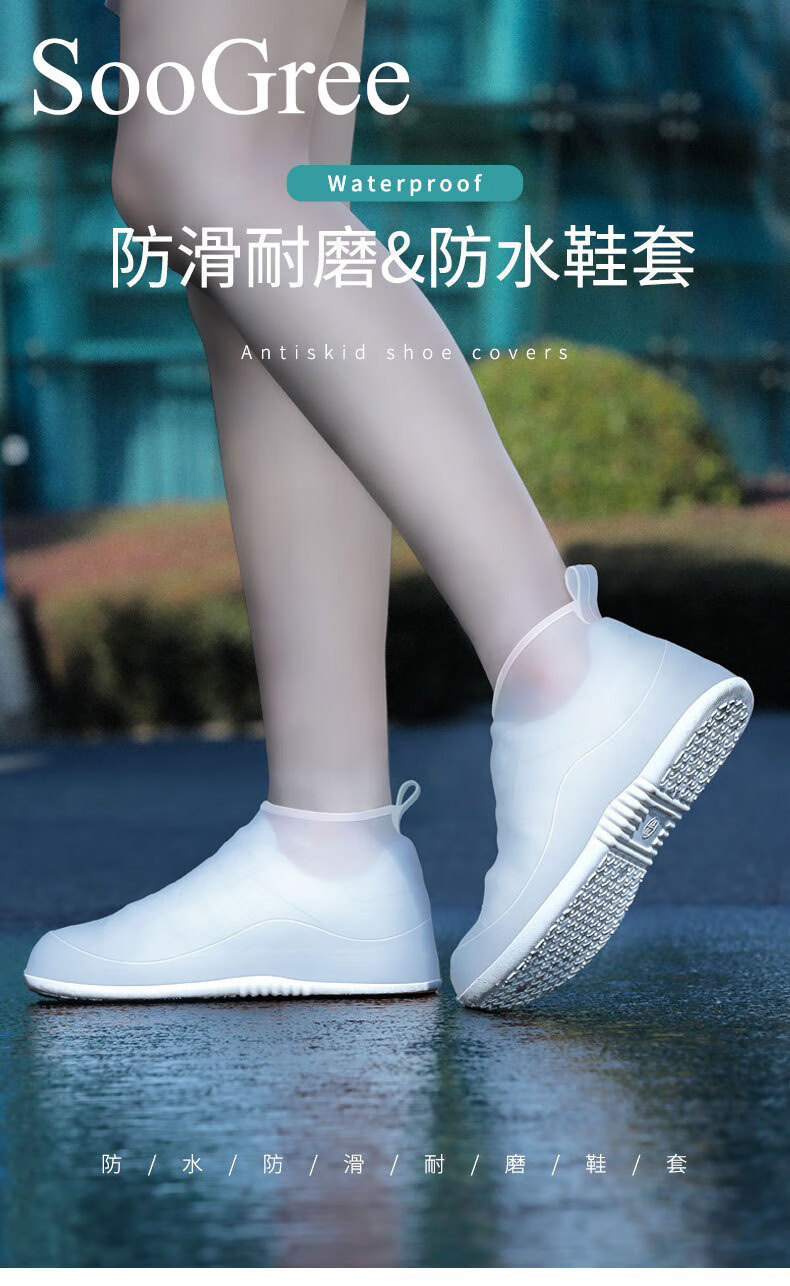 SooGree雨鞋套男女通用防雨防滑加厚鞋套下雨天出行可折叠便携高弹雨鞋套 GSW88216雨鞋套白色 L (36-37码)