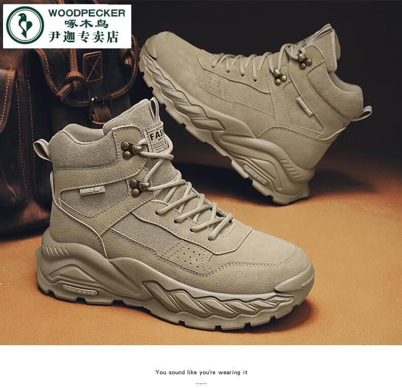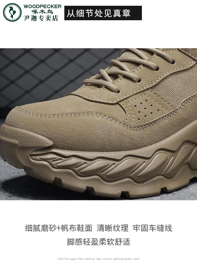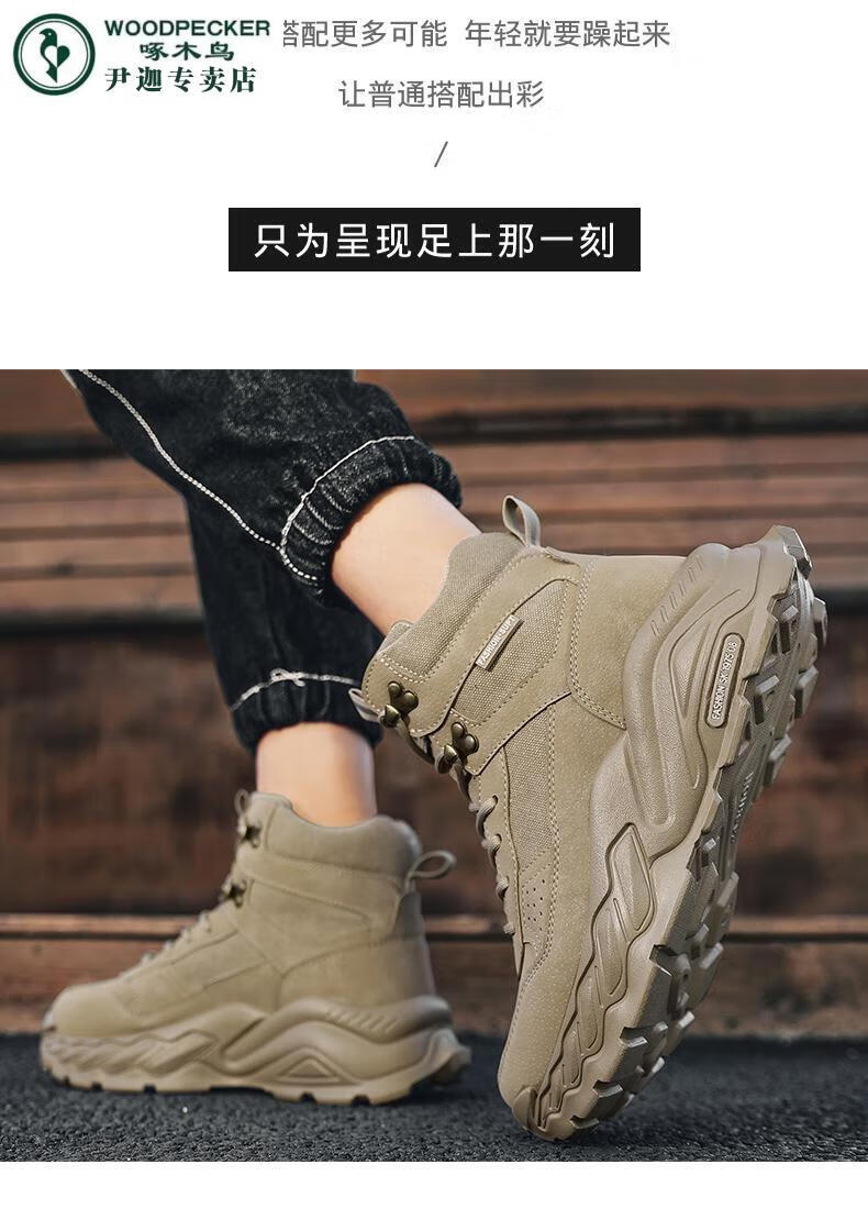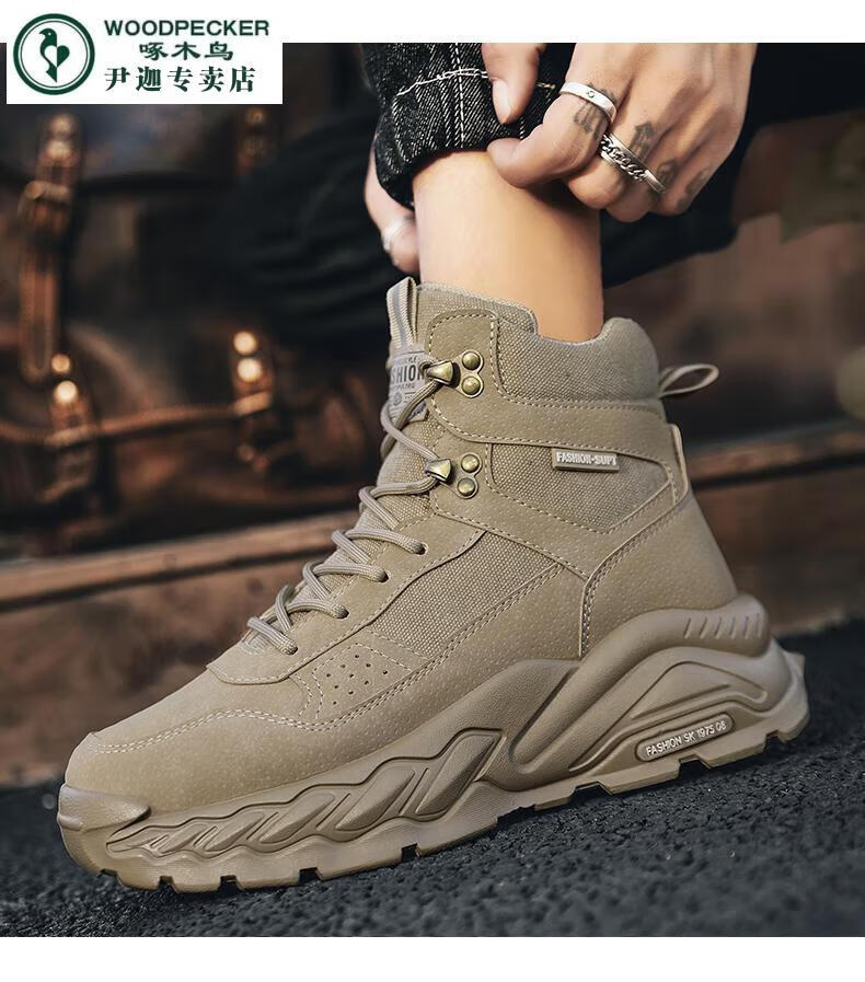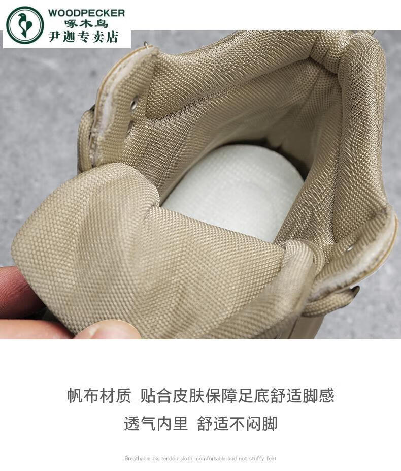 Woodpecker botas Martin de cuero genuino zapatos de hombre otoño desierto ropa de trabajo retro protección laboral montañismo al aire libre deportes botas de combate casuales Caqui 41