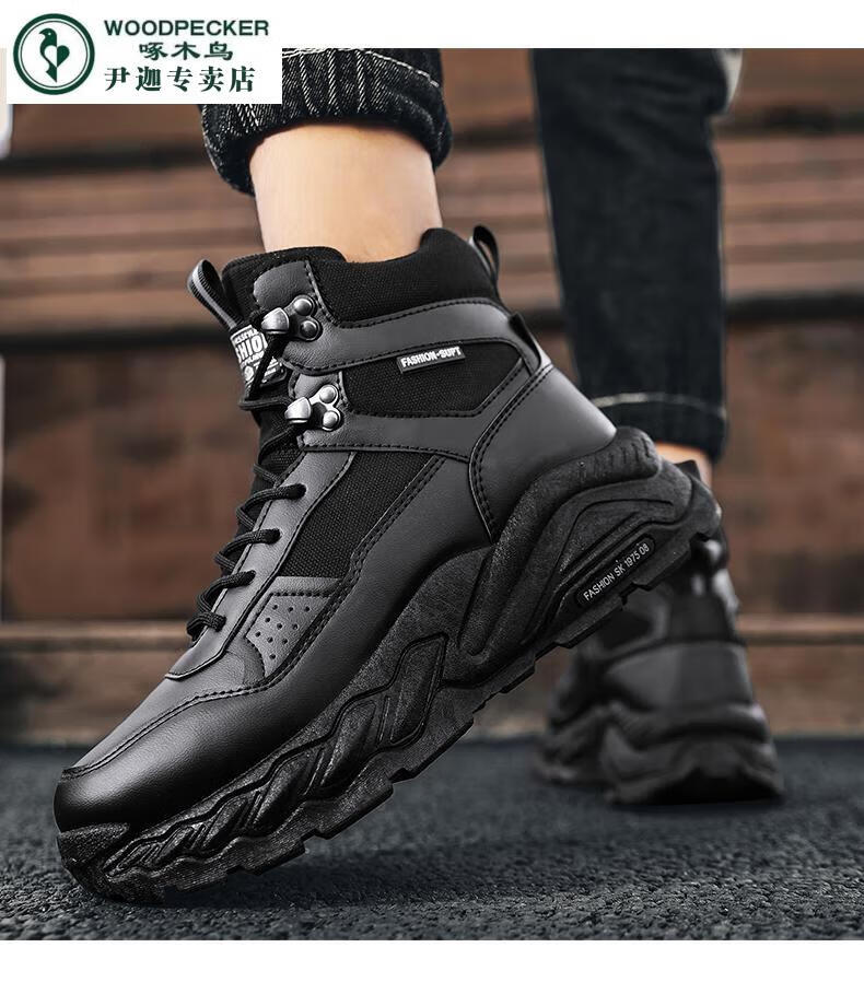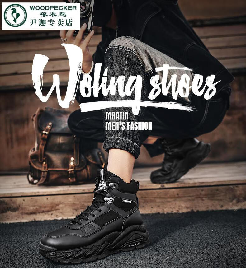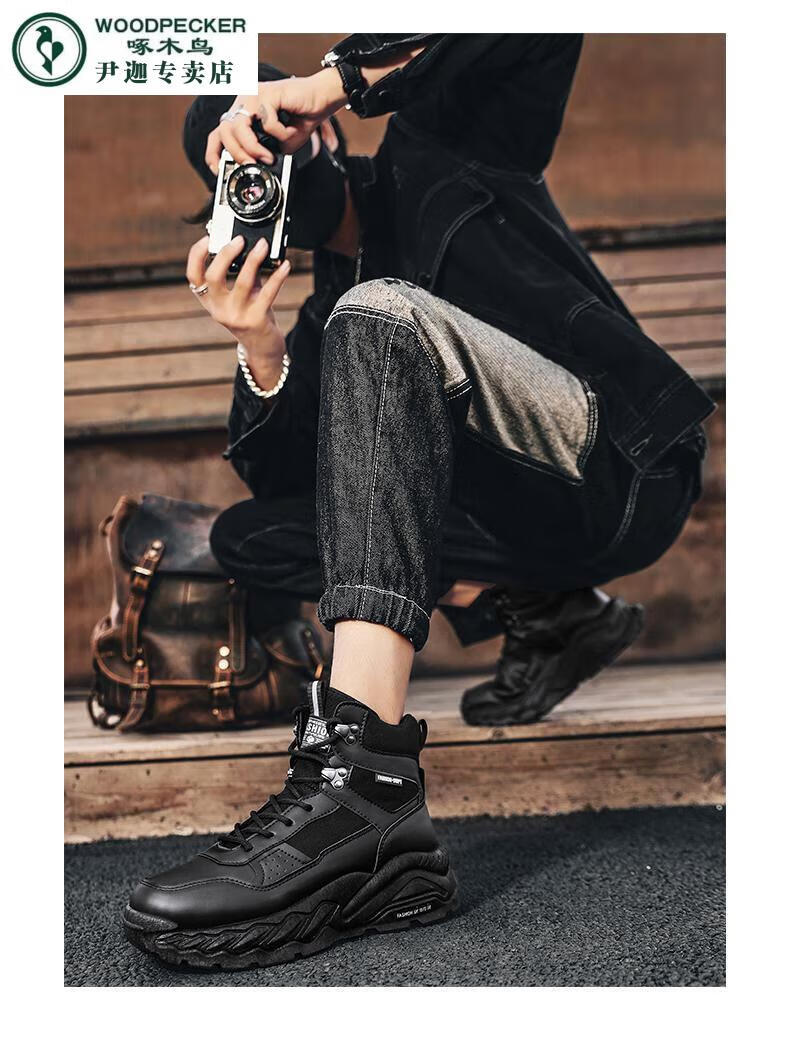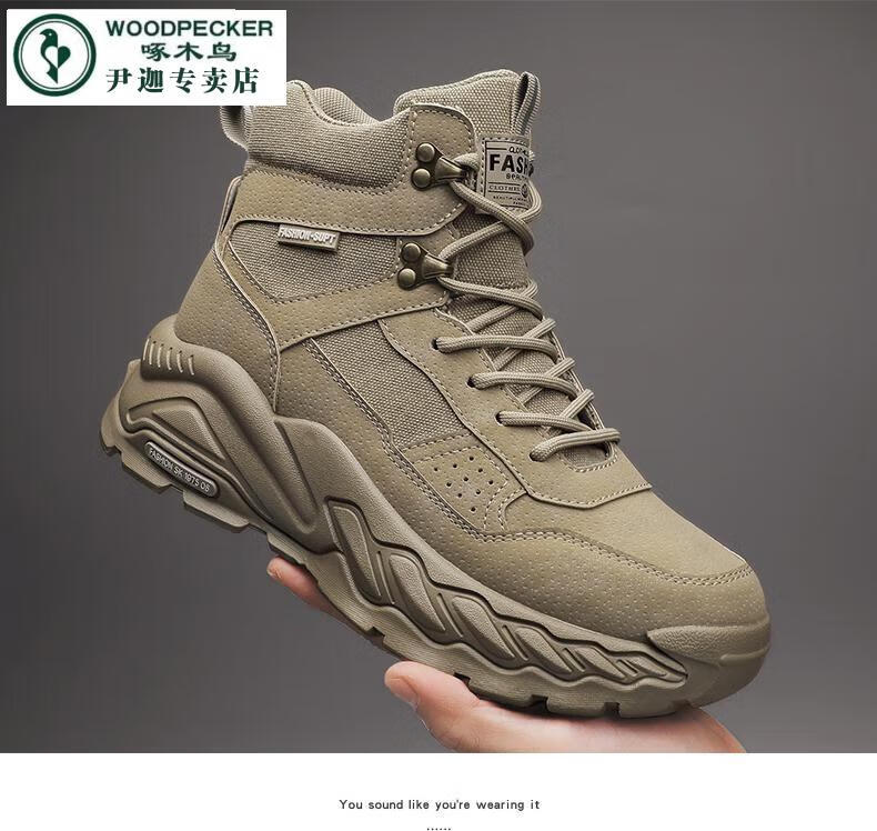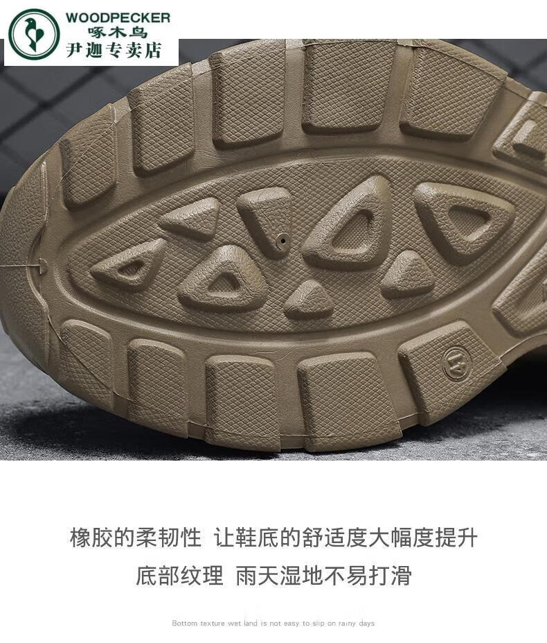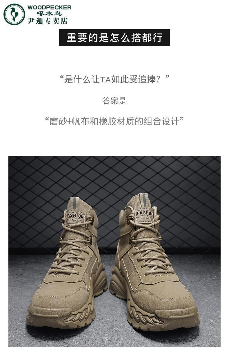 Woodpecker botas Martin de cuero genuino zapatos de hombre otoño desierto ropa de trabajo retro protección laboral montañismo al aire libre deportes botas de combate casuales Caqui 41