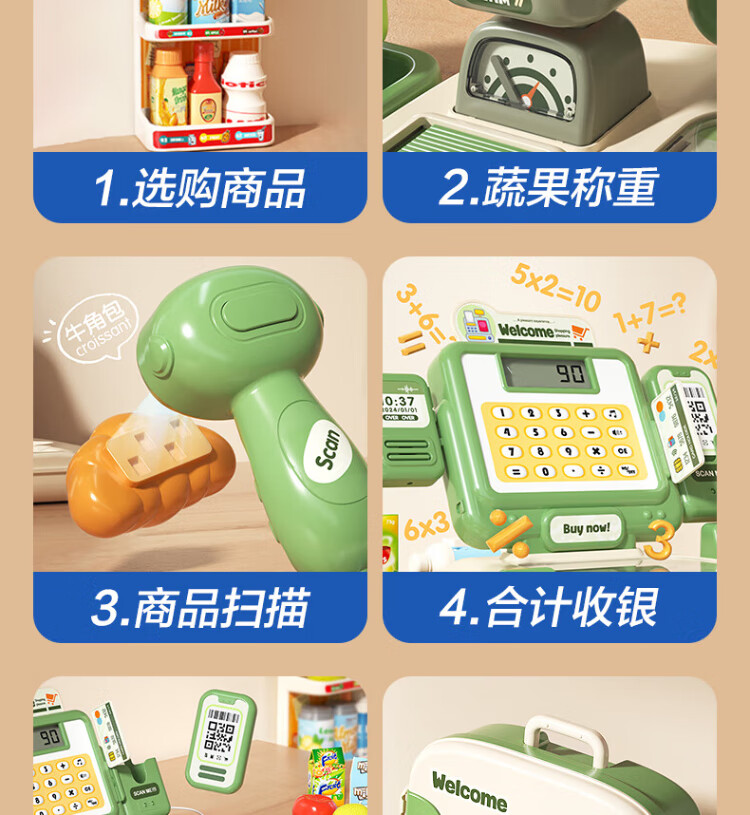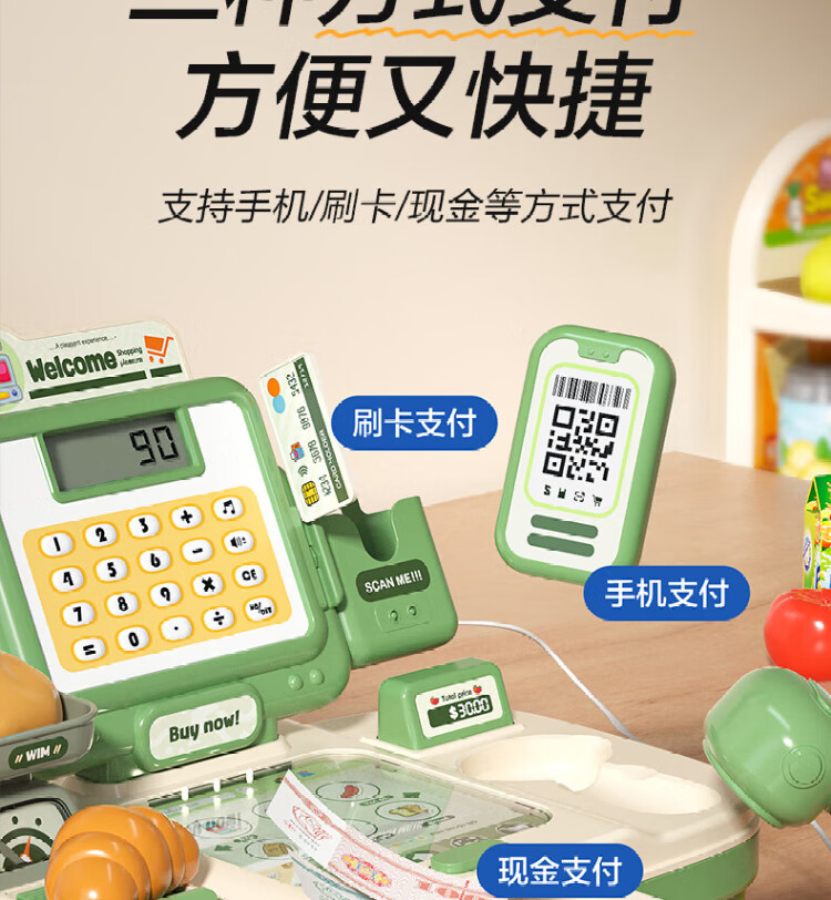 欣格儿童玩具女孩3-6-10岁女童过家家仿真超市收银机2-4-5岁生日礼物 粉64件套【可商品扫描+商品货架】+灯光音乐 【迪漫奇联合出品】两三四五六岁半小孩小朋友