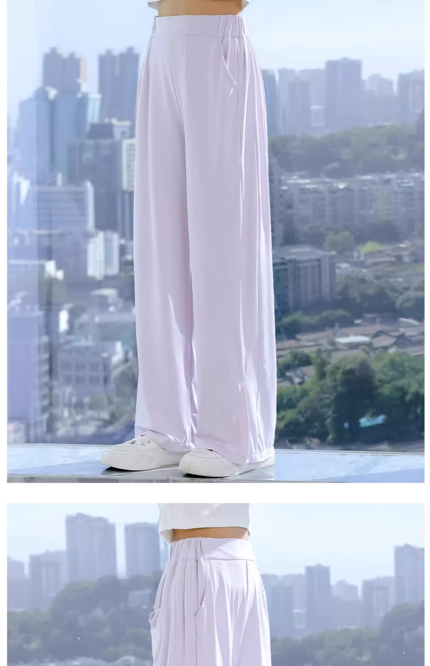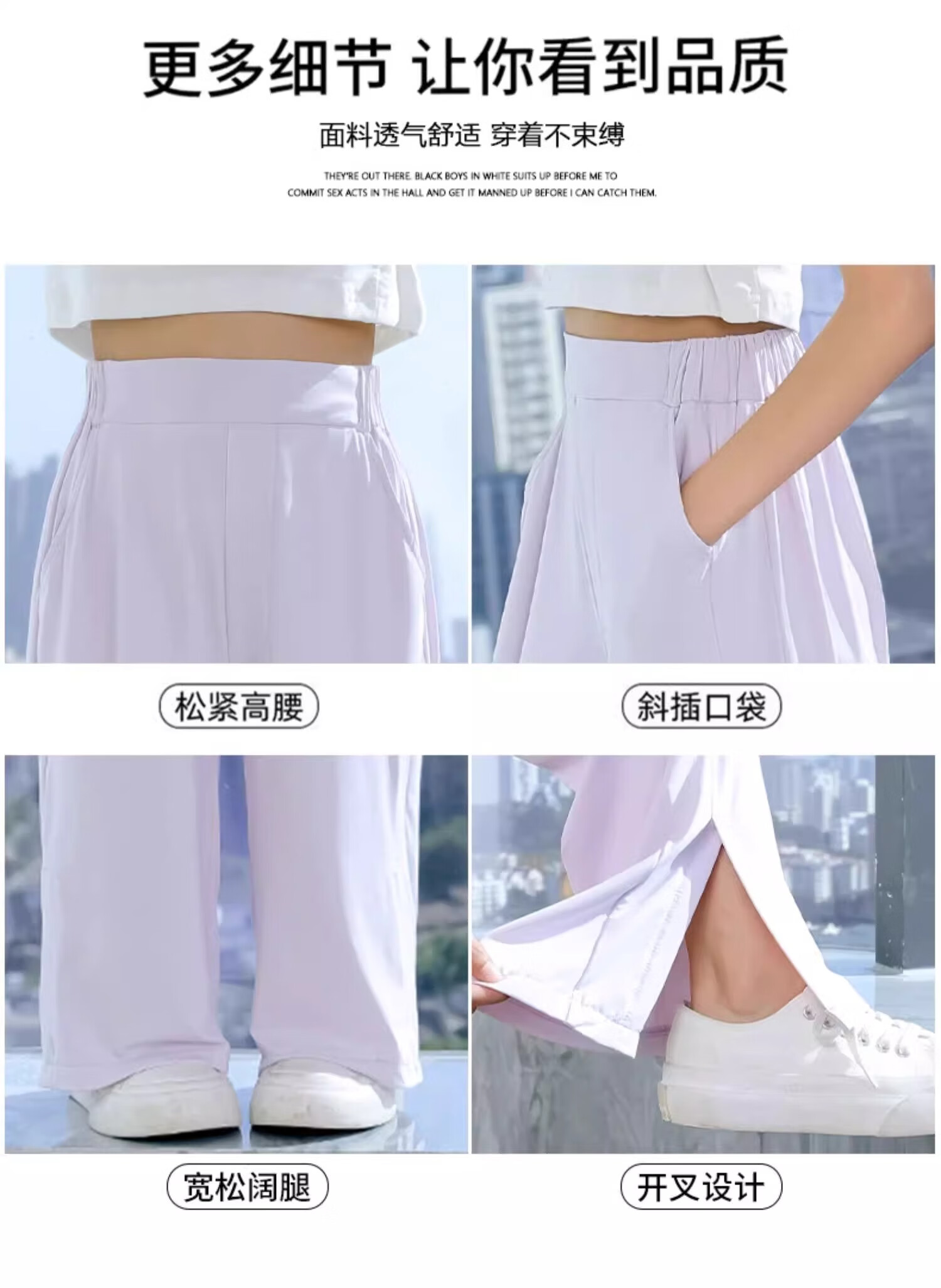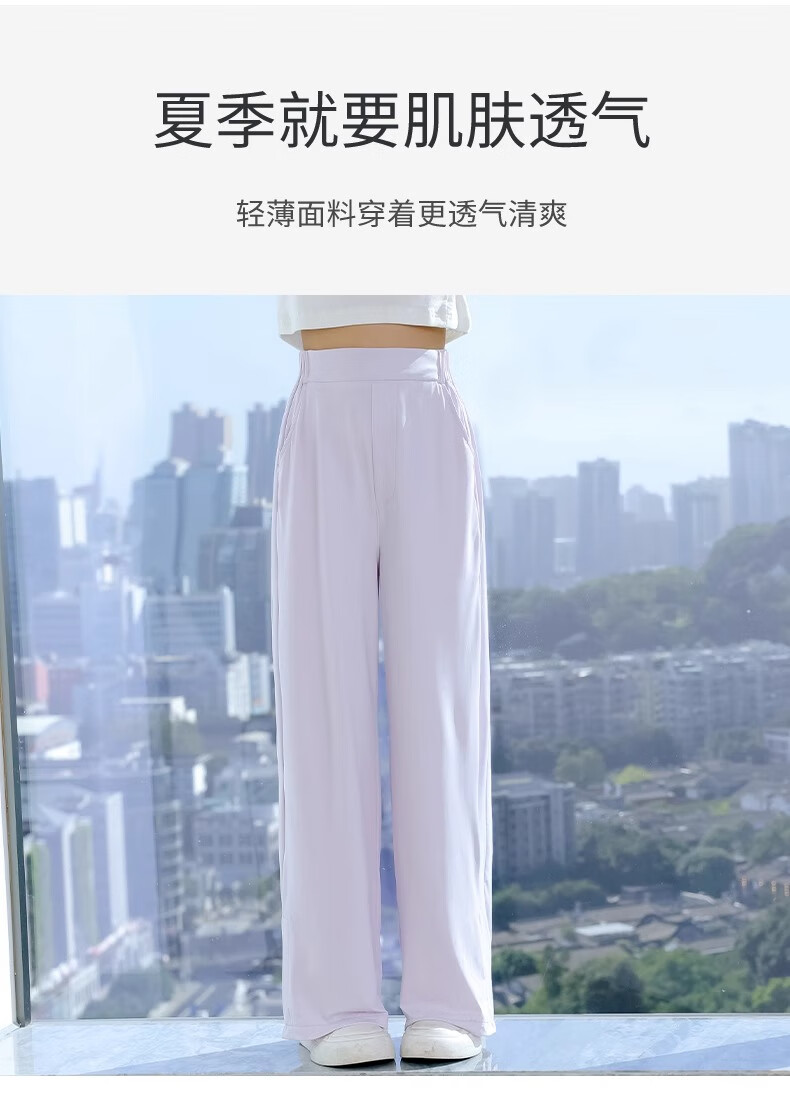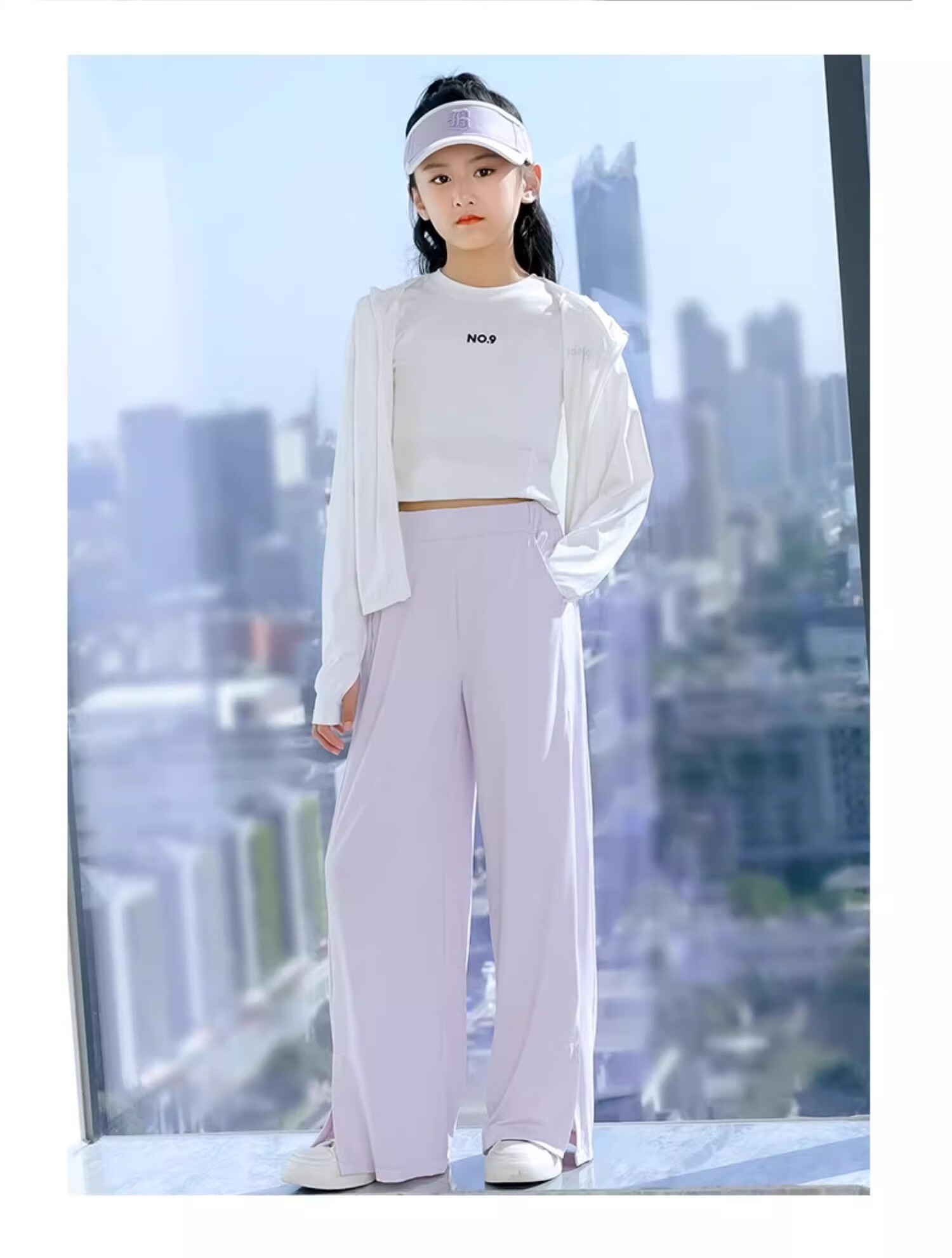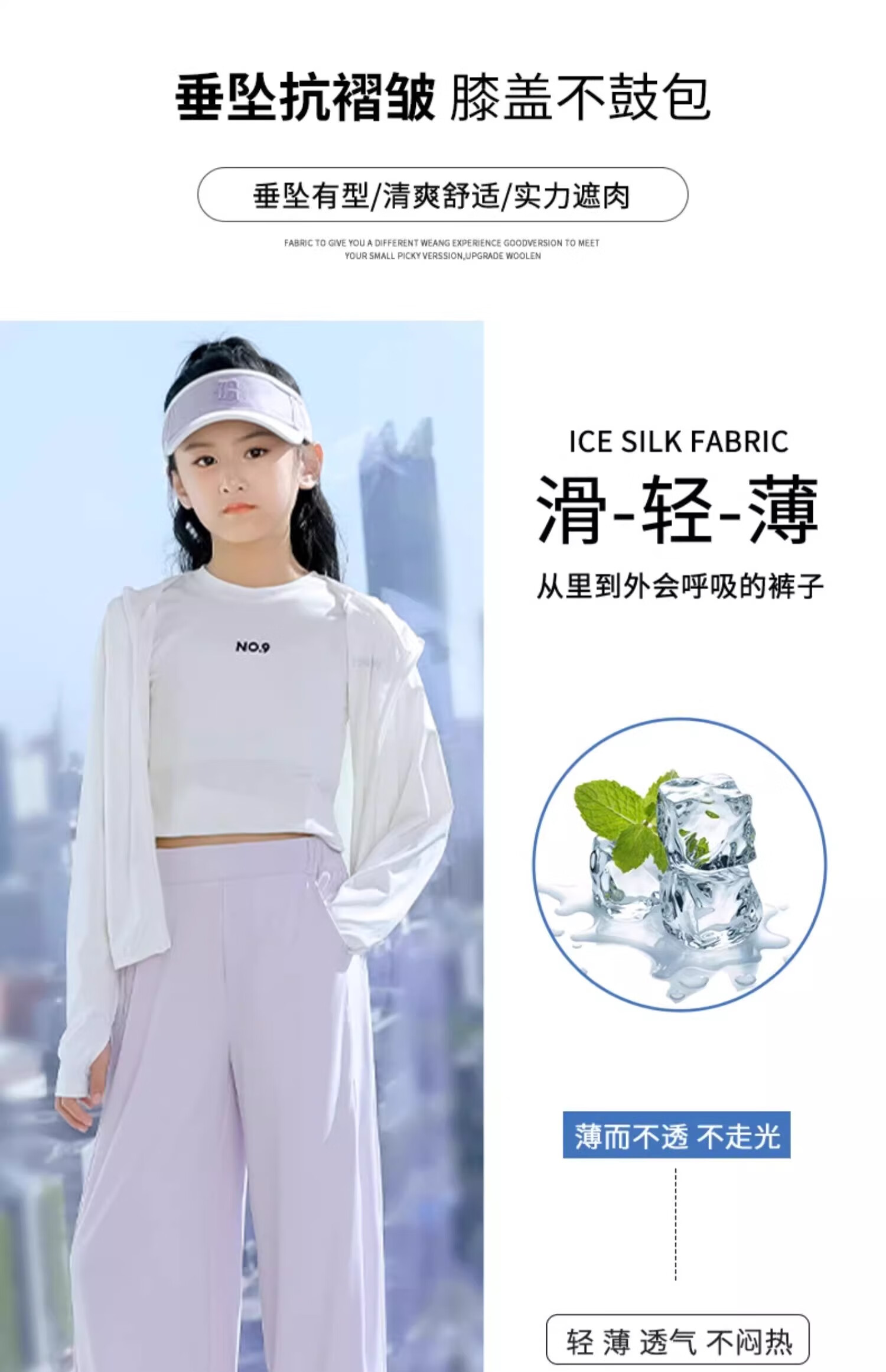艾卡诺 I.KARNOW女童裤子夏薄款儿童夏季新款冰丝防晒裤女孩夏装防蚊阔腿裤中大童 15092紫色+9889白色 130