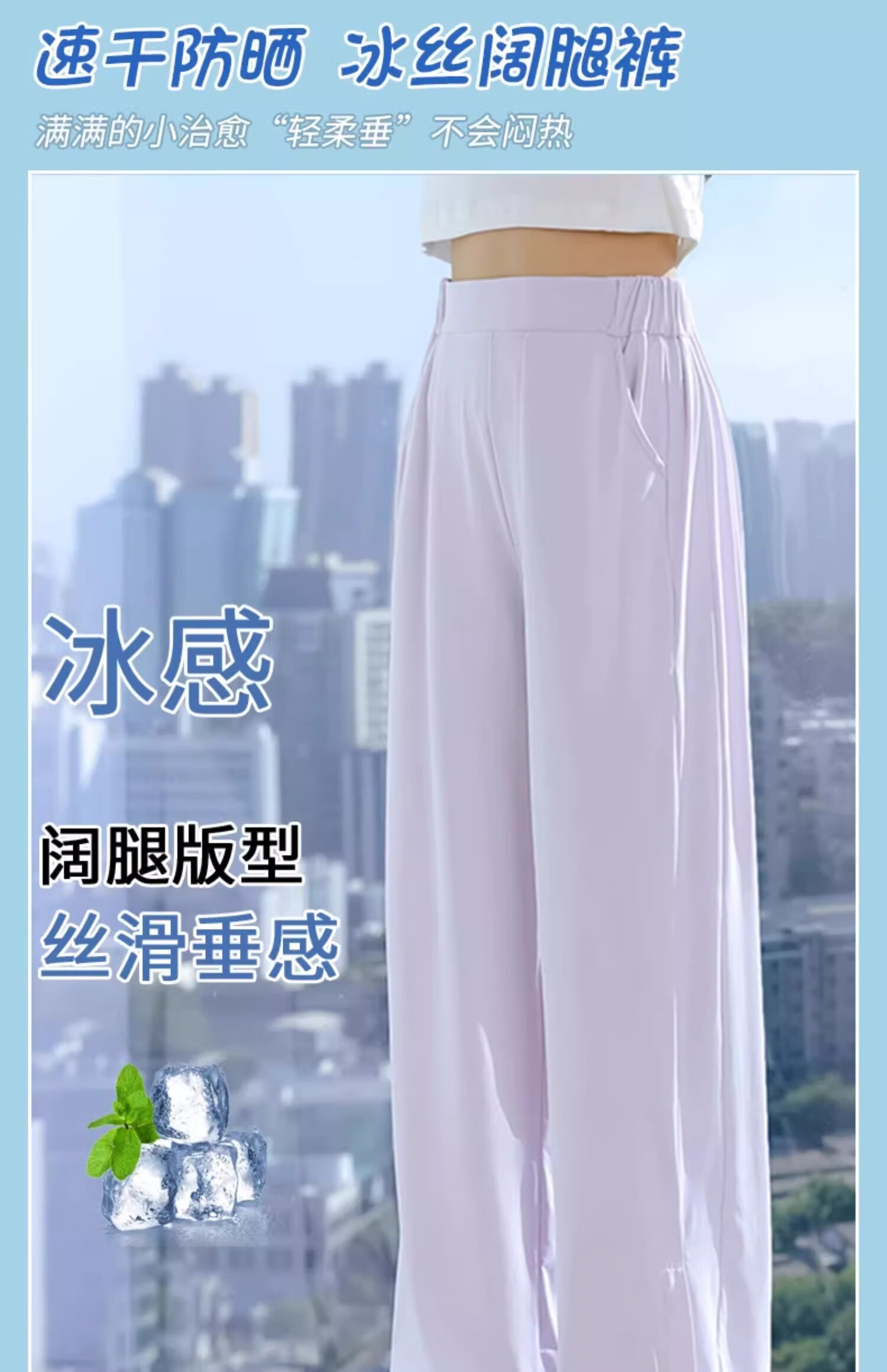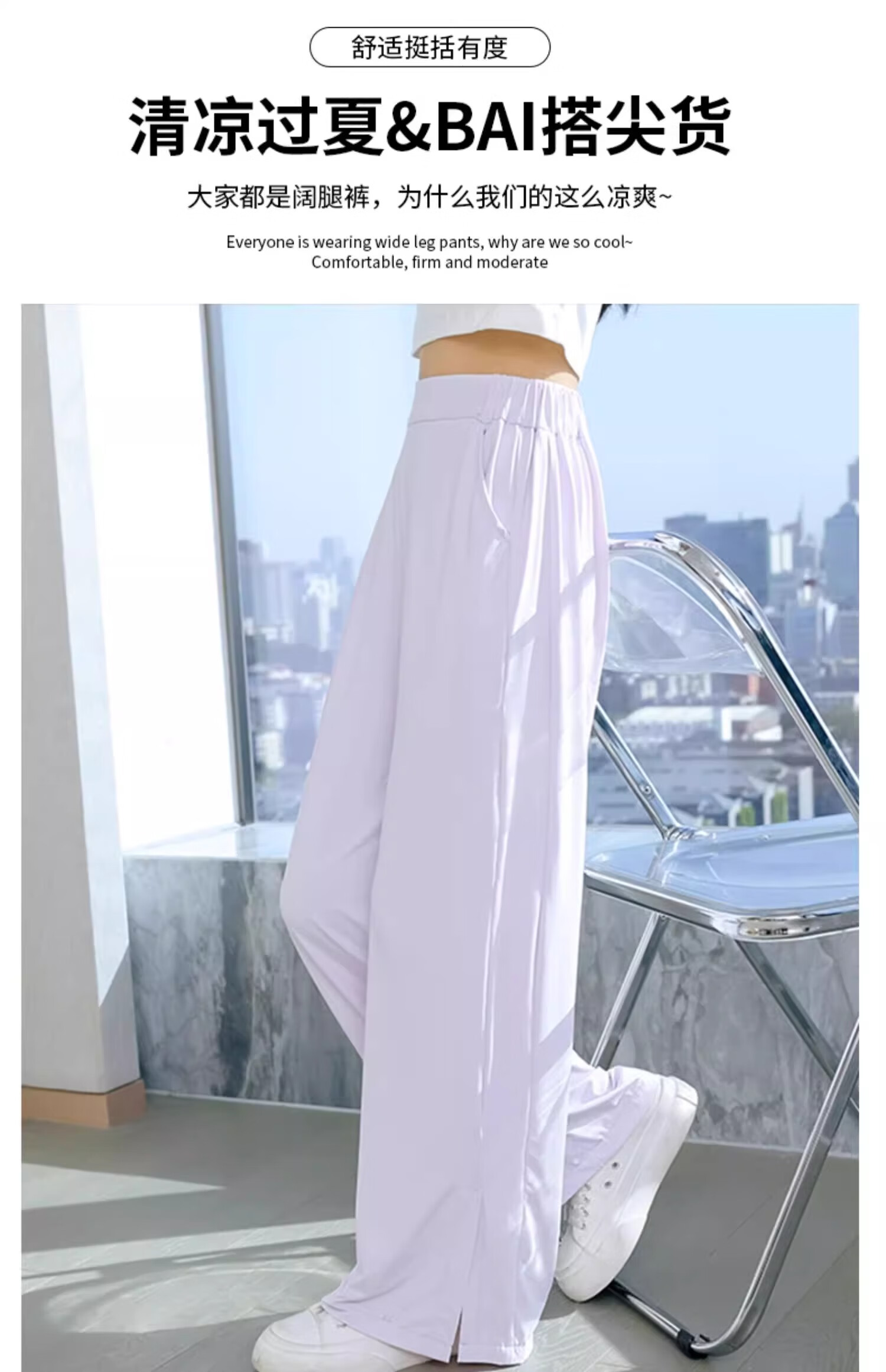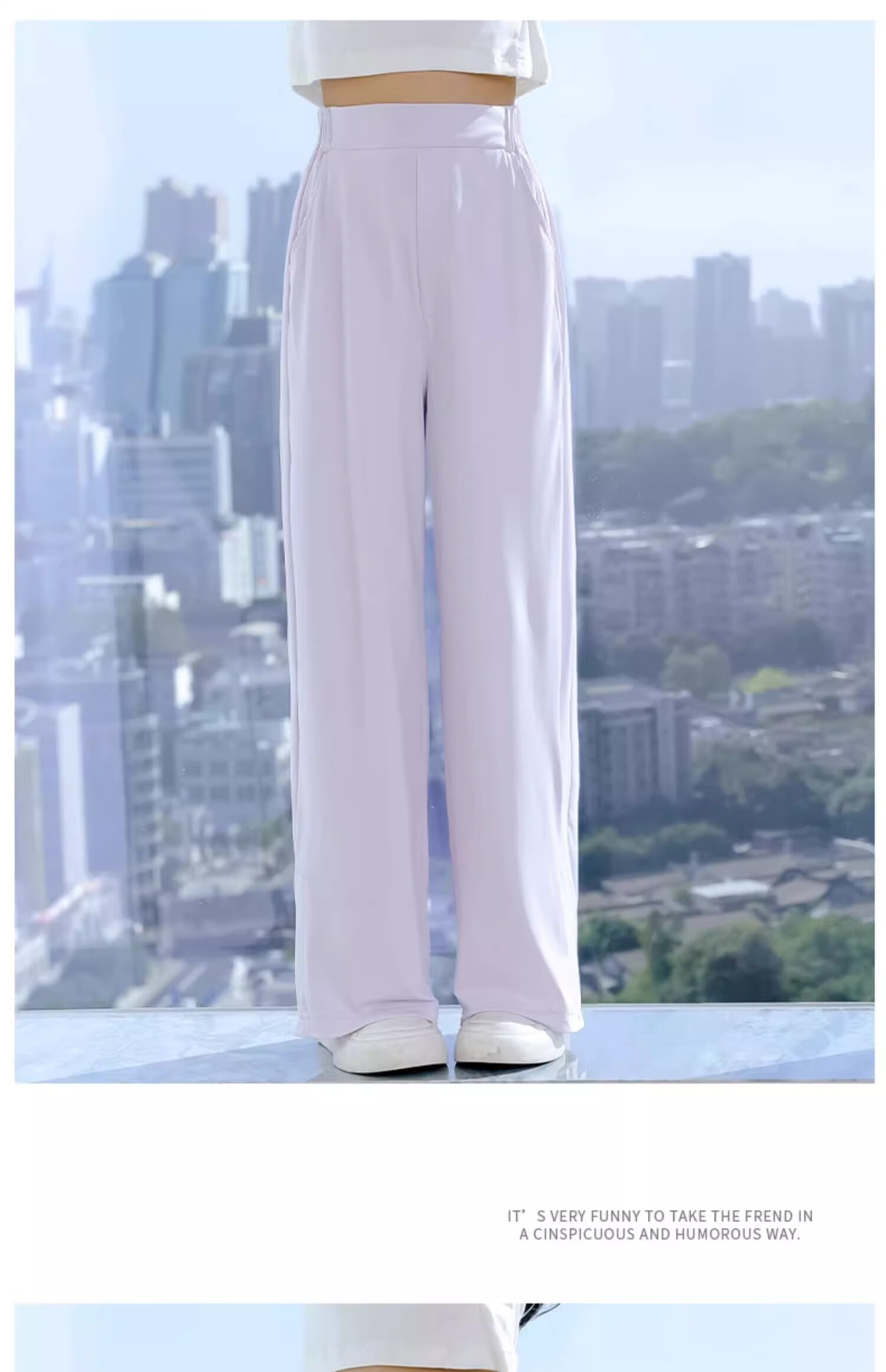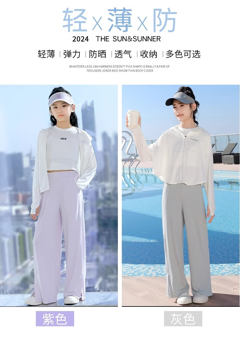 艾卡诺 I.KARNOW女童裤子夏薄款儿童夏季新款冰丝防晒裤女孩夏装防蚊阔腿裤中大童 15092紫色+9889白色 130
