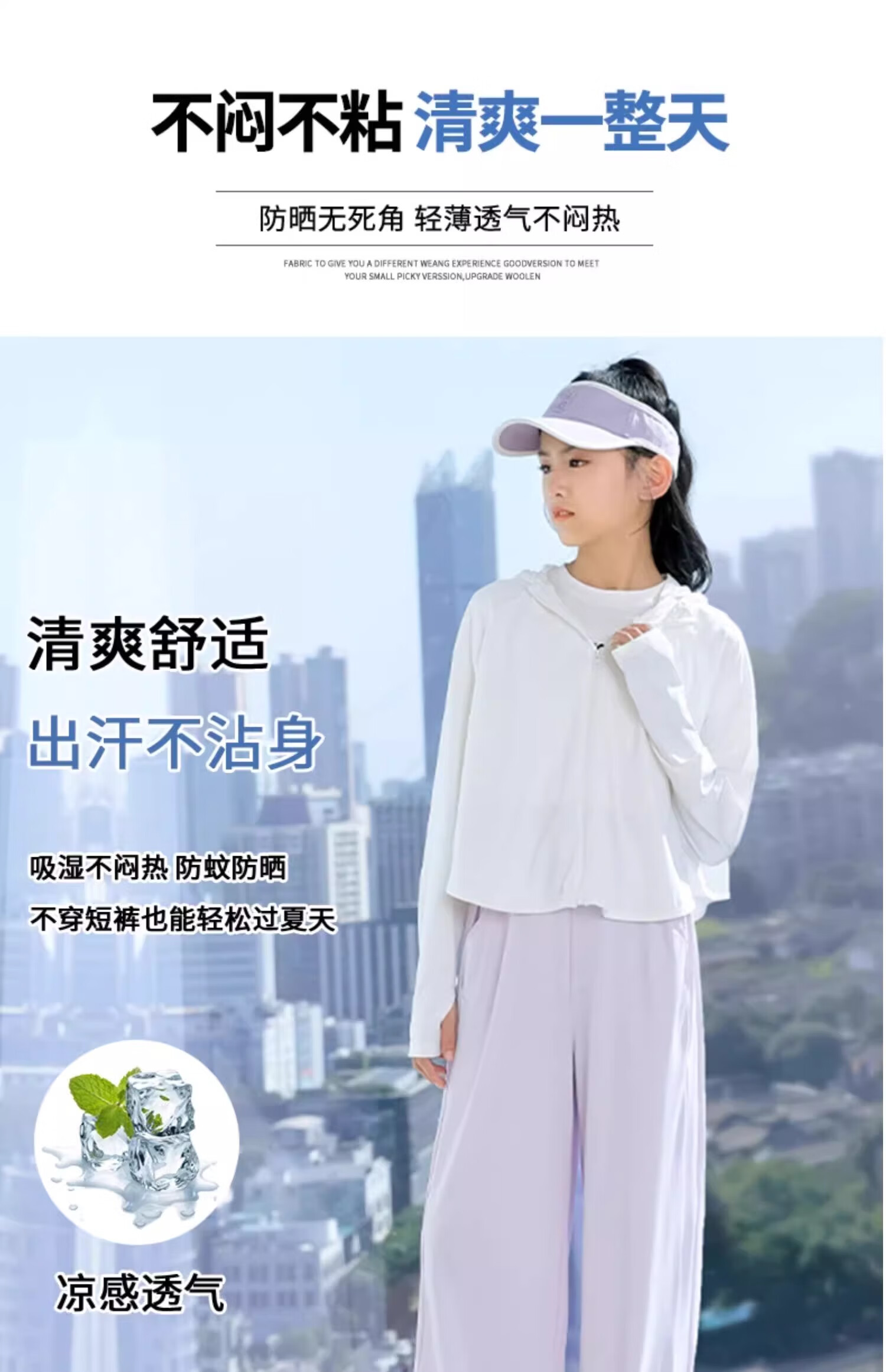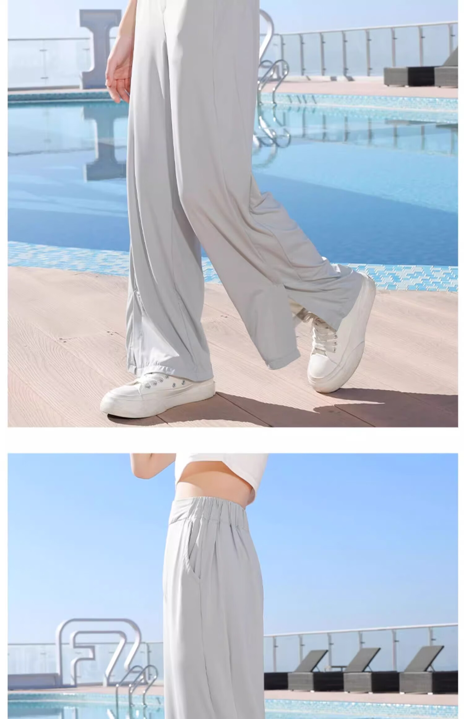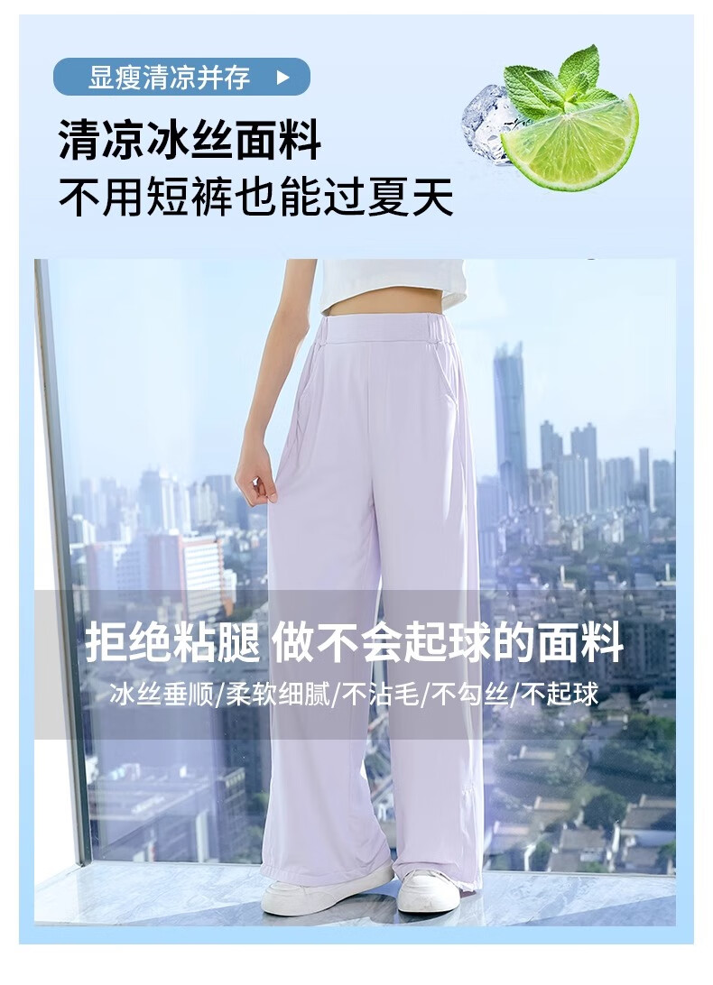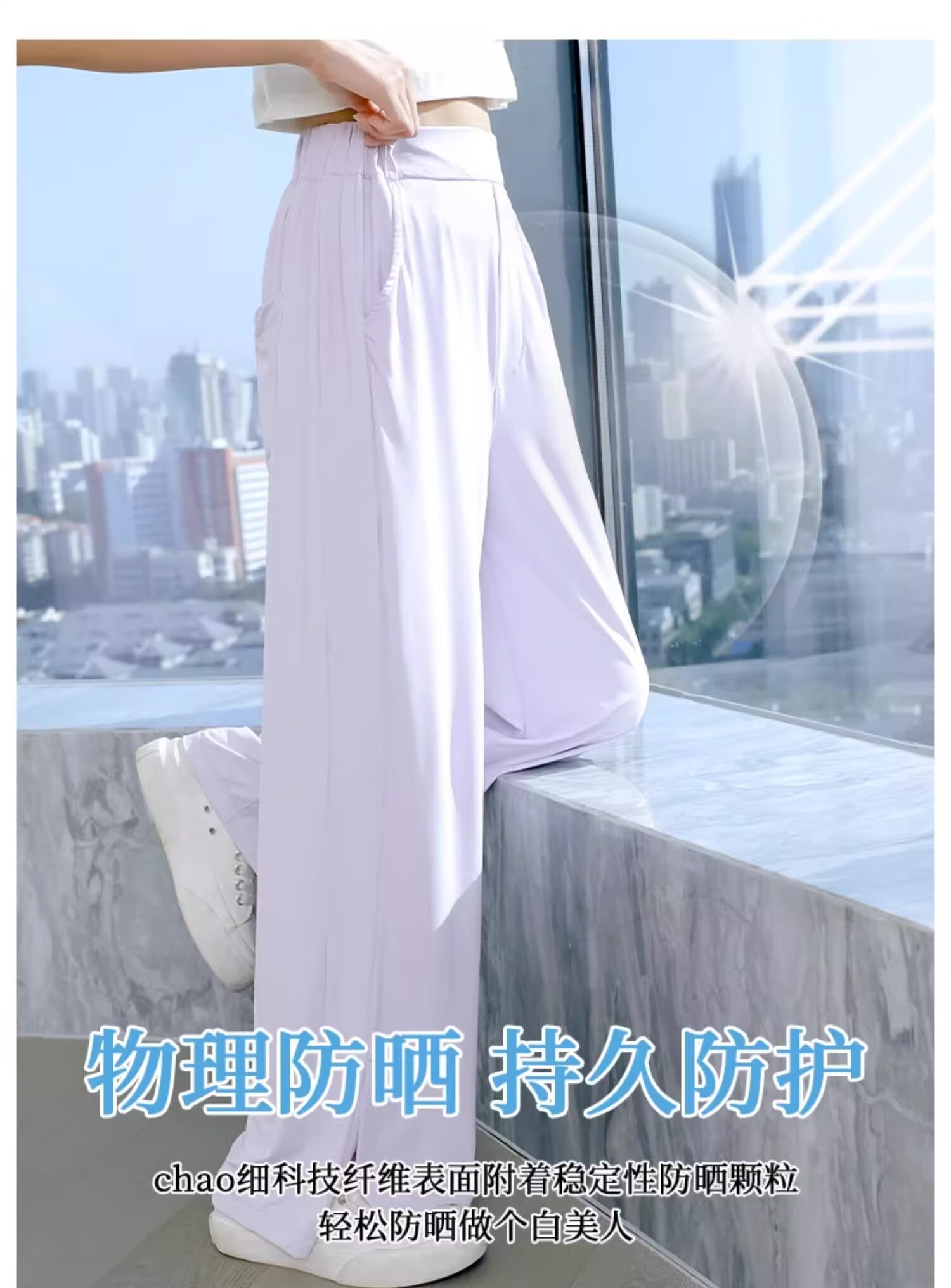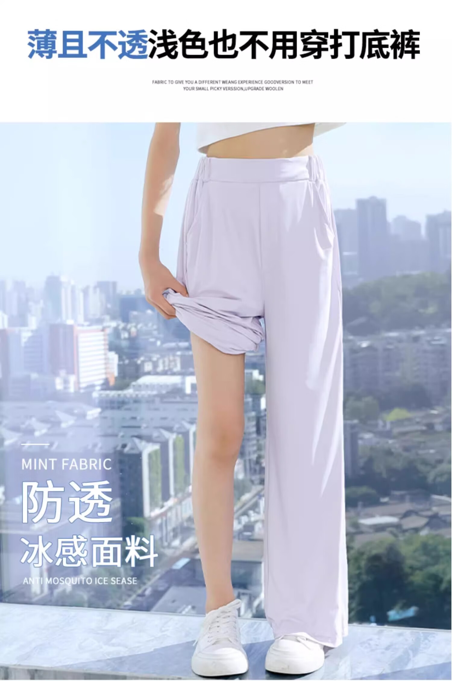 艾卡诺 I.KARNOW女童裤子夏薄款儿童夏季新款冰丝防晒裤女孩夏装防蚊阔腿裤中大童 15092紫色+9889白色 130