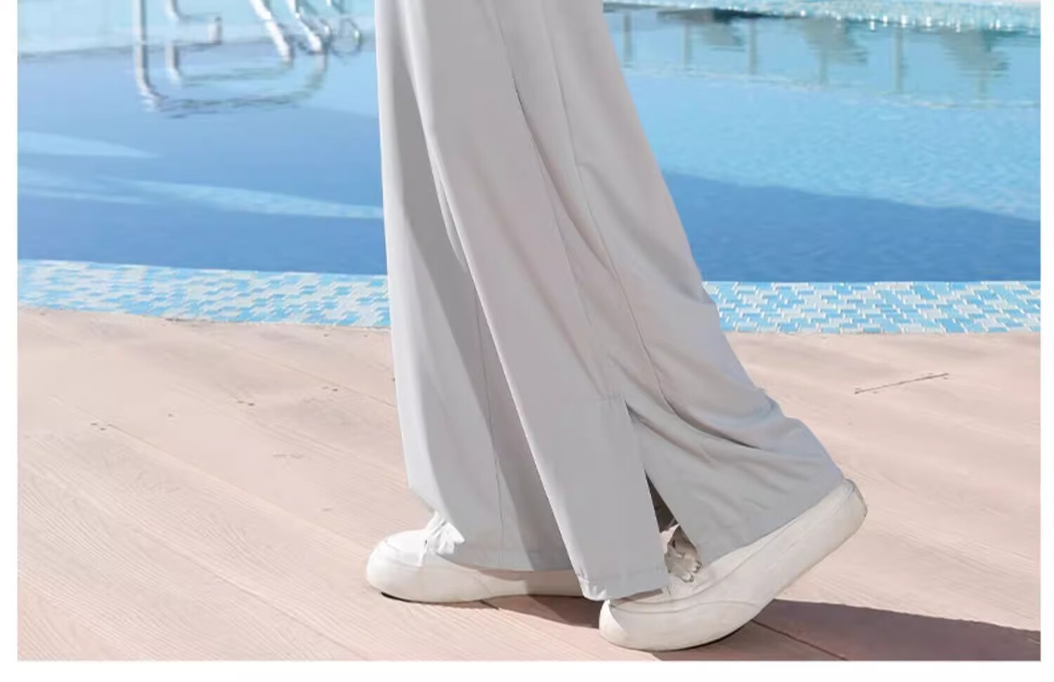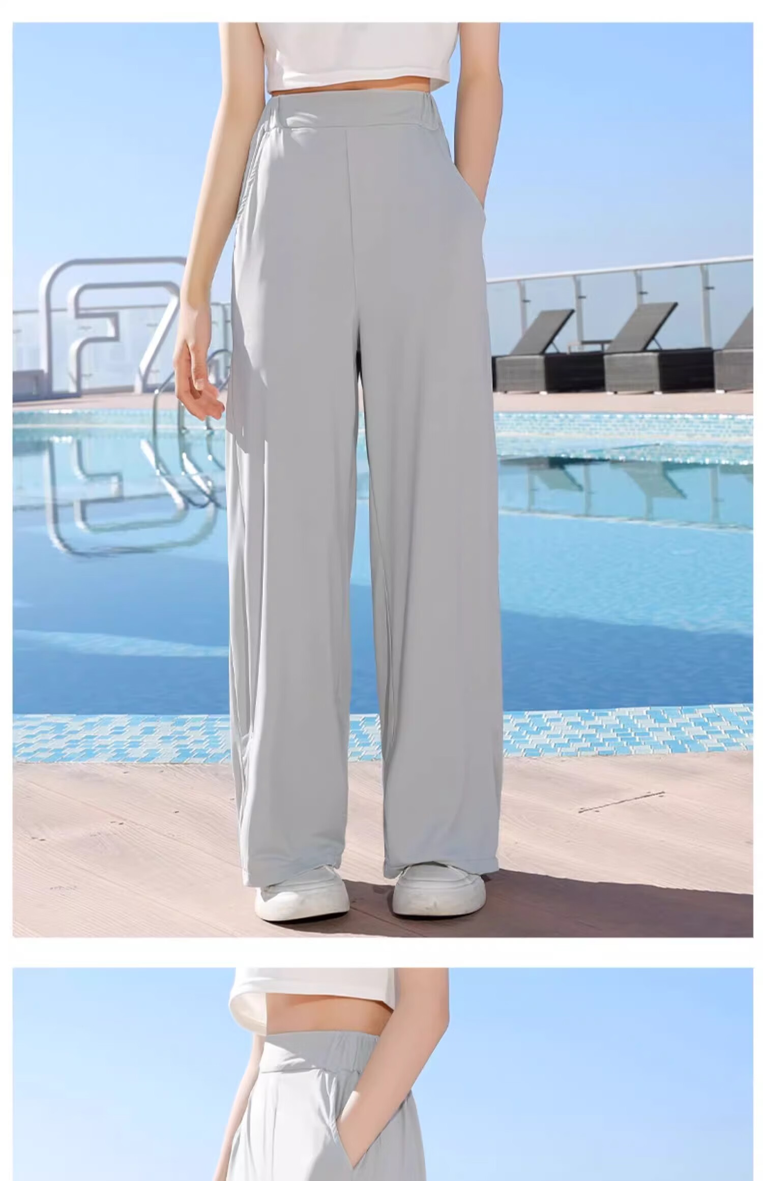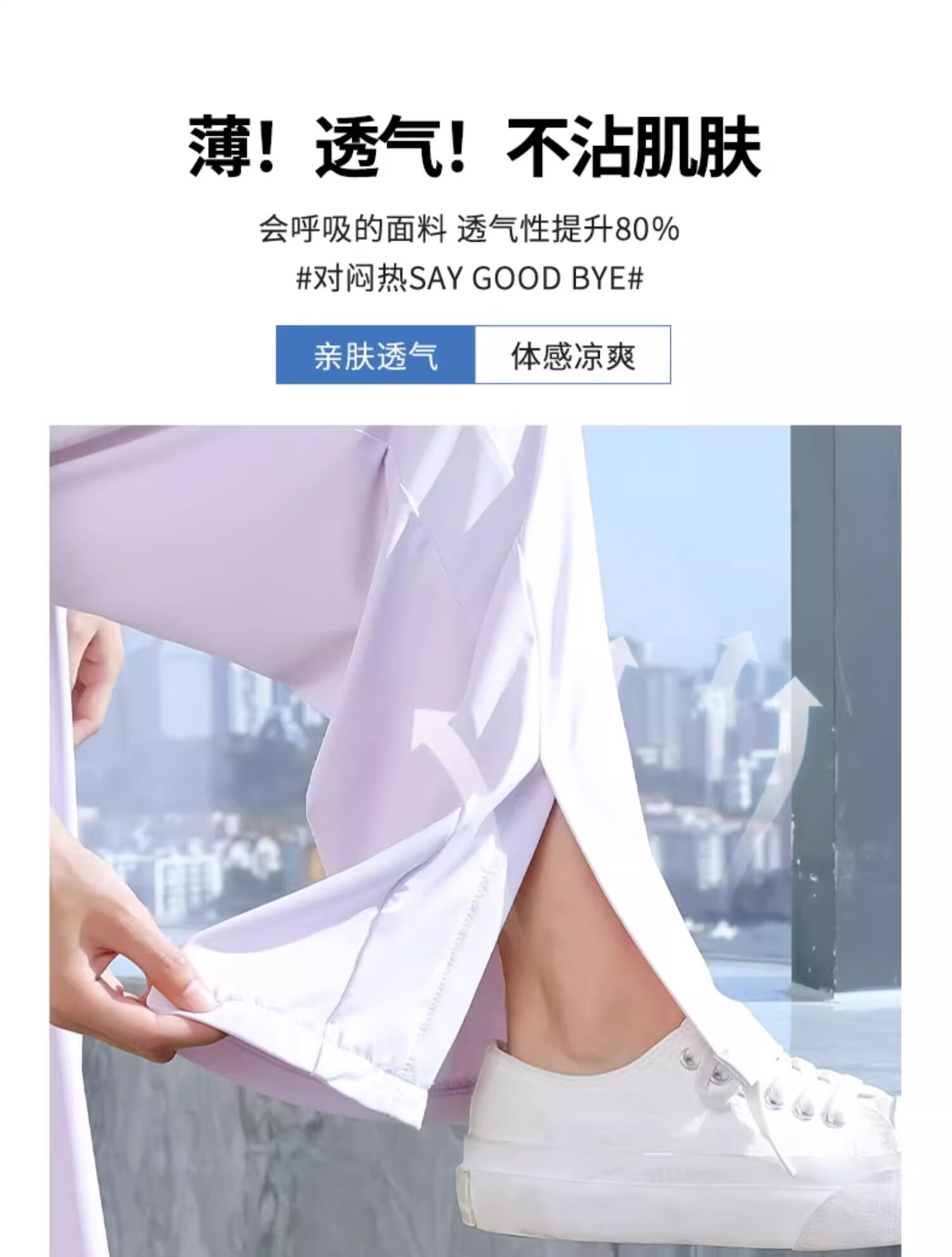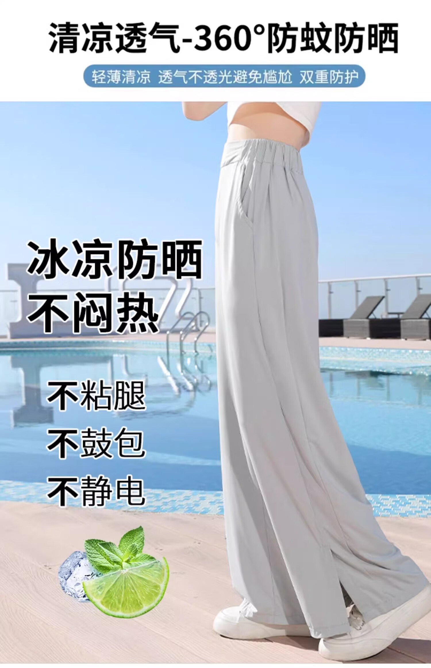 艾卡诺 I.KARNOW女童裤子夏薄款儿童夏季新款冰丝防晒裤女孩夏装防蚊阔腿裤中大童 15092紫色+9889白色 130
