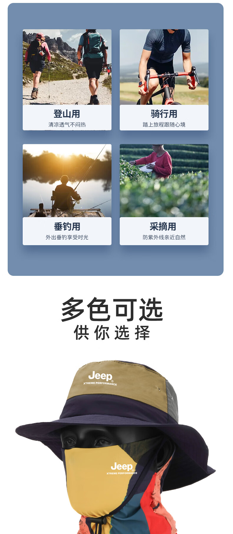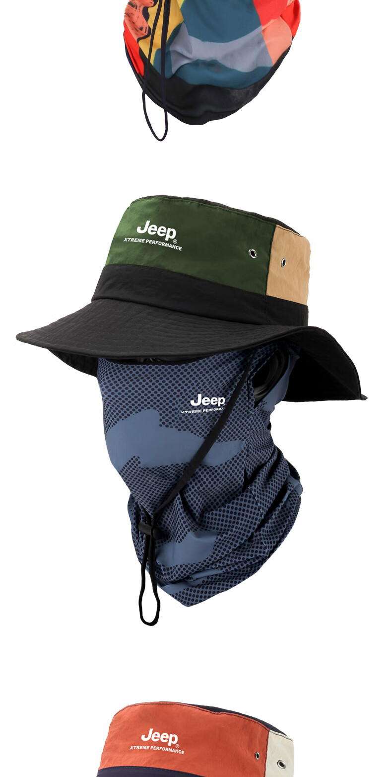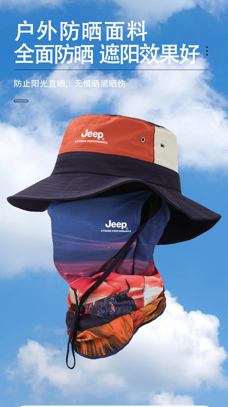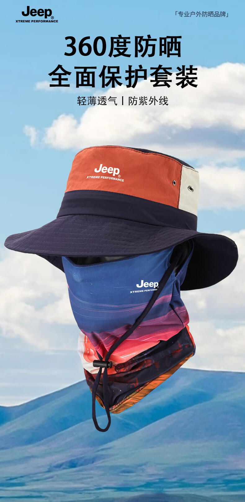 JEEP Jeep Sonnenhut Herren Sommer Sonnenschutzmaske Herrenhut Outdoor Sonnenschutzhut Herren Fischerhut Fischerhut Rotes Oberteil Dreiteiliges Set Hut + Maske + Handärmel