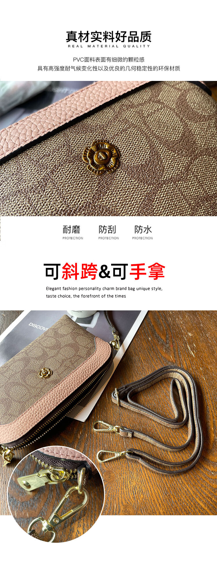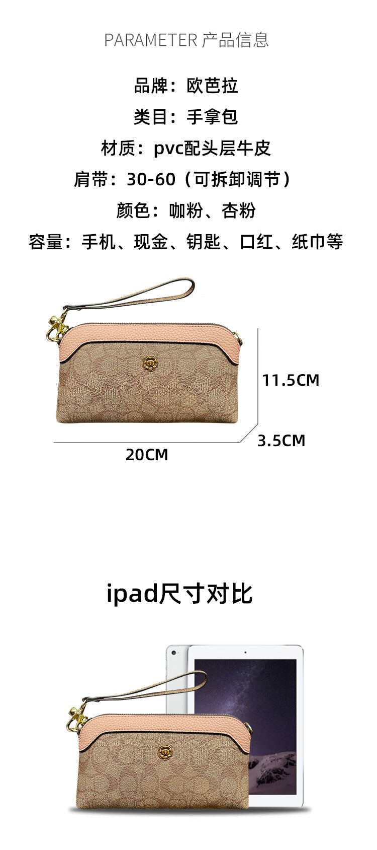 啄木鸟(TUCANO)女手包2024新款小包手拿包春夏零钱包可放手机手抓包气质时尚高端 咖粉【手拿版】