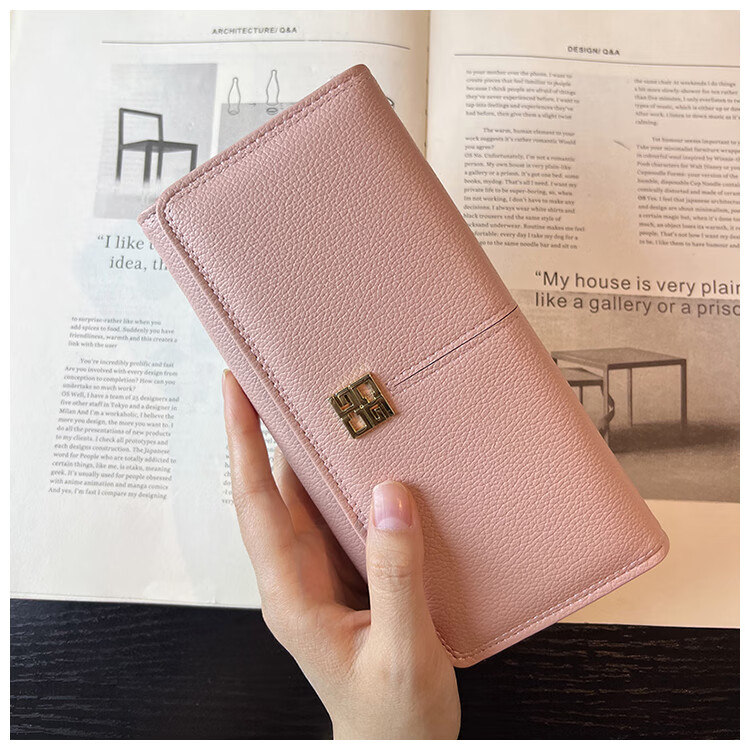 Woodpecker (TUCANO) Women's Hand Wallet Women's Long Simple Mobile Phone Bag Internet Celebrity Fashion Soft Leather Litchi Pattern Large Capacity Wallet Pink