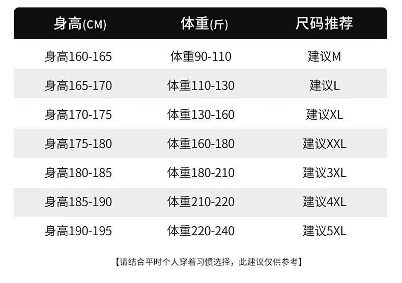 China (cm) 160-165/84-86 165-170 / 88-90 167-172 / 92-96 168-173 / 98-102 170-176 / 106-110