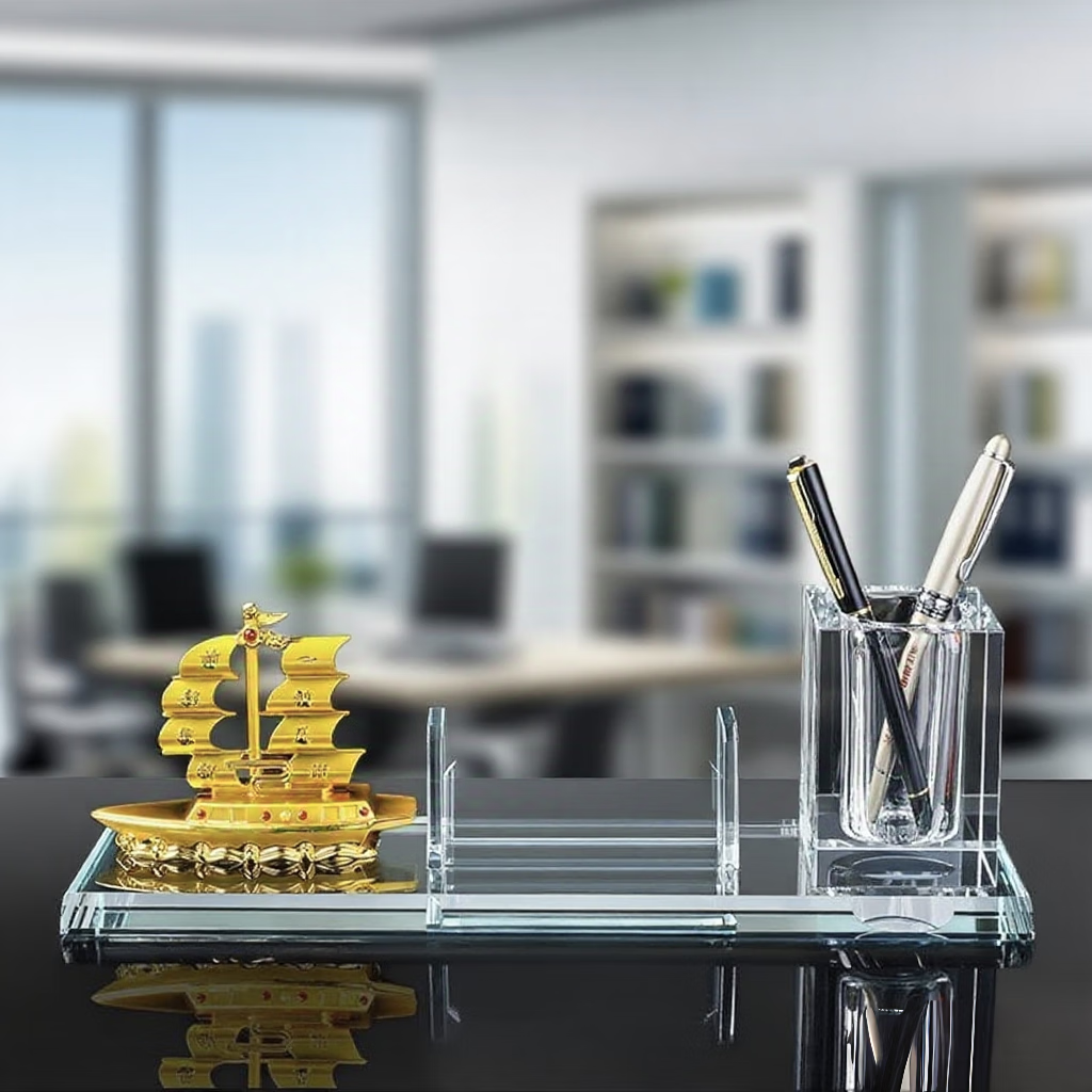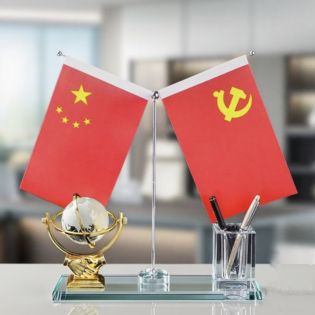 Dingyi desk ornaments, high-end pen holder, red flag and national flag ornaments, creative gifts, customized gifts, boss opening souvenir, smooth sailing + pen holder + flag - simple style