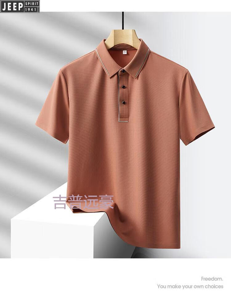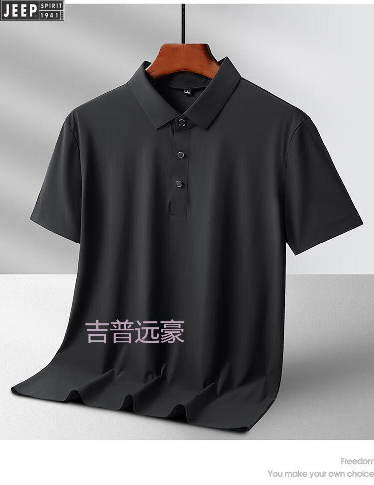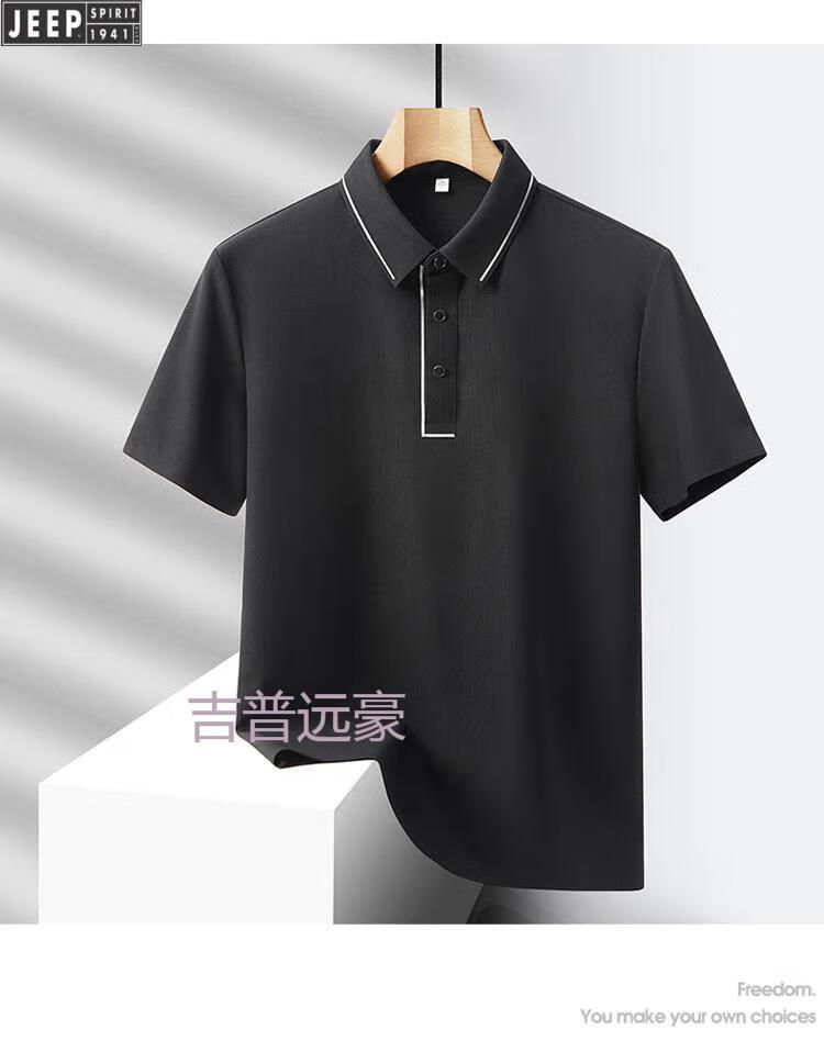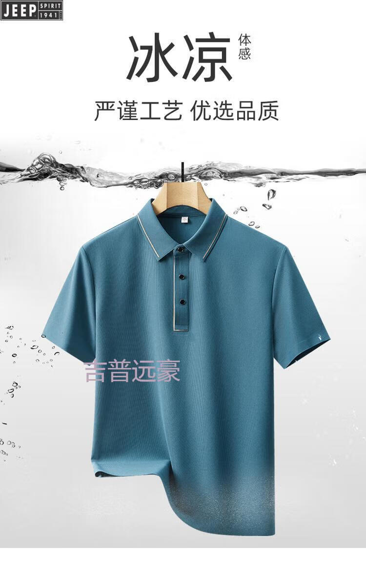 JEEP SPIRIT Sommer-Sportanzug für Herren aus Eisseide, neues Revers-T-Shirt, Poloshirt, lässig, kurzärmelig, Sommerkleidung für Väter mittleren und älteren Alters, 6630-08 Ulan + schwarze Shorts (zweiteiliges Set) 4XL