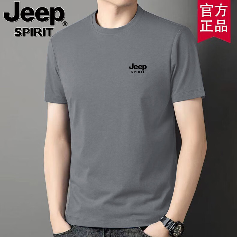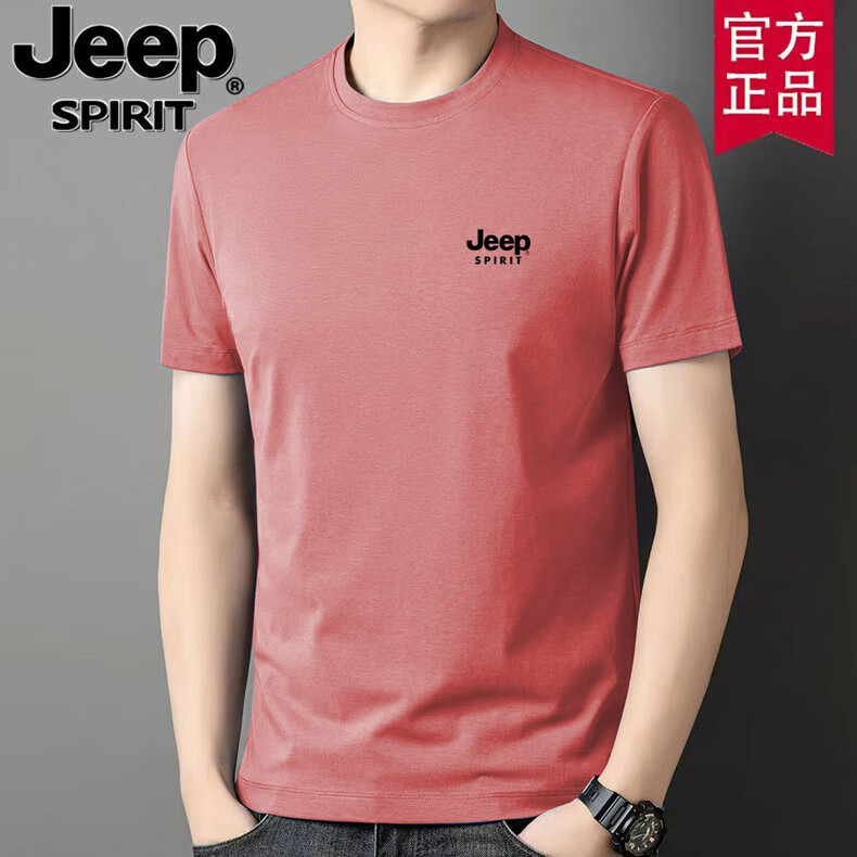JEEP时尚纯棉短袖T恤男半袖服夏季新款体恤衫纯色圆领百搭上衣打底衫 卡其短袖 XL (建议125-135斤)