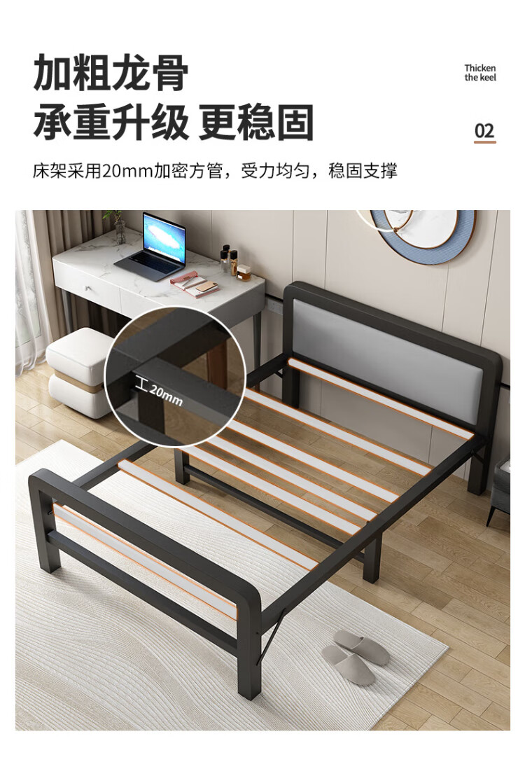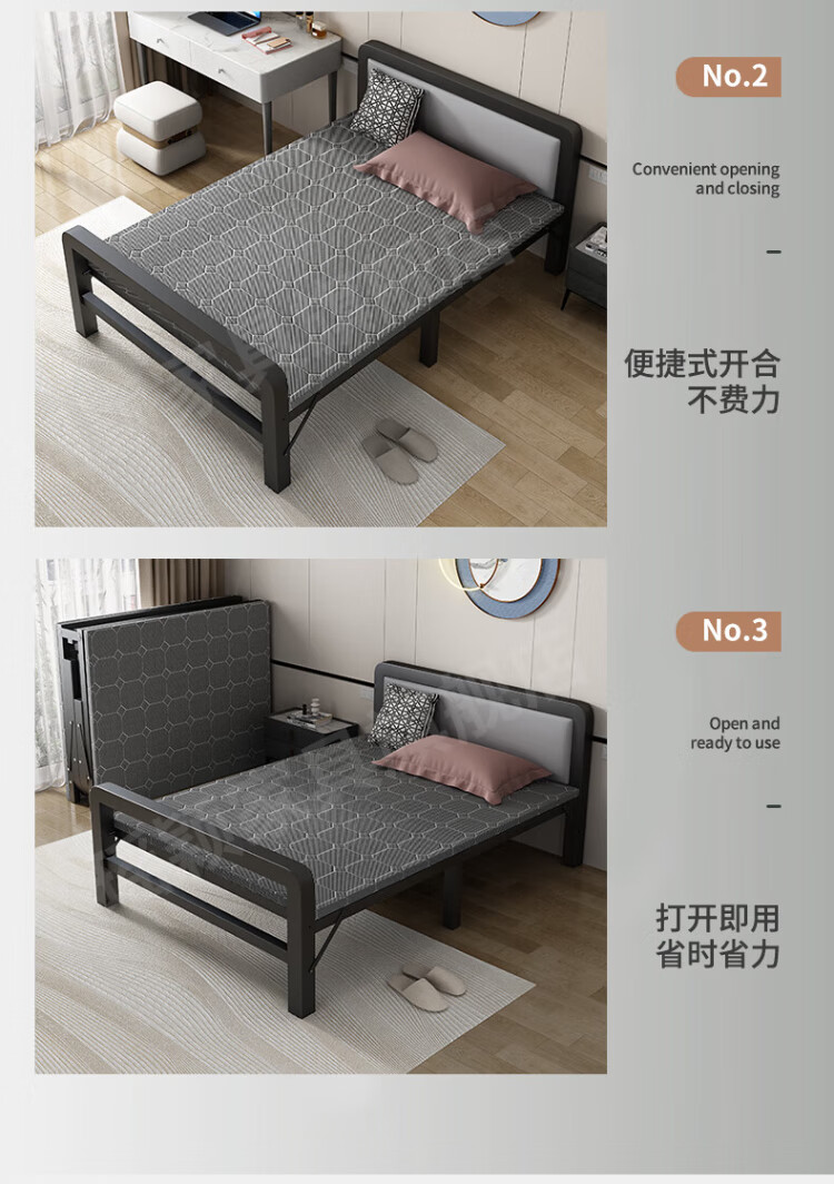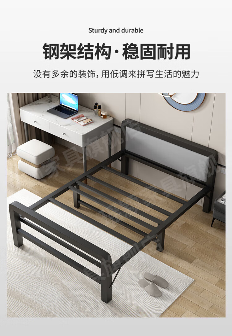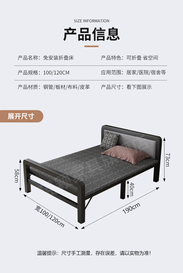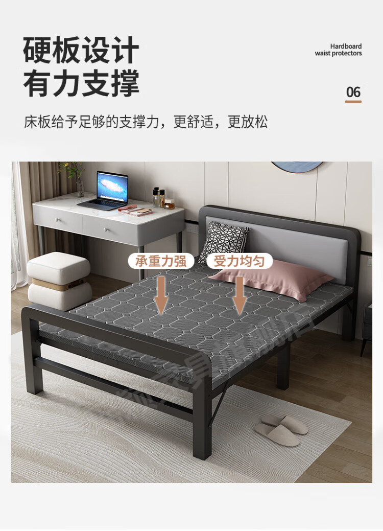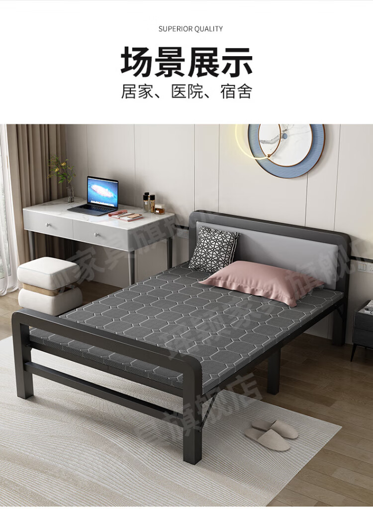 瑶颖(免安装)折叠床单人床家用午休床办公室午睡床陪护床硬板床铁床  100cm宽【软包双折+加粗框架】