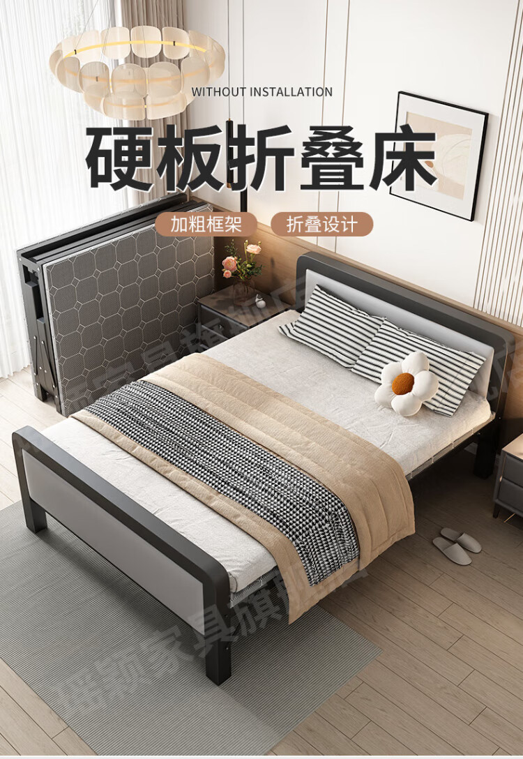 瑶颖(免安装)折叠床单人床家用午休床办公室午睡床陪护床硬板床铁床 100cm宽【软包双折+加粗框架】
