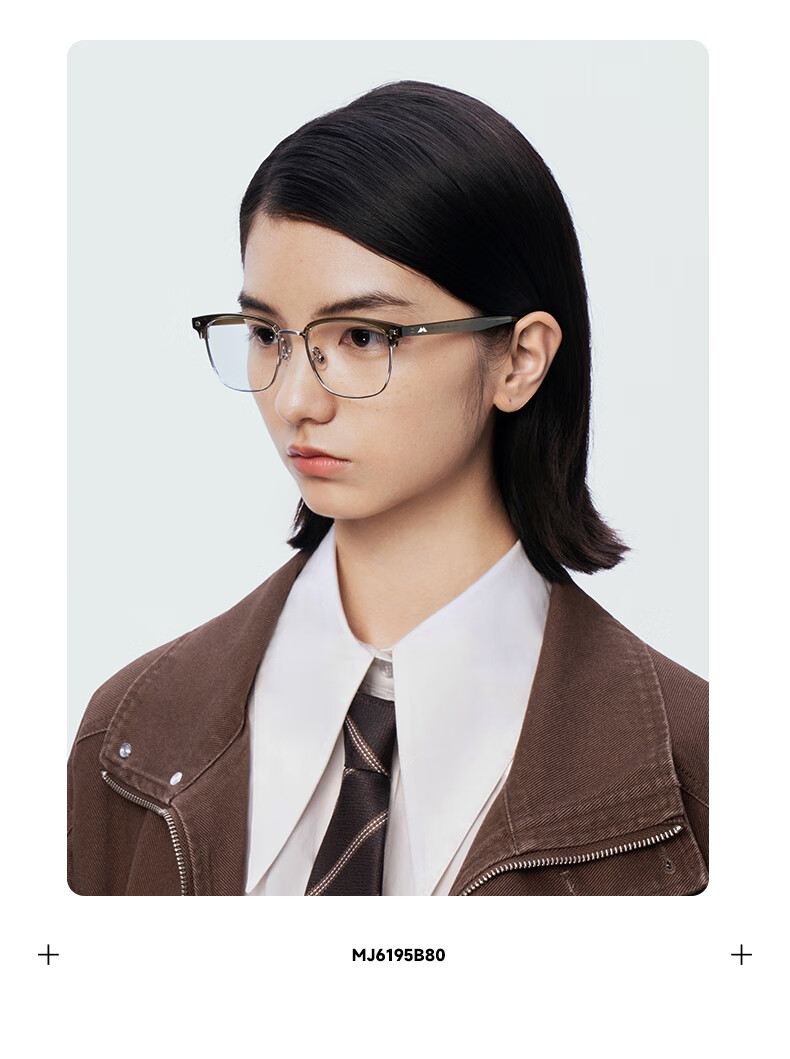 MOLSION陌森眼镜框架肖战同款眉架钛眼镜男女配度数防蓝光MJ6195 U80 银|透橄榄绿 #升级钛框# 镜框+0元配0度防蓝光镜片