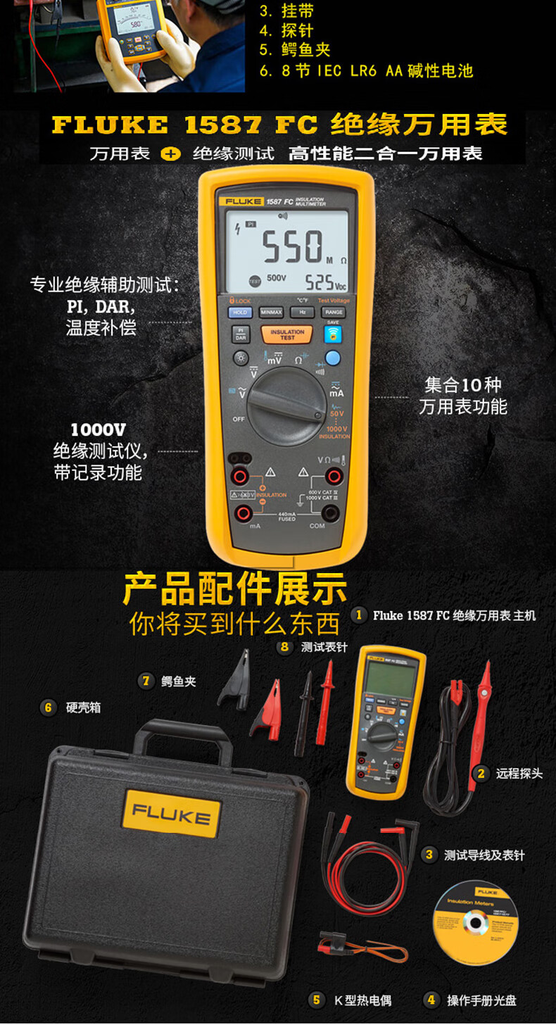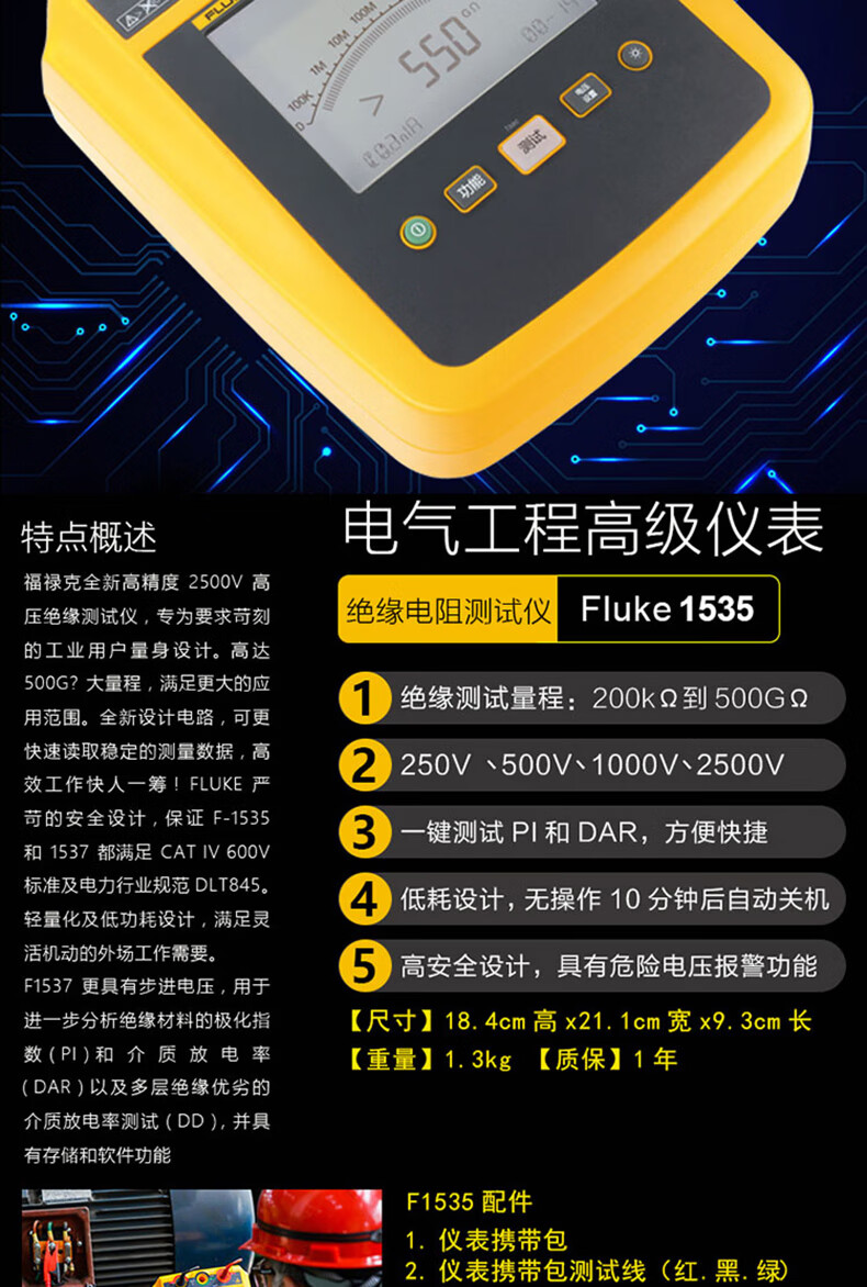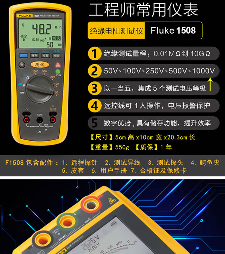 仁聚益定制F1508绝缘电阻测试仪1503兆欧表1535数字摇表1587FC Fluke 1503
