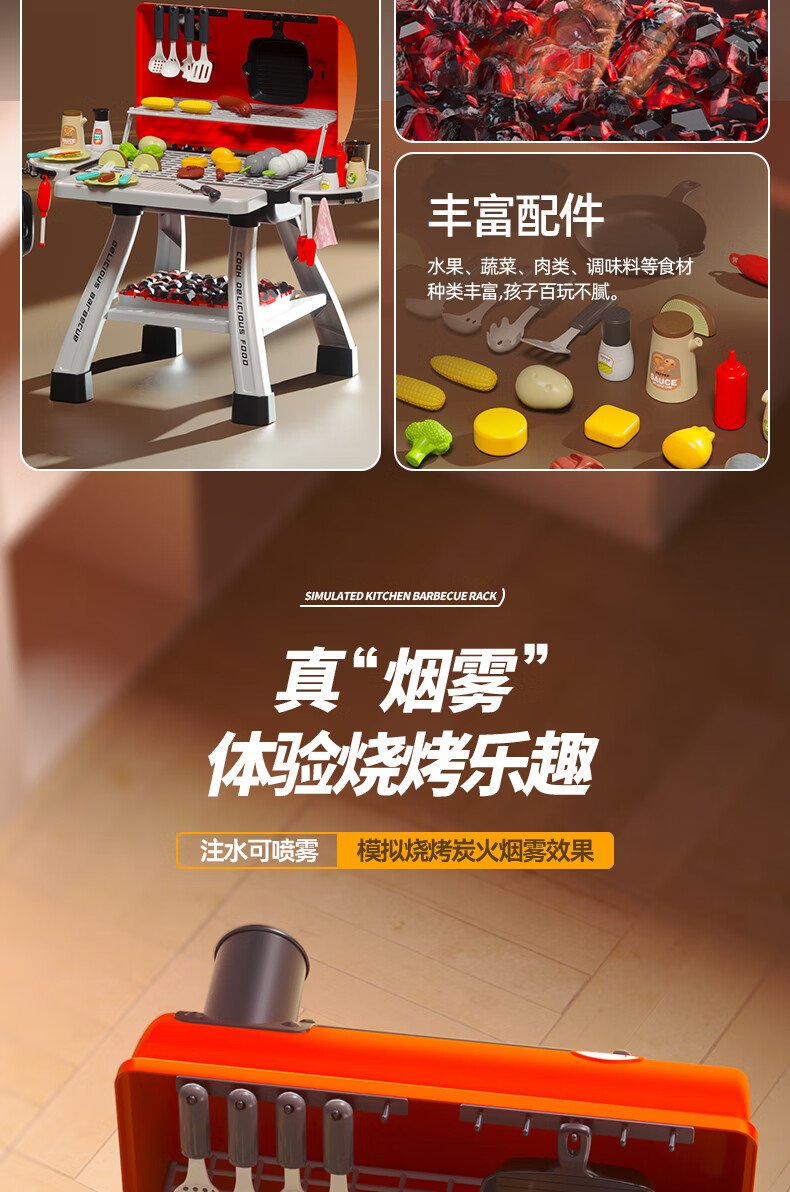 Eve Stone SPEZIELLES MÄDCHEN WIE SIE Kinderspielzeug, Spielhaus, Küchenspielzeug, Grill für Jungen und Mädchen im Alter von 3–6–10 Jahren, Geburtstag, Kindertagsgeschenk, Rauchgrill