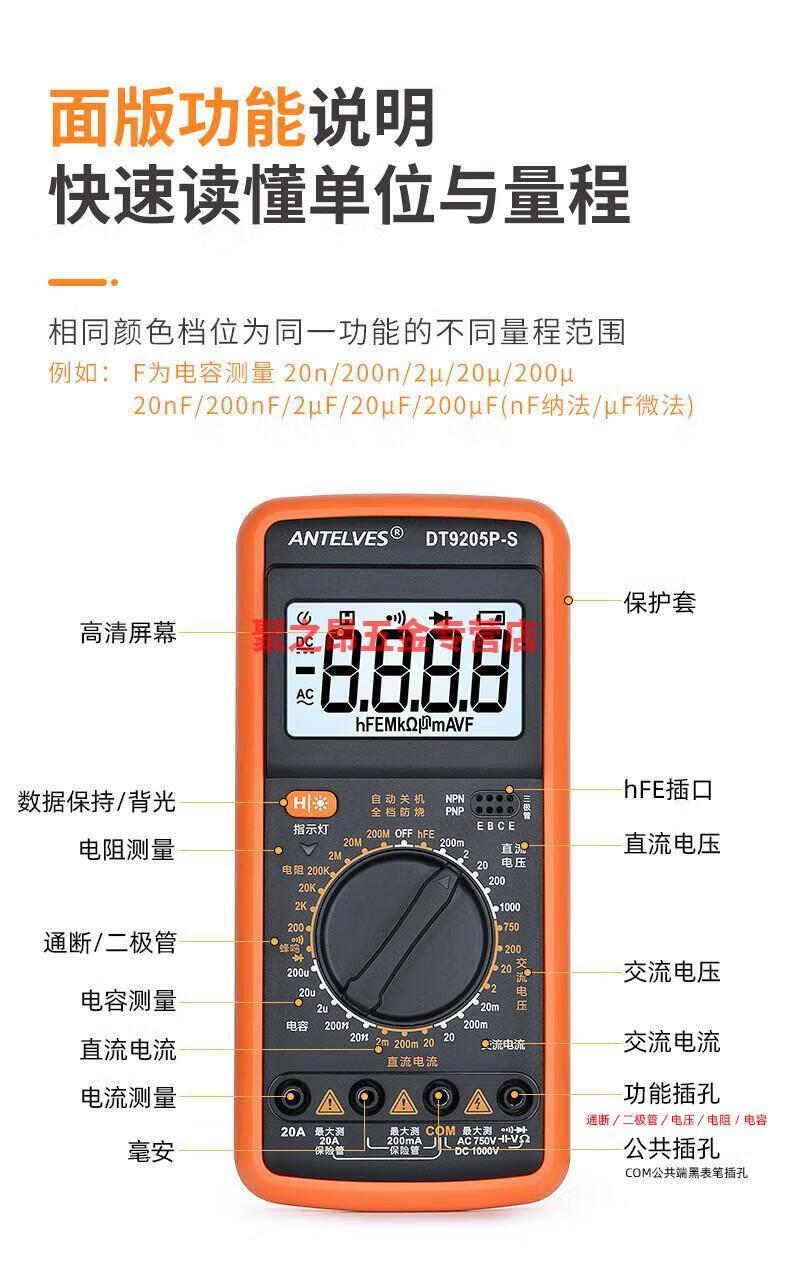 Pupan multimètre numérique personnalisé de haute précision électricien voltmètre à affichage numérique multifonction réparation anti-brûlure test d'électricité domestique norme DT9205A