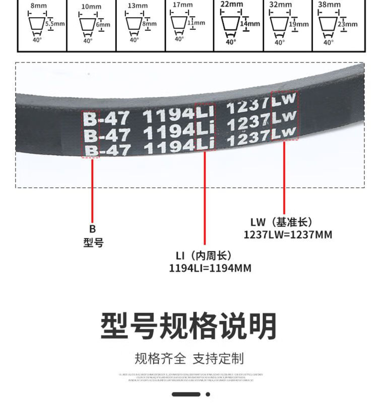 三角带B型B1260-B2324橡胶工业机器农用传动皮带B1320b1600b1950 B 1422