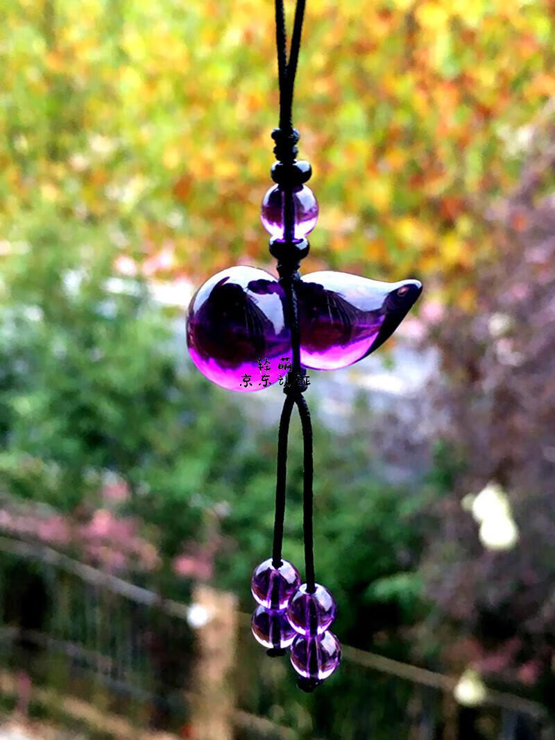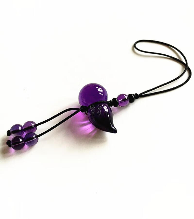 轻萌天然紫水晶葫芦钥匙扣 手机坠 包坠衣襟坠寓意福禄双收男女挂件 紫色