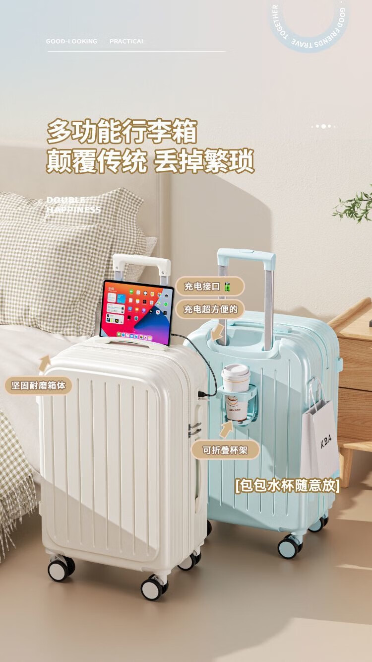 琳琅鹿行李箱拉杆箱小型可登机旅行箱男女学生密码箱大容量结实抗摔皮箱 冰川蓝B218【升级加厚多功能】 20英寸