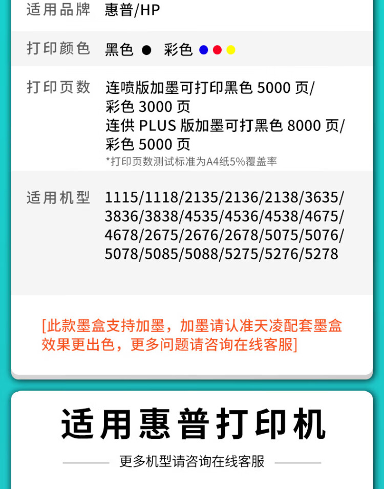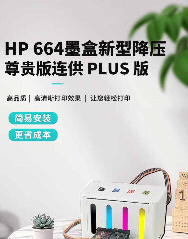 天凌664墨盒连供适用惠普HP664XL连喷易加墨2675 2676 2677 黑彩色 新型降压 尊贵版连供(备注机型)--白色款