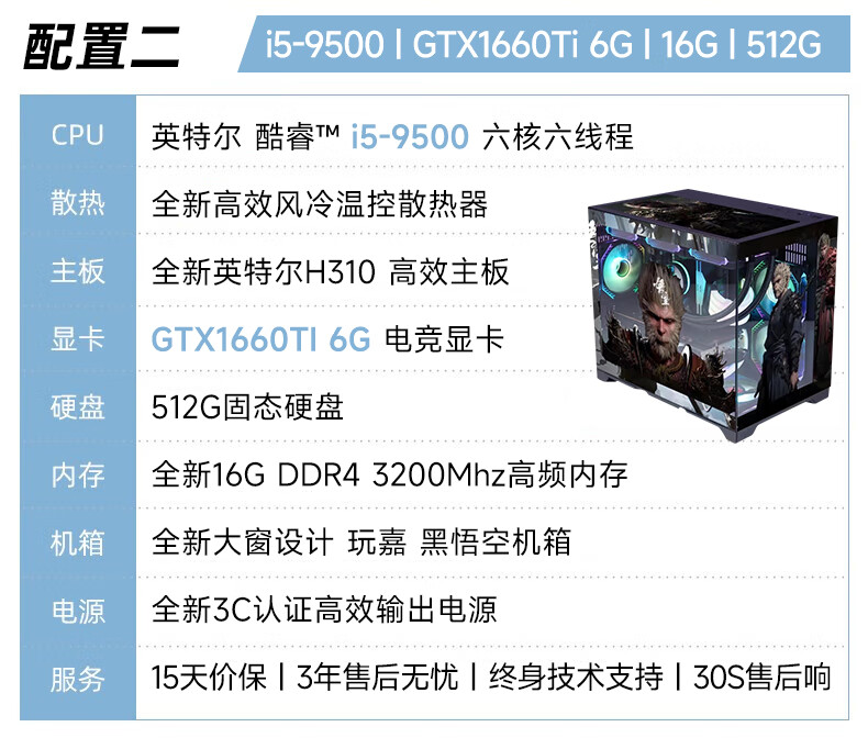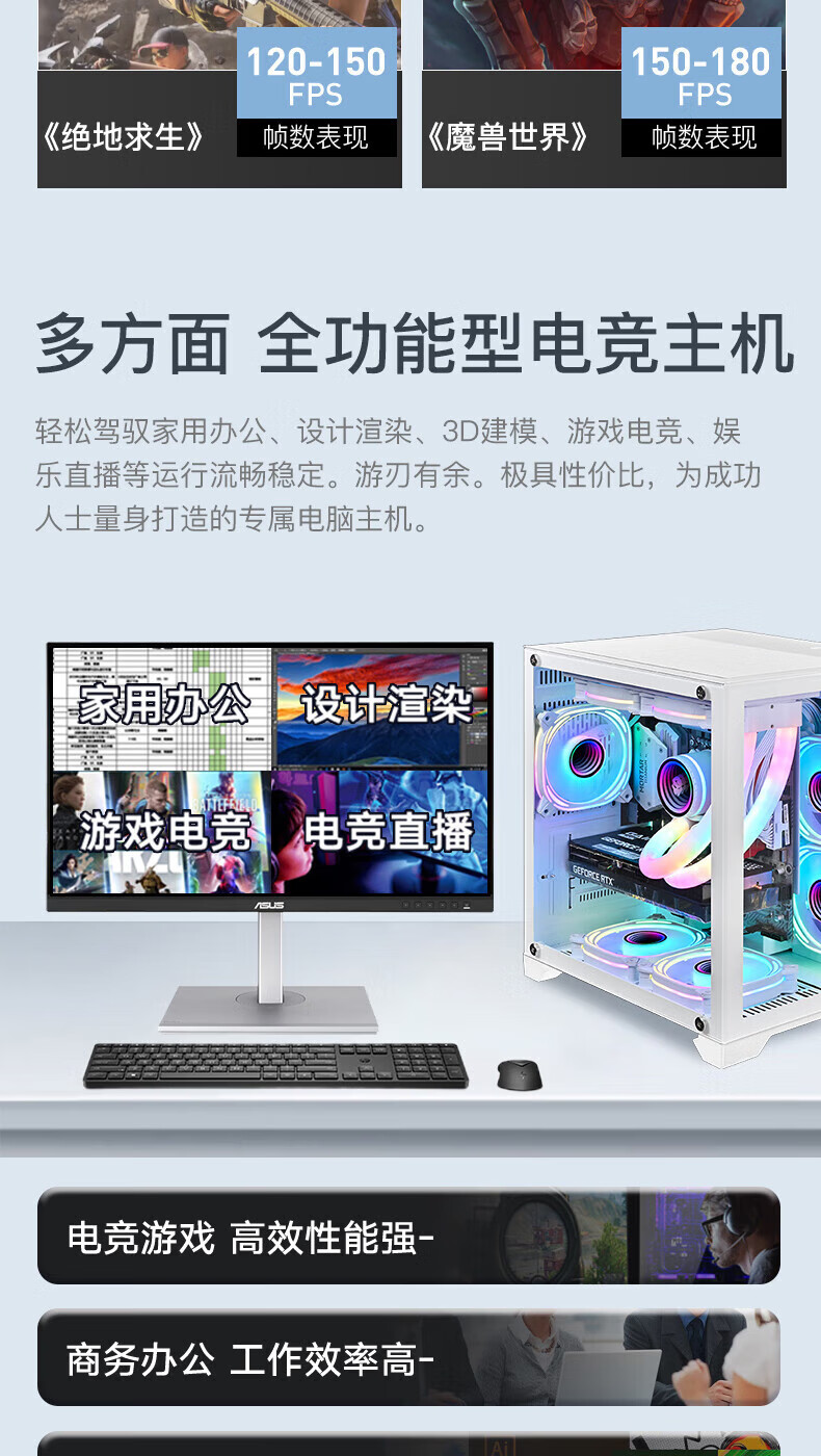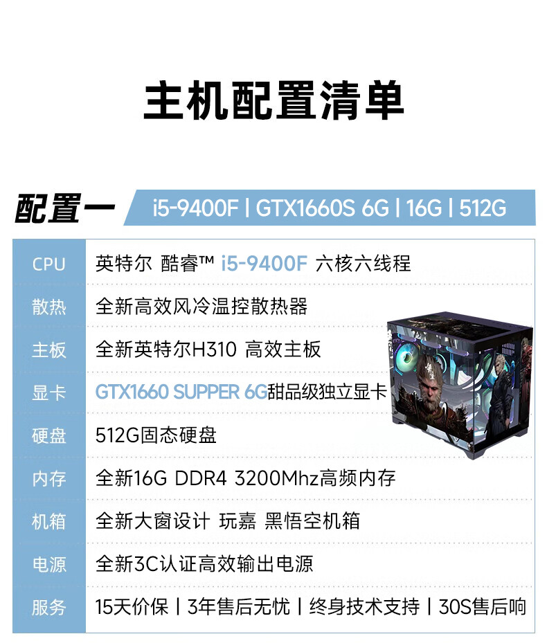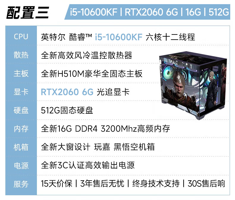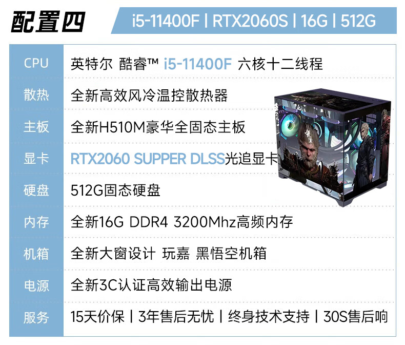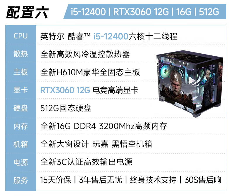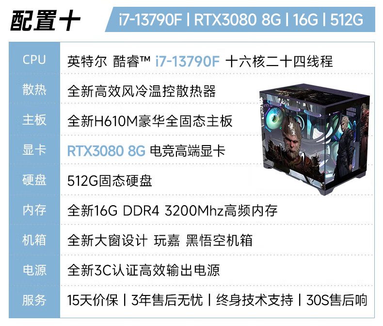 英特尔i512400F 2060侧透海景房黑神话悟空机箱 台式电脑主机RTX3060直播永劫 十:i7-13790F/3080/16G/512G 主机 +32寸显示器 99成新