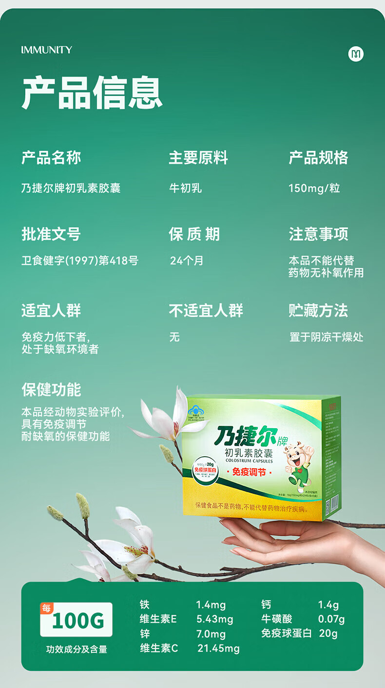 乃捷尔 牛初乳素胶囊24粒 免疫力调节儿童孕妇球蛋白钙铁锌牛磺酸VCVE 【1盒尝鲜】24粒