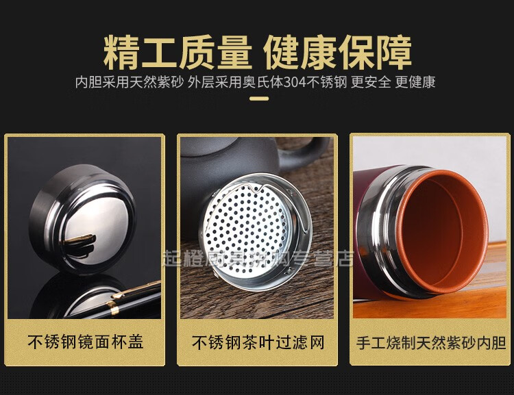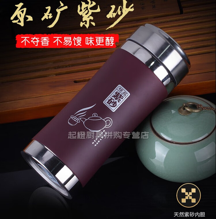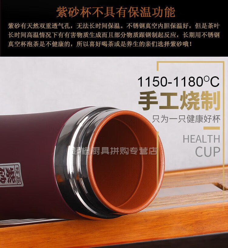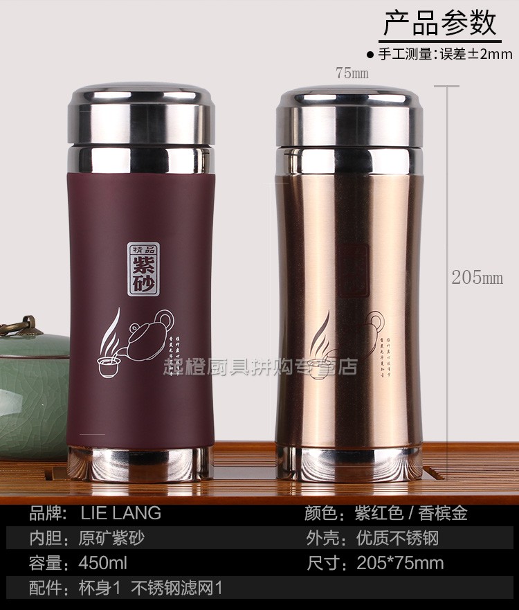 Yilianjia Yixing Large Capacity Purely Handmade Purple Clay Cup Tea Cup with Lid Liner Filter Men's Insulated Water Cup Gift Customized Champagne Gold Purple Clay Liner 450ml Insulated and Not Protected