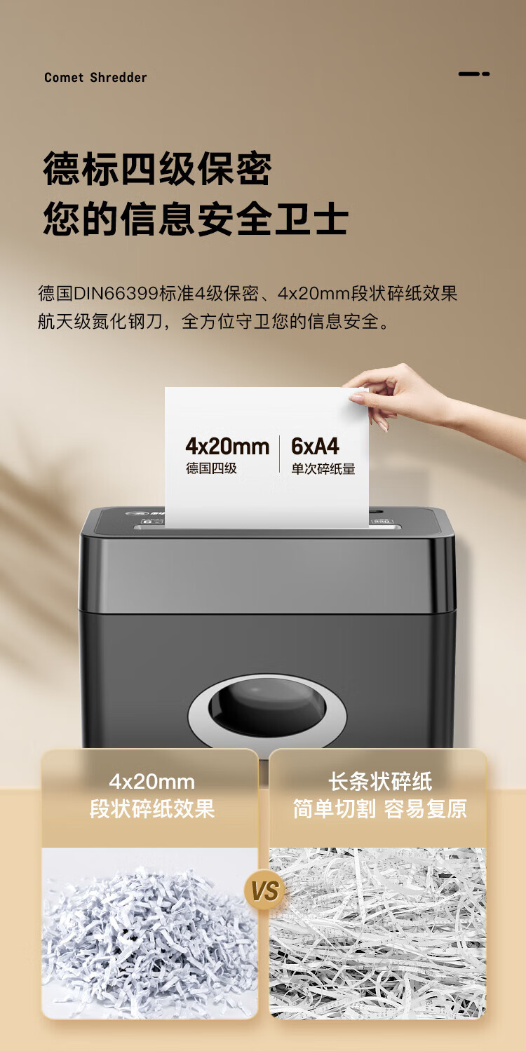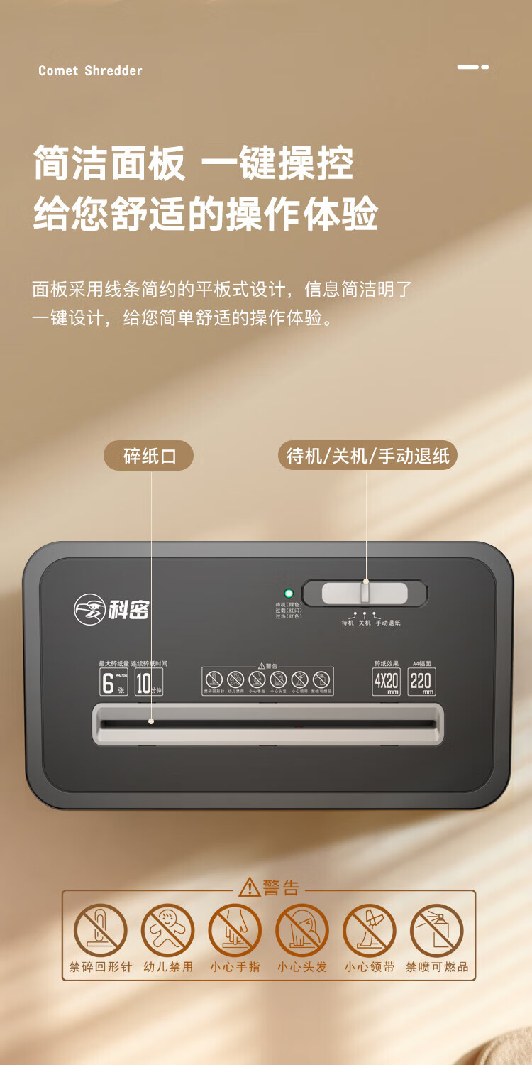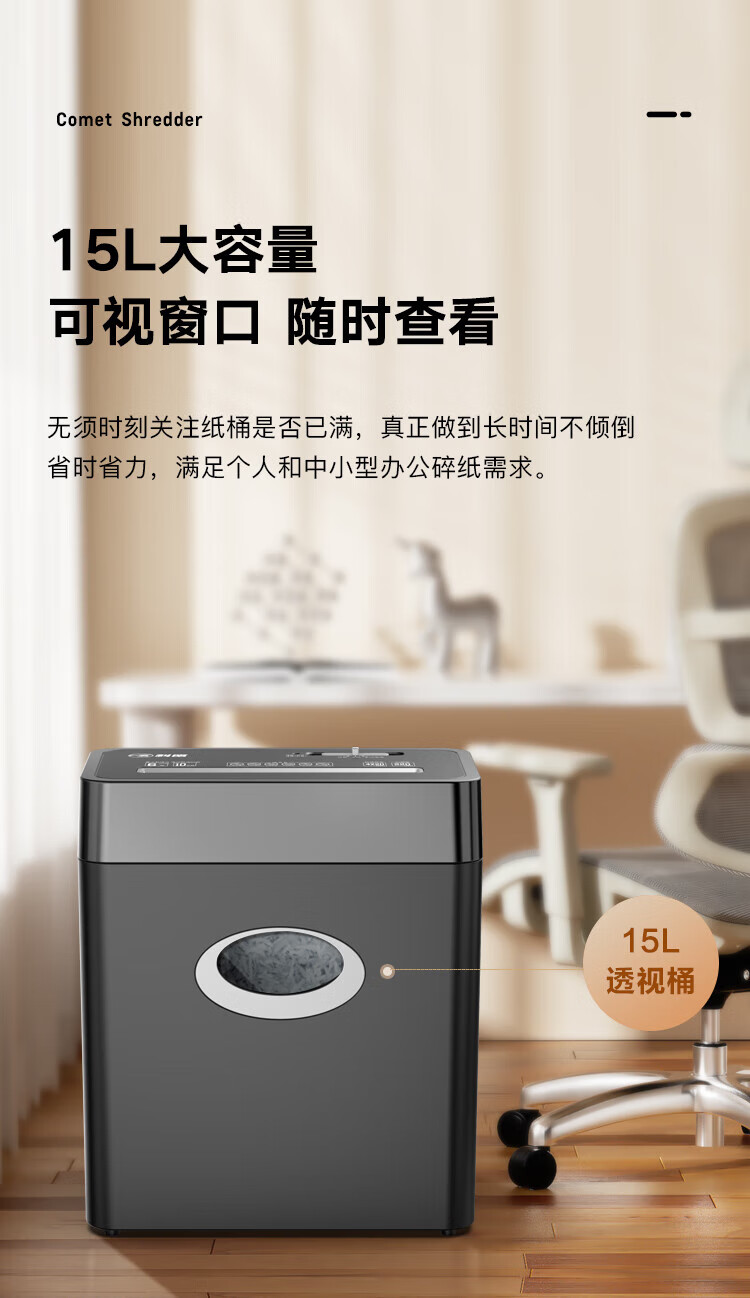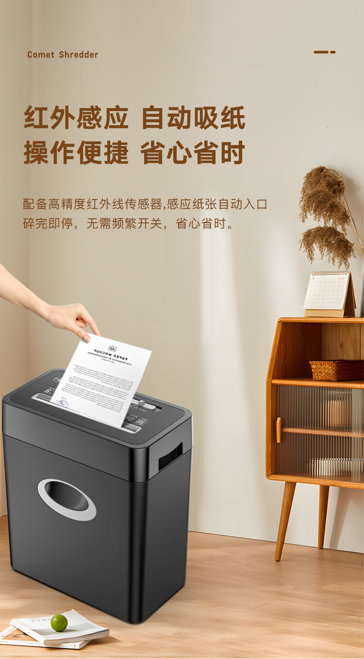 科密(comet)商用家用办公碎纸机 多功能粉碎机 6张 60分钟 碎卡书钉 C-838T