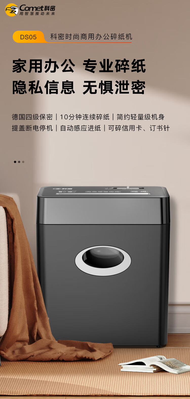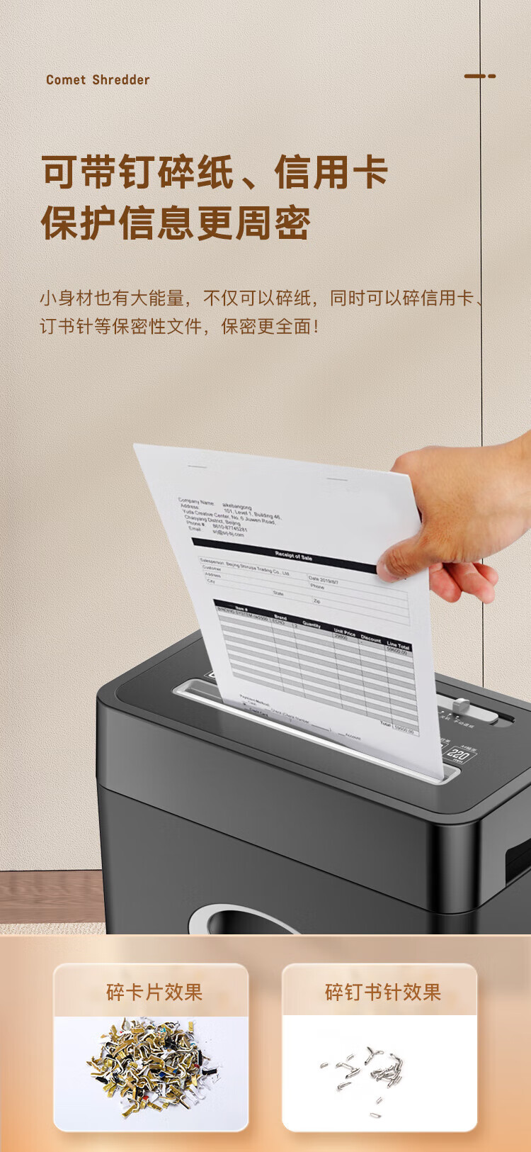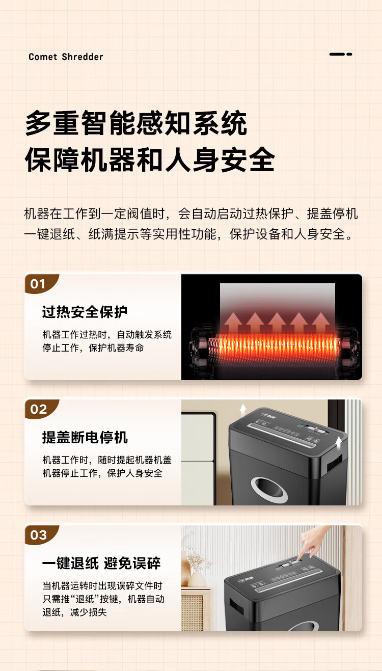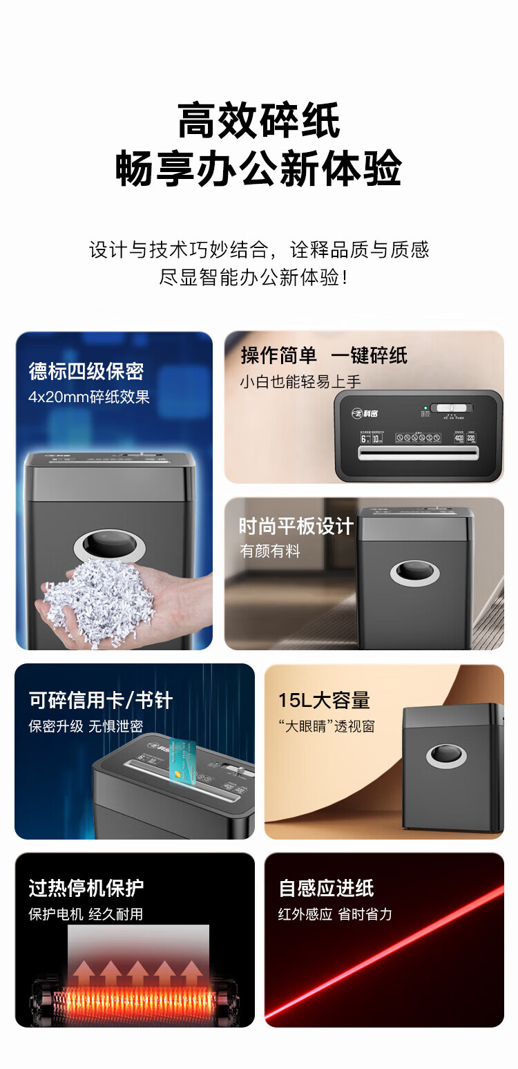 科密(comet)商用家用办公碎纸机 多功能粉碎机 6张 60分钟 碎卡书钉 C-838T