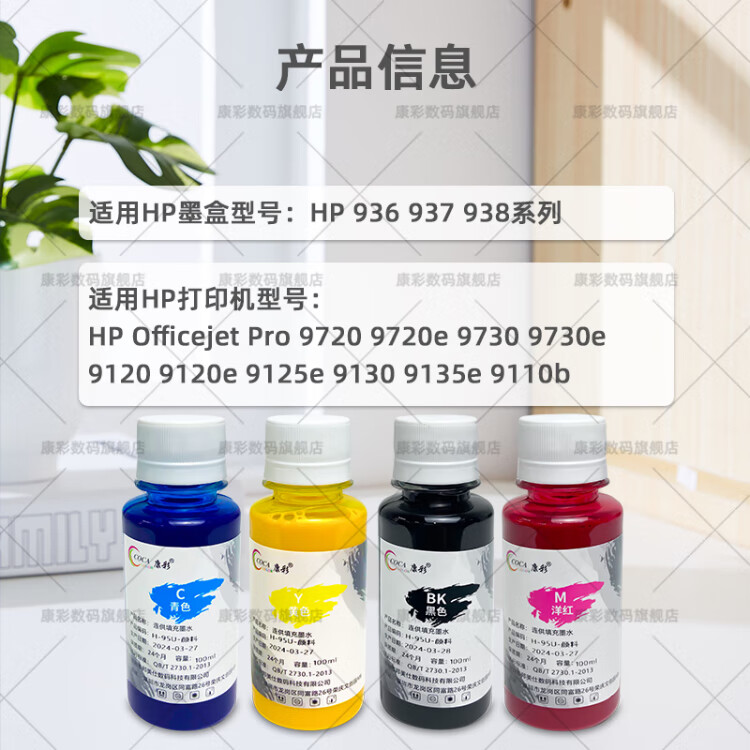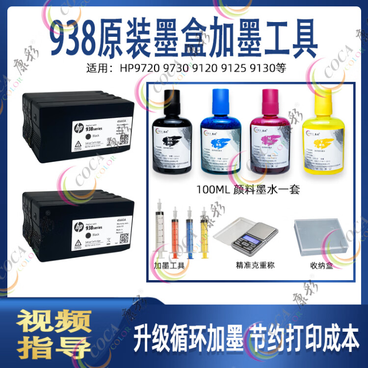 Kangcai ist geeignet für HP 936 937 938 Original-Tintenpatrone HP9720 9730 9120 9125 Drucker, 100 ml schwarze Pigmenttintenflasche