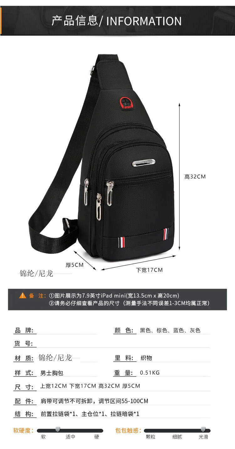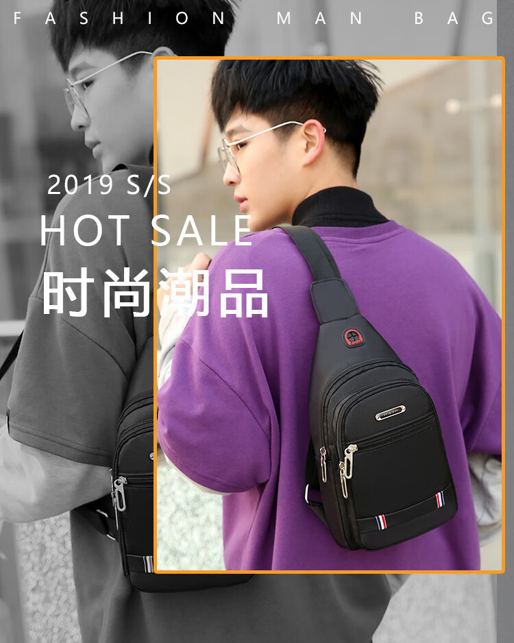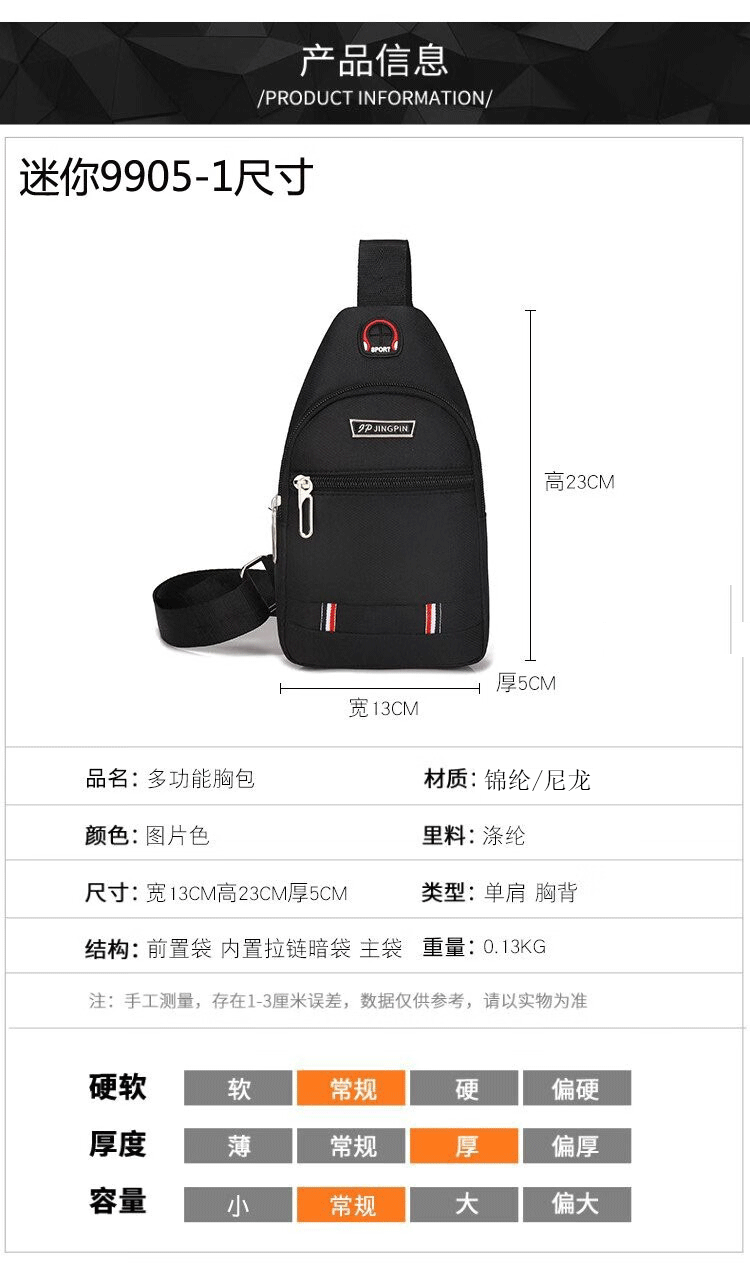 Pengjing chest bag men's bag single shoulder cross-shoulder bag new women's casual cross-body bag chest cross-body bag trendy boy classic black large size
