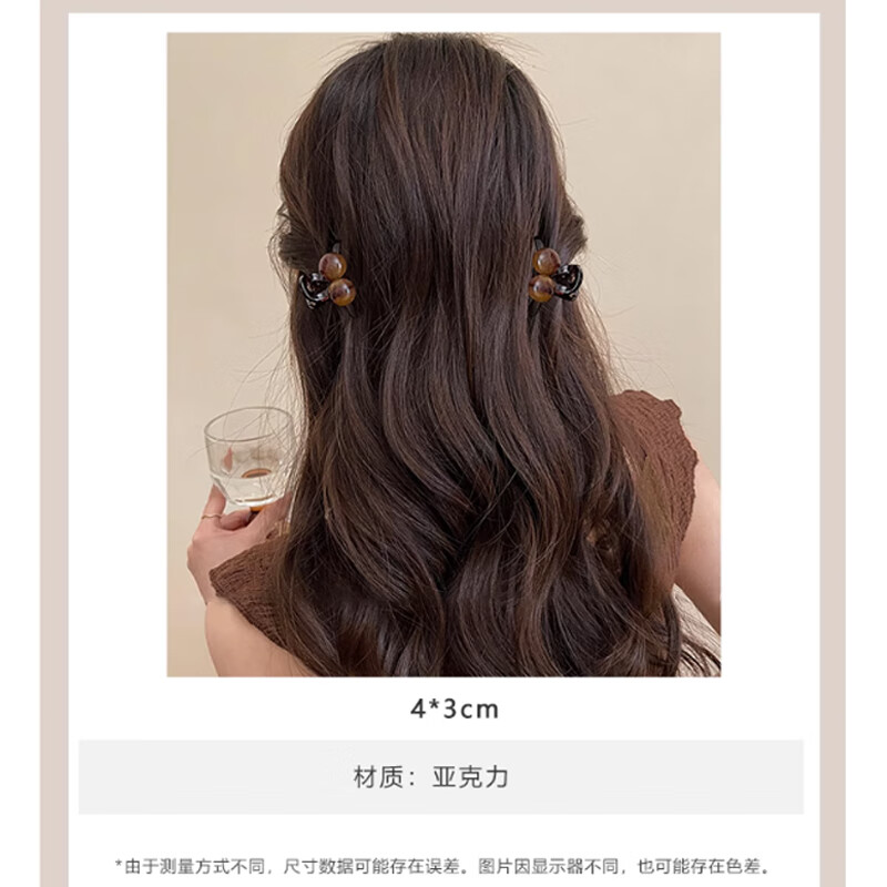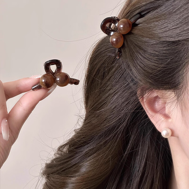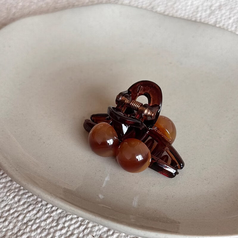 Idel Amber Cherry Small Clip Femme 2026 Nouvelle épingle à cheveux Princesse Head Bangs Clip Pince à cheveux cassée Shark Clip Accessoire pour cheveux F2702 Coffee Bead Small Clip Paire