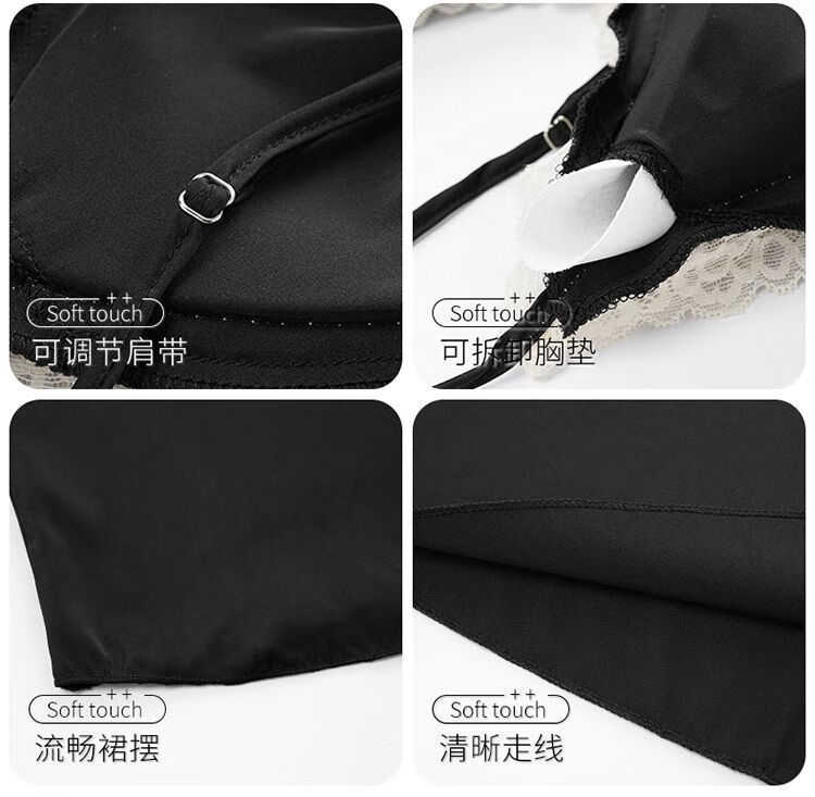 雅鹿吊带睡裙女士仿真丝性感夏季带胸垫冰雪丝诱惑蕾丝短款睡衣家居服 AM-11964 #带胸垫 M 【建议80-100斤】