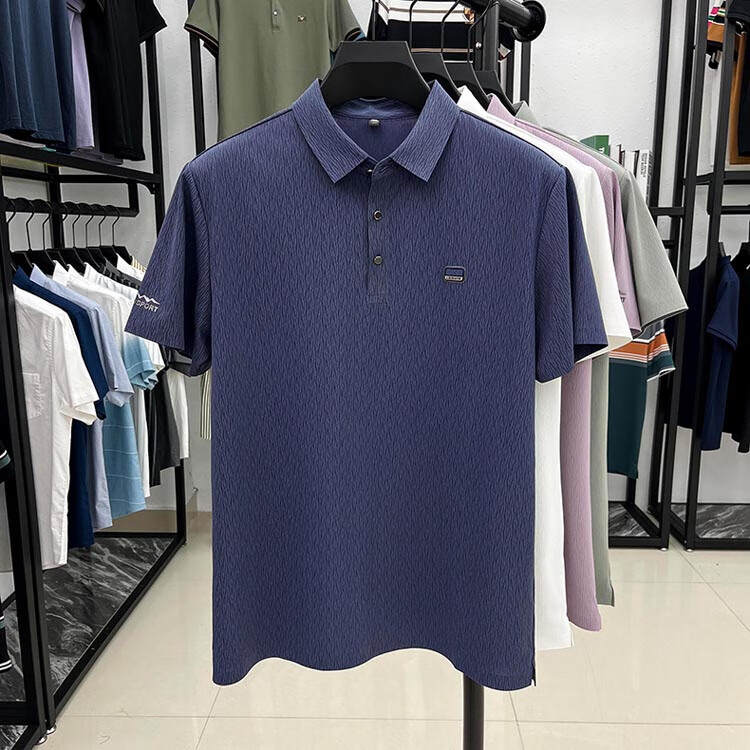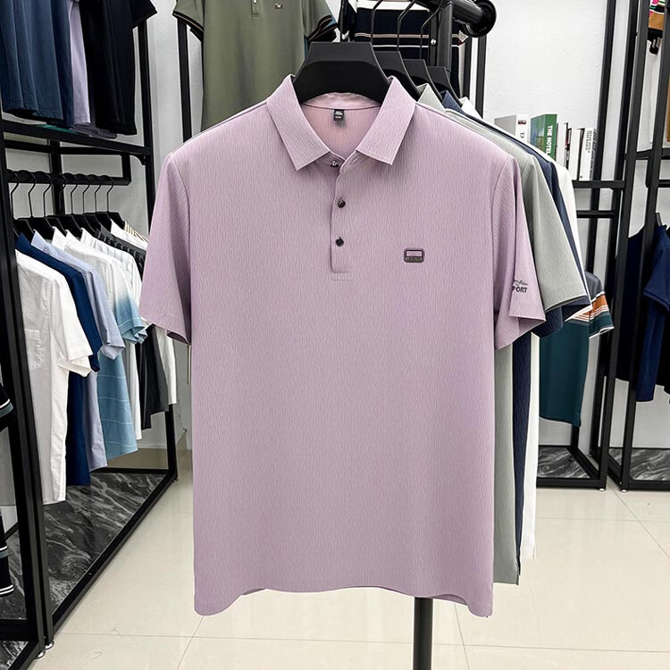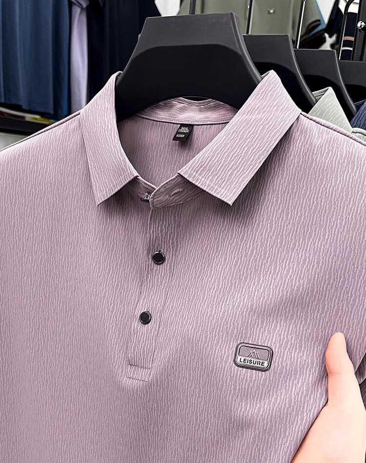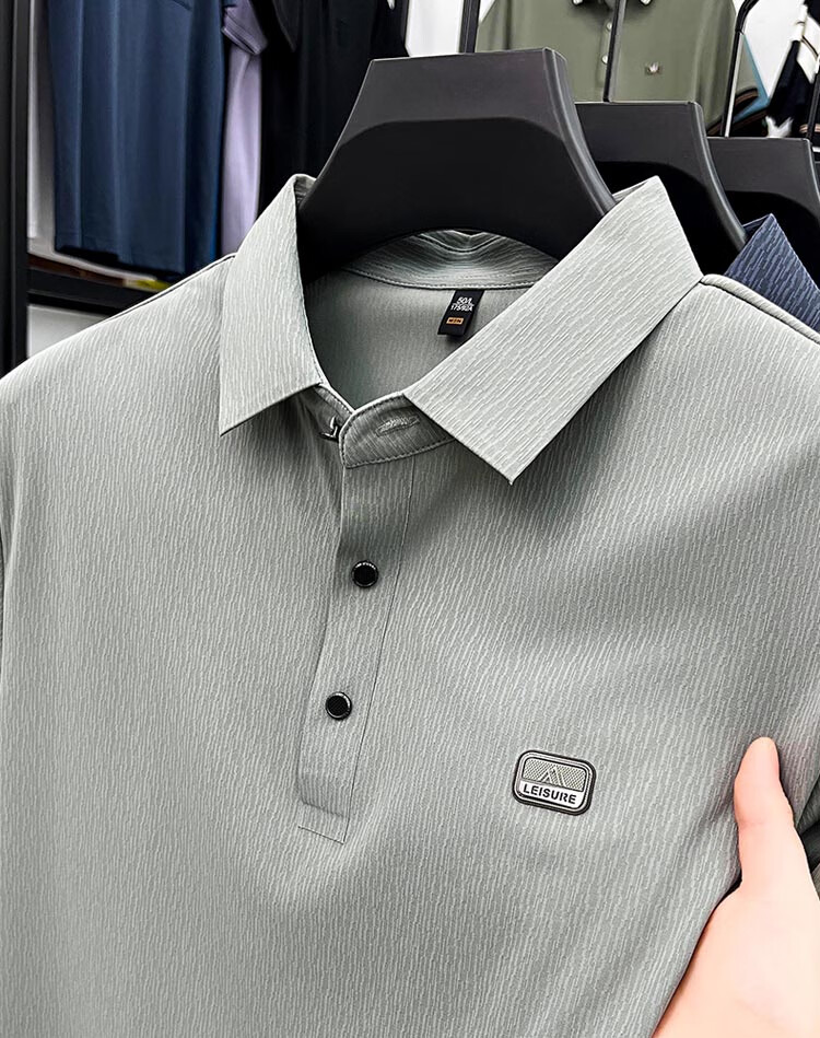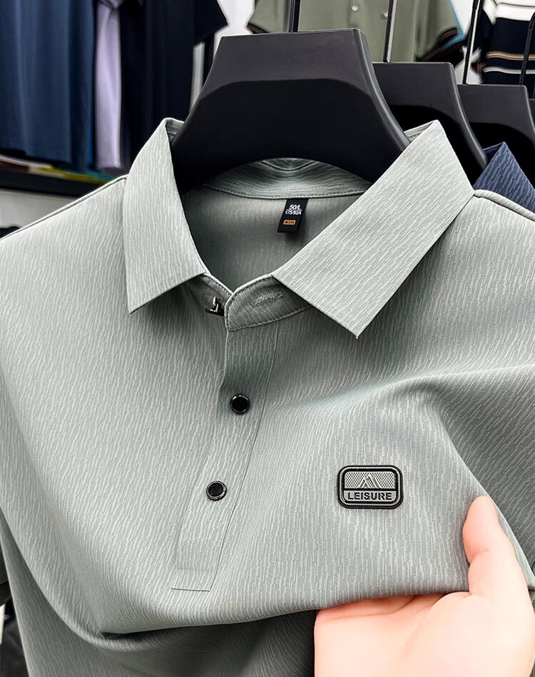ROMON Camiseta de manga corta sin costuras de seda de hielo de alta gama para hombre 2025 Verano Nueva camisa de solapa tipo polo informal para papás de mediana edad Verde claro Tamaño 2XL recomendado 150-170 Jin Jin equivale a 0,5 kg