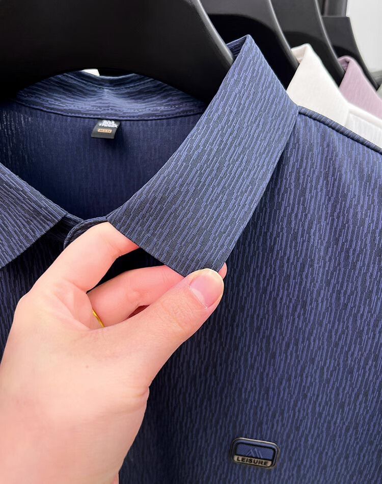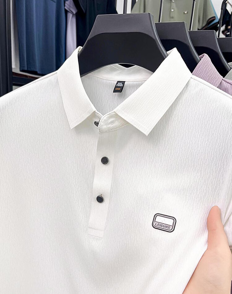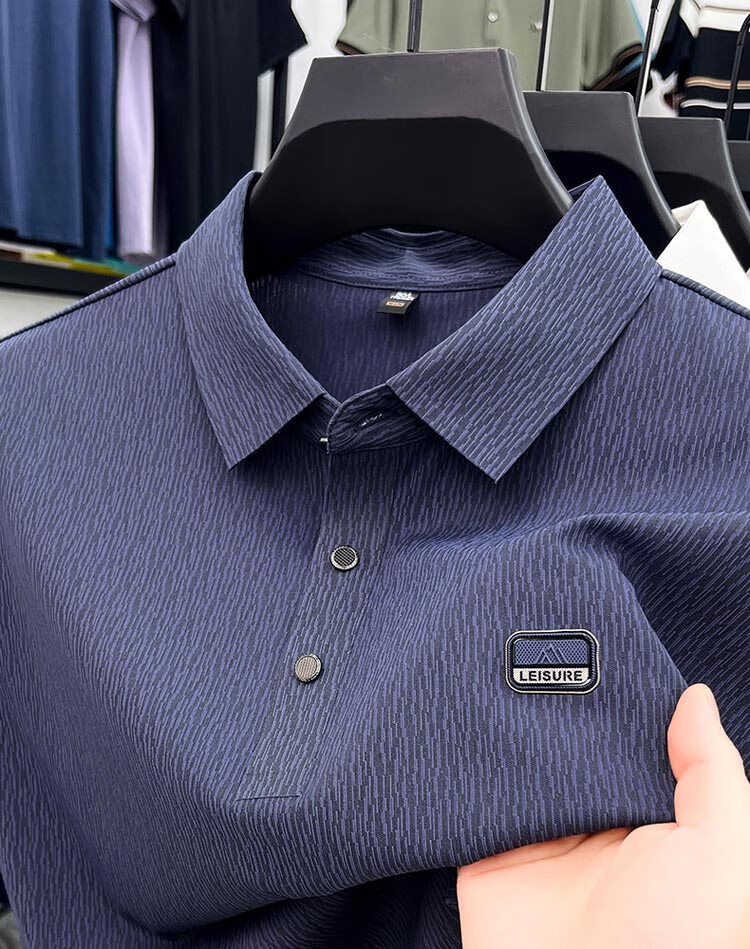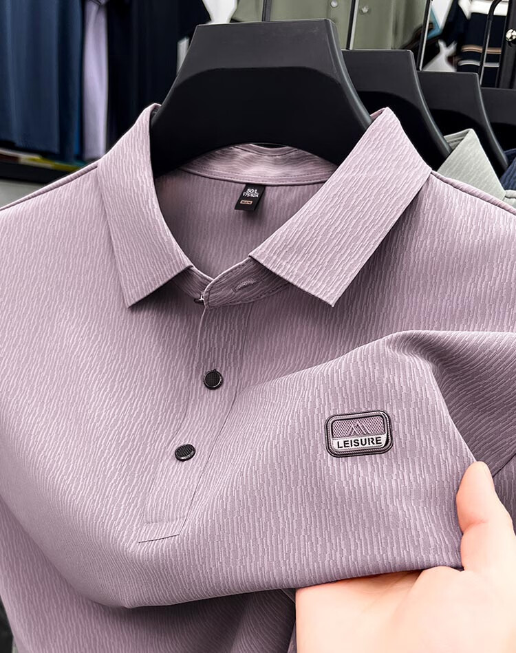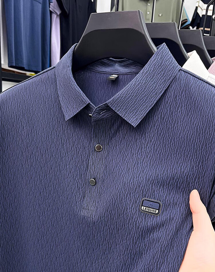 ROMON Camiseta de manga corta sin costuras de seda de hielo de alta gama para hombre 2025 Verano Nueva camisa de solapa tipo polo informal para papás de mediana edad Verde claro Tamaño 2XL recomendado 150-170 Jin Jin equivale a 0,5 kg